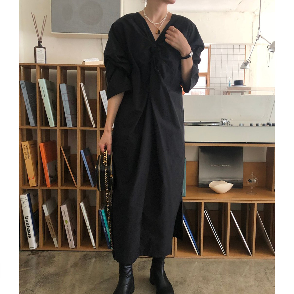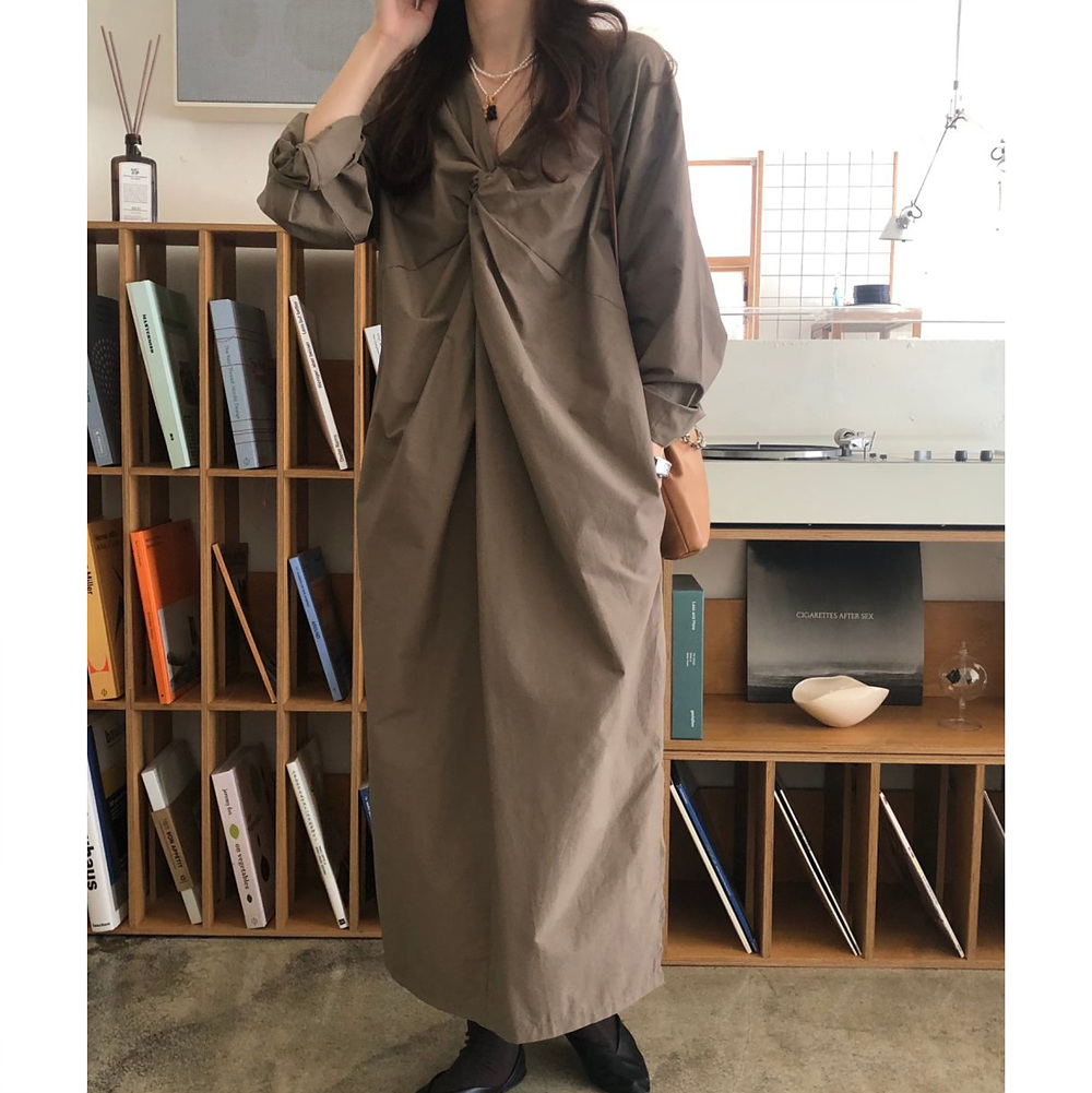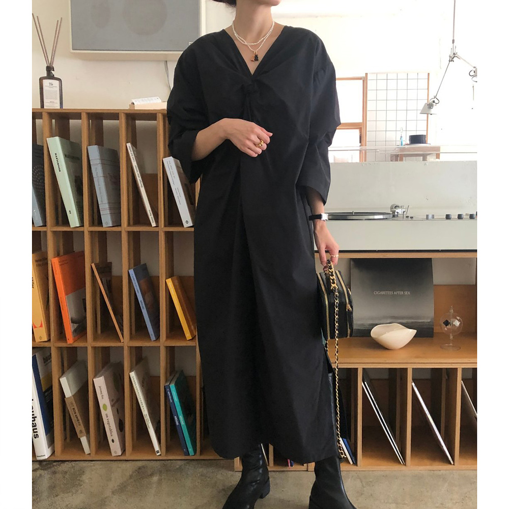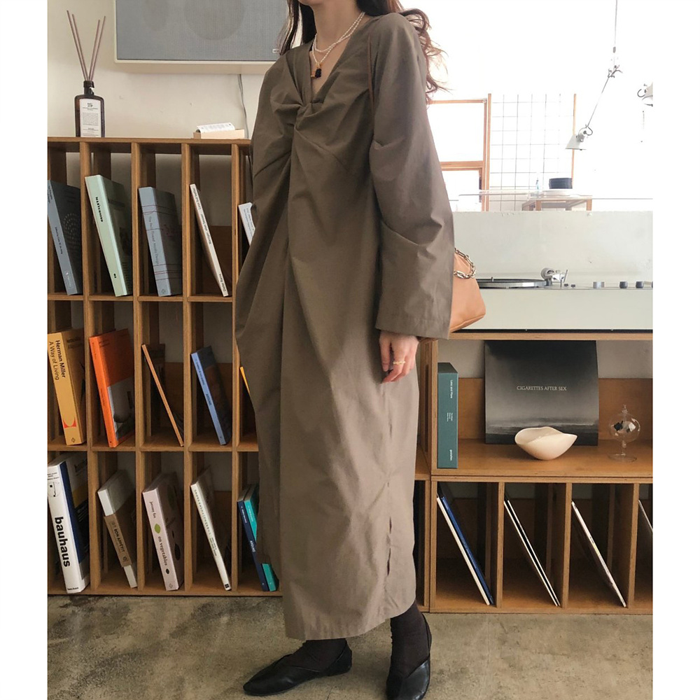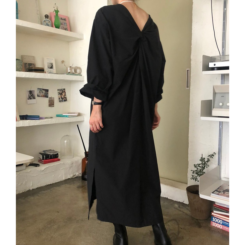 수에이 바스락 루즈핏 긴팔 양면 착용 꼬임 원피스