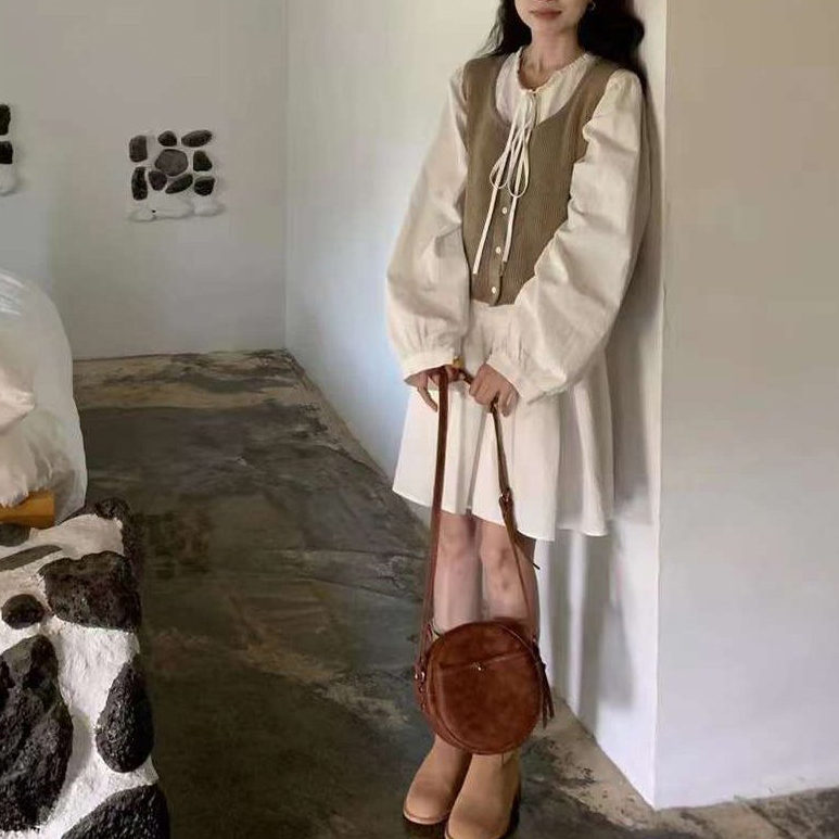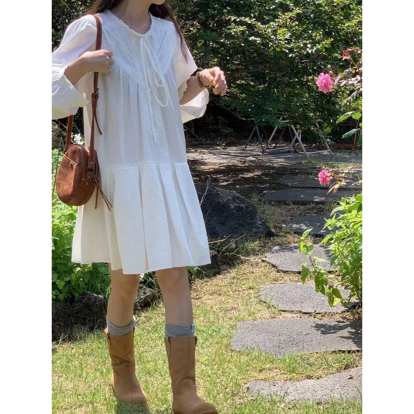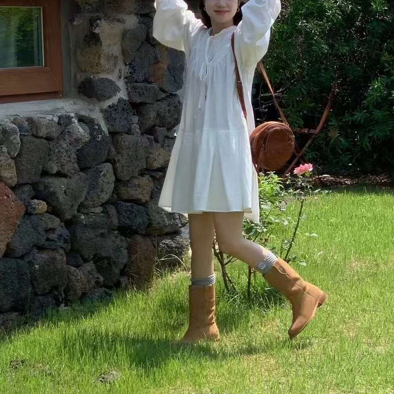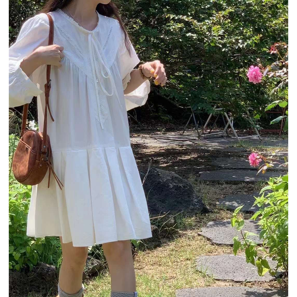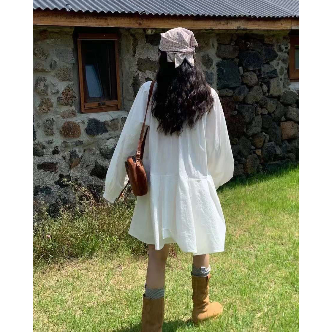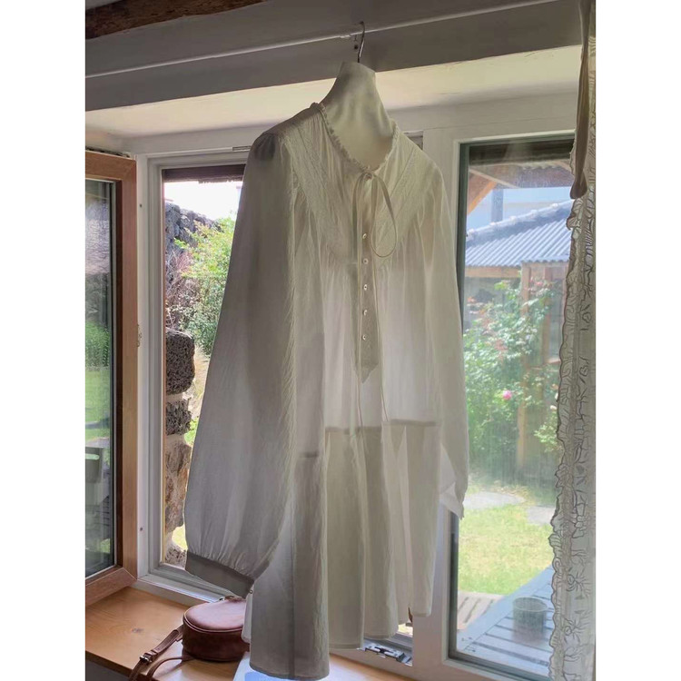 바로발송 페이지 긴팔 미니 화이트 원피스