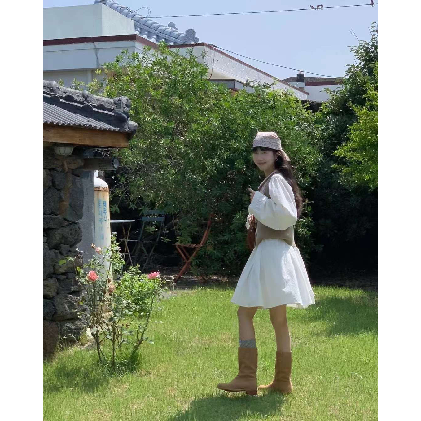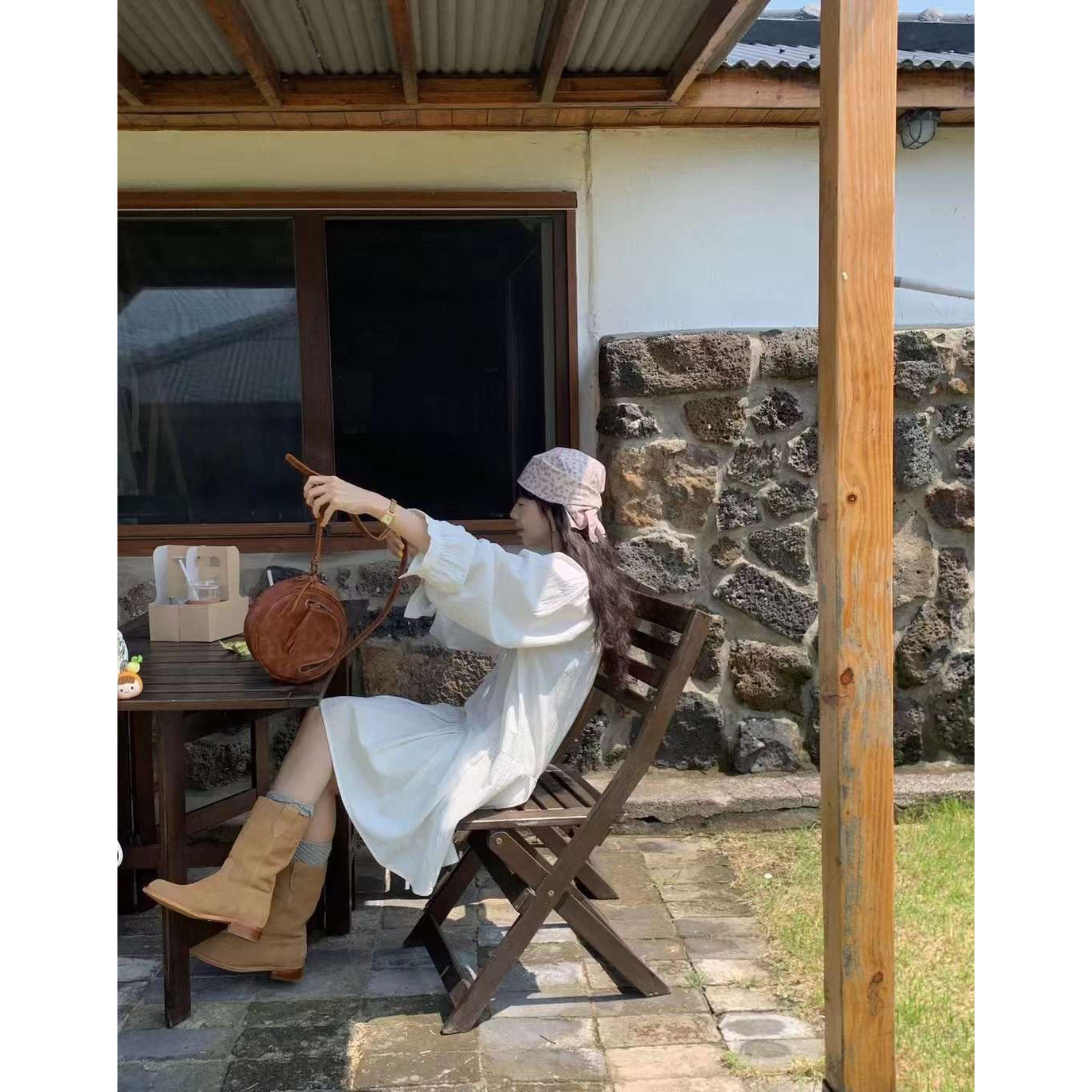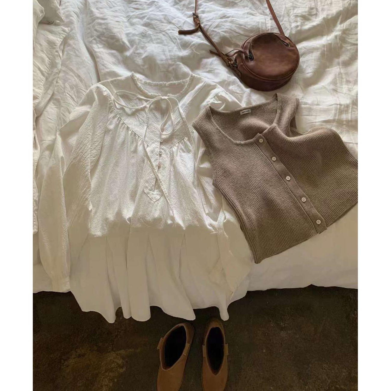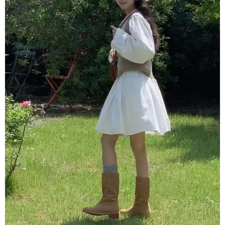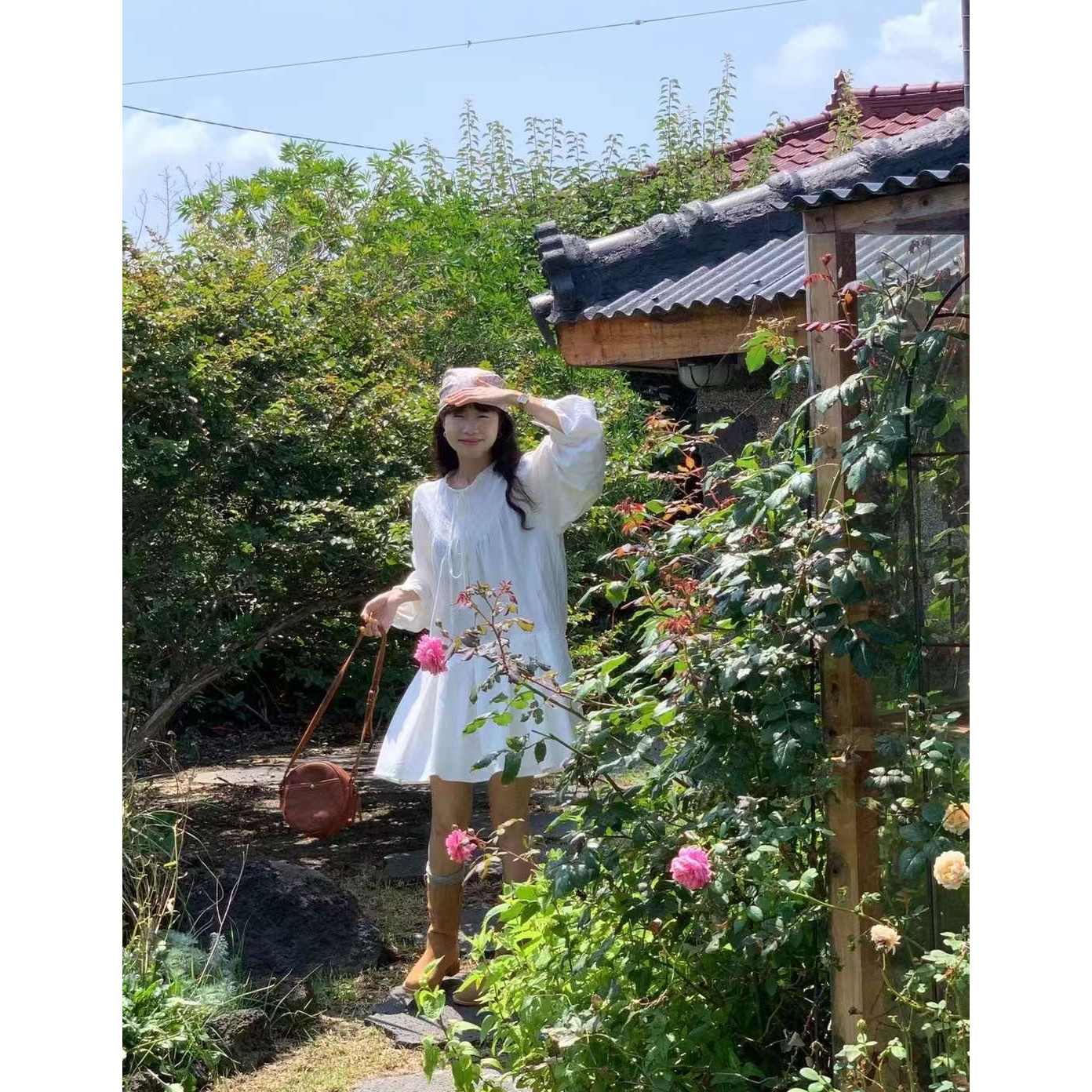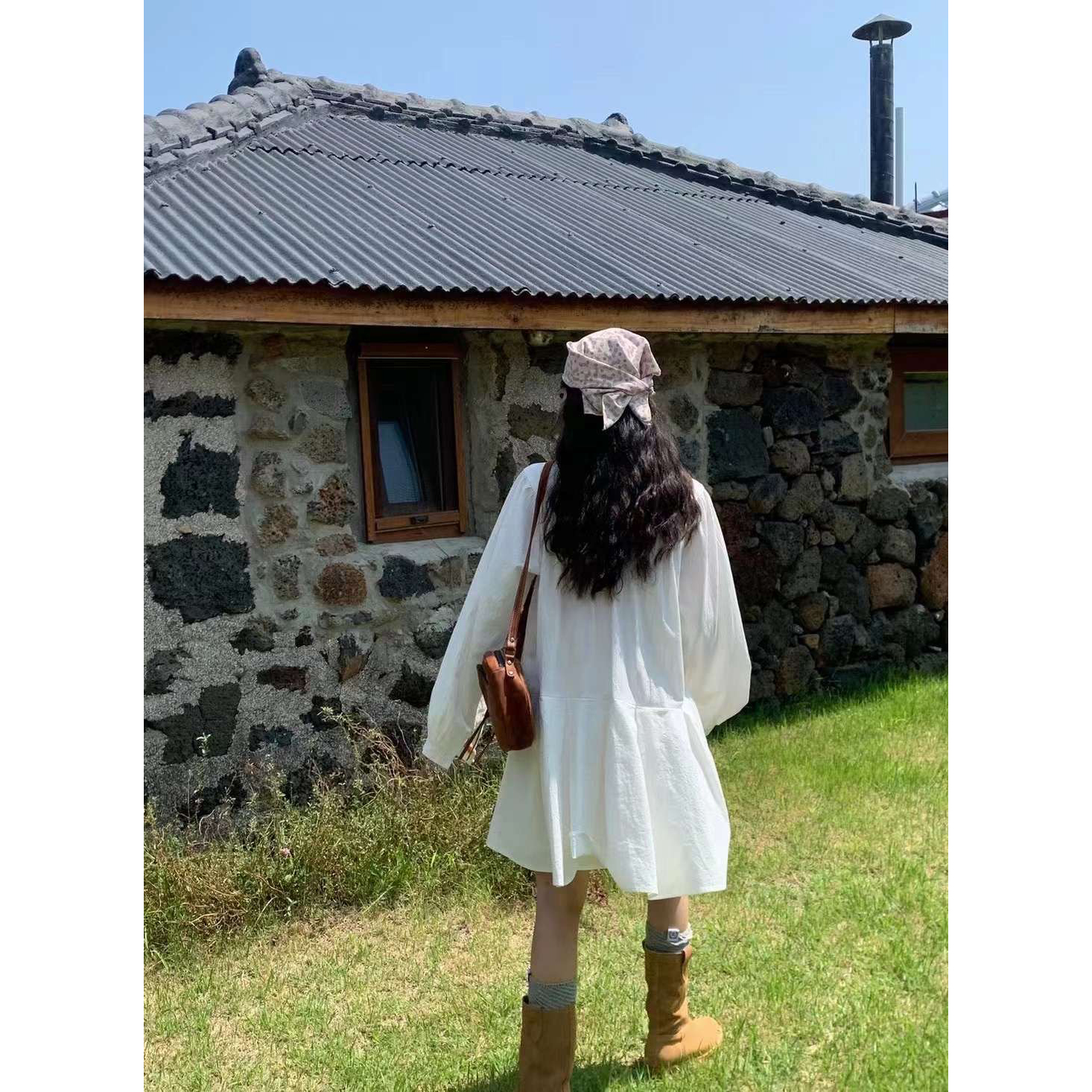 바로발송 페이지 긴팔 미니 화이트 원피스