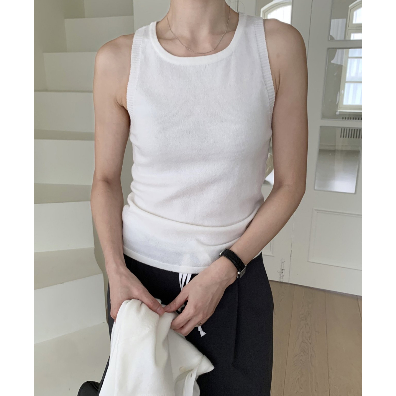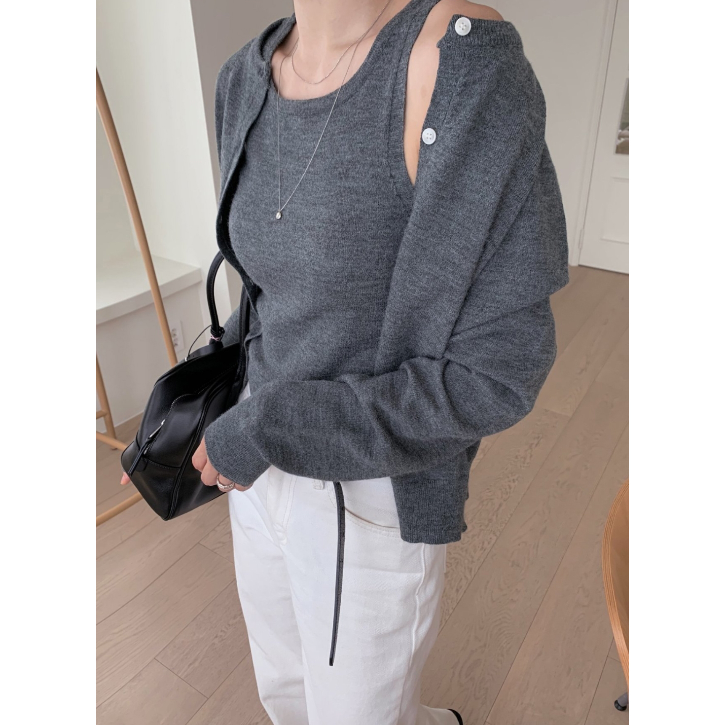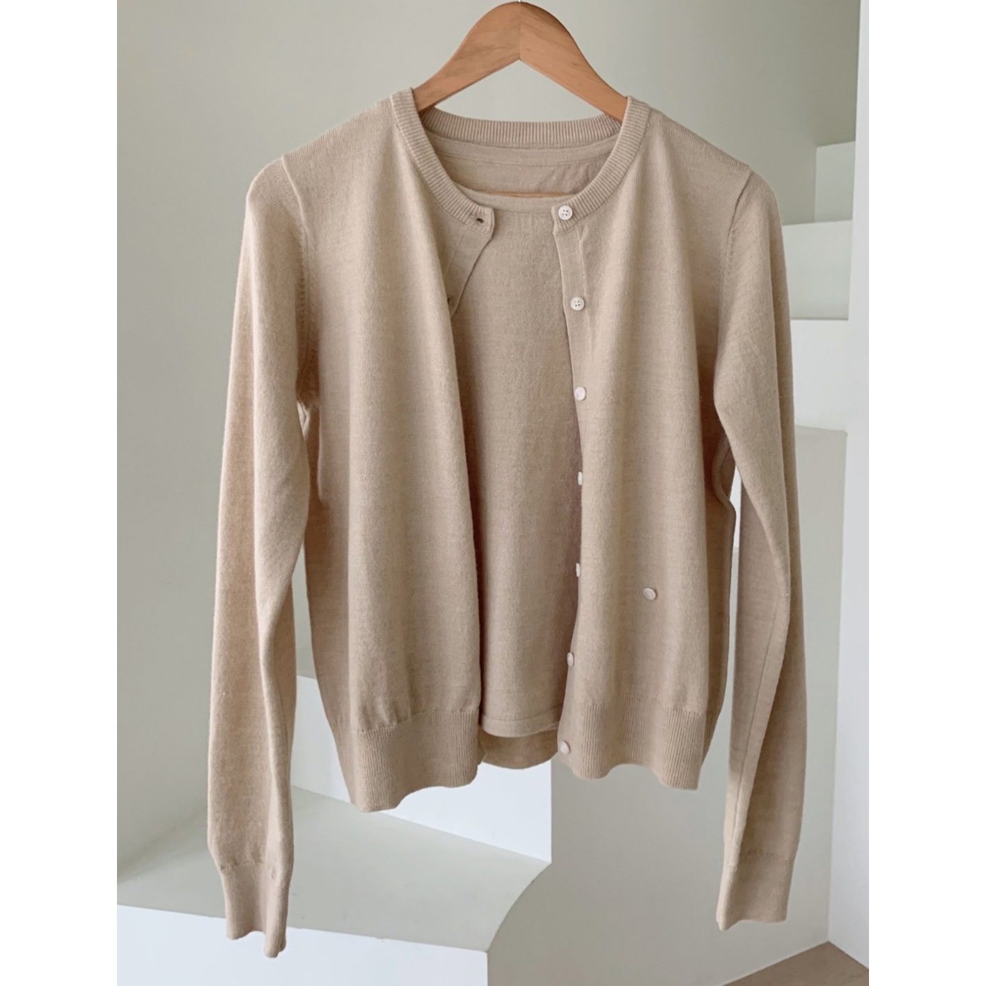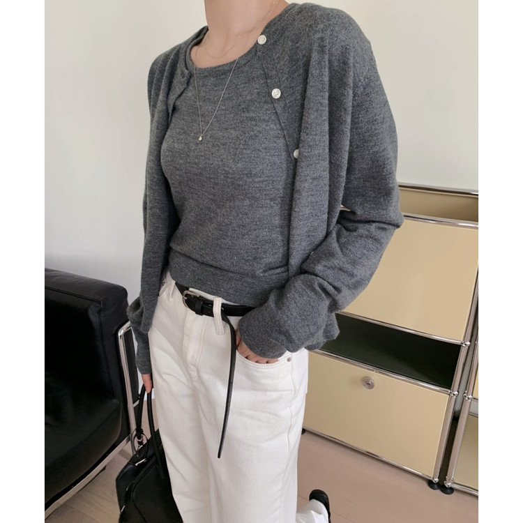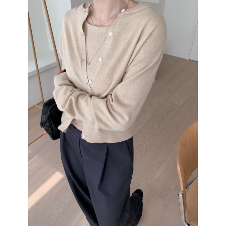 페이 울 니트 가디건 나시 세트