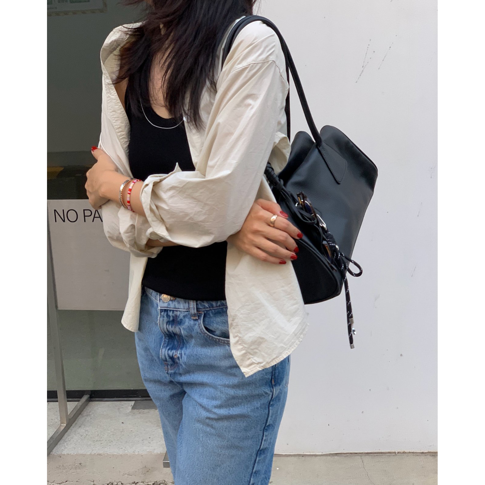어깨에 들었을때 딱 안정적이고 예쁜 가방이에요