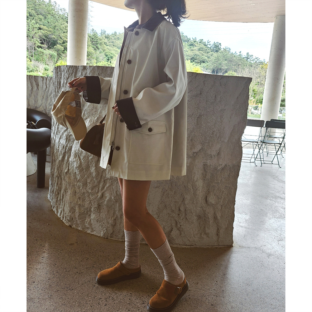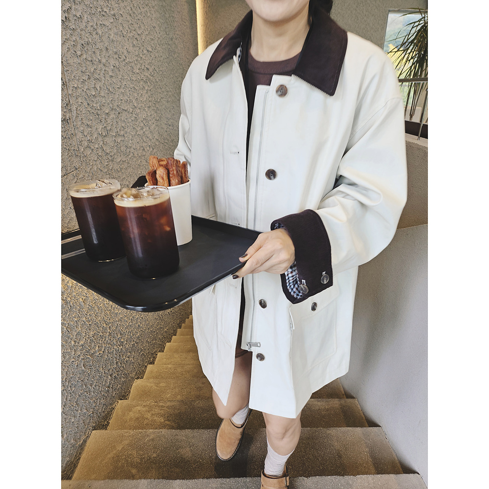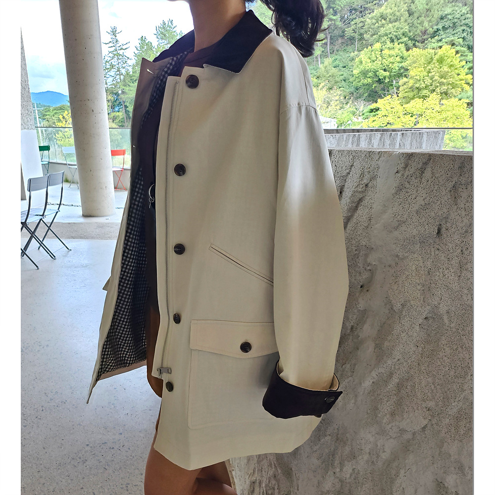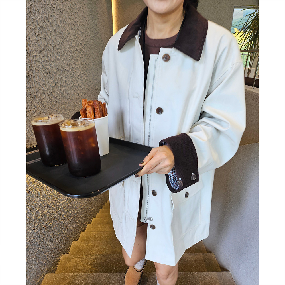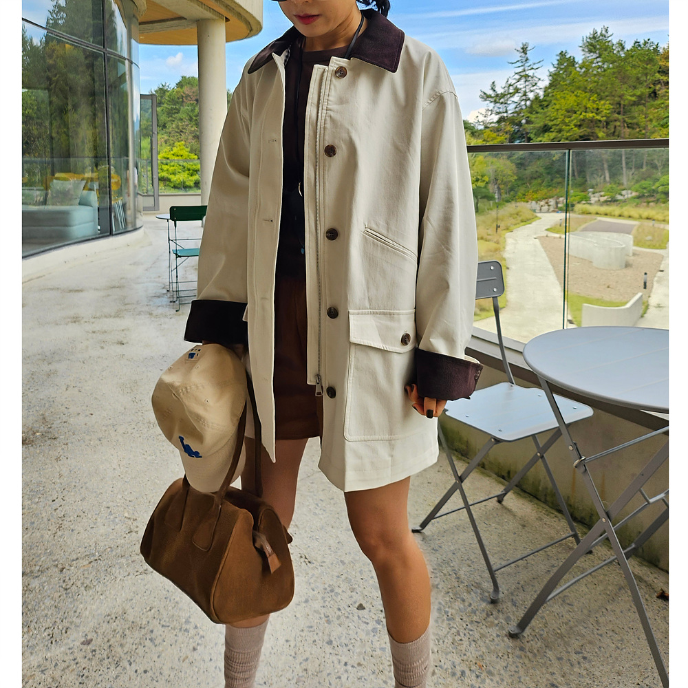 디코 골덴 카라 박시 루즈핏 하프 자켓