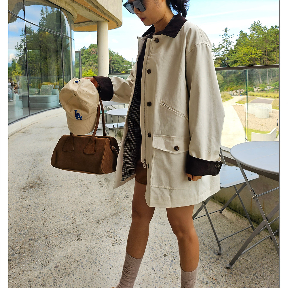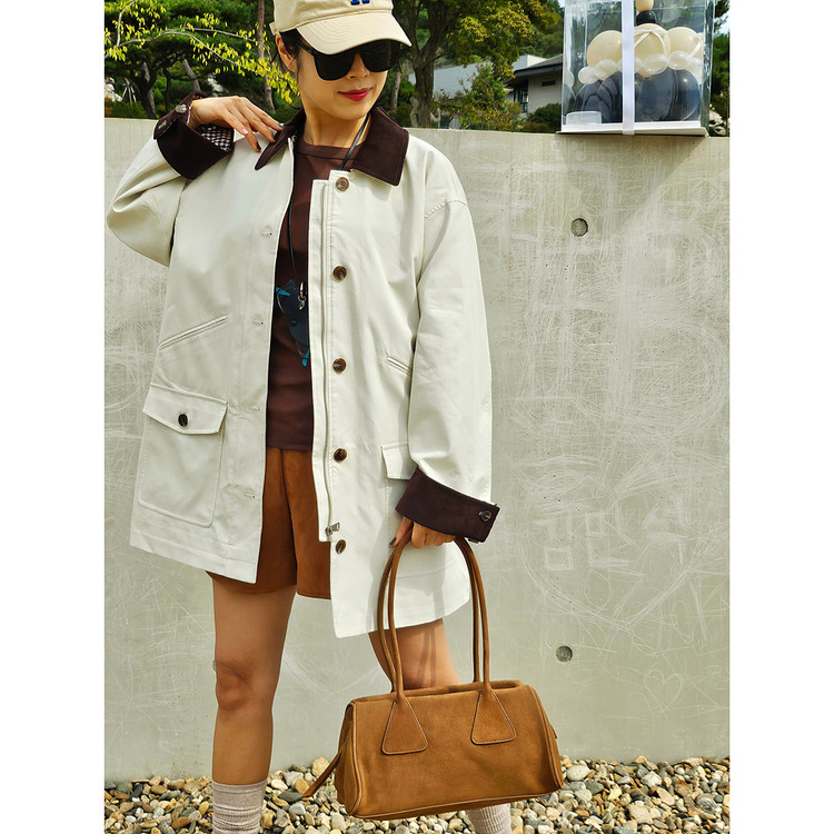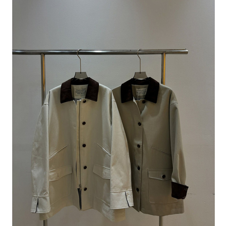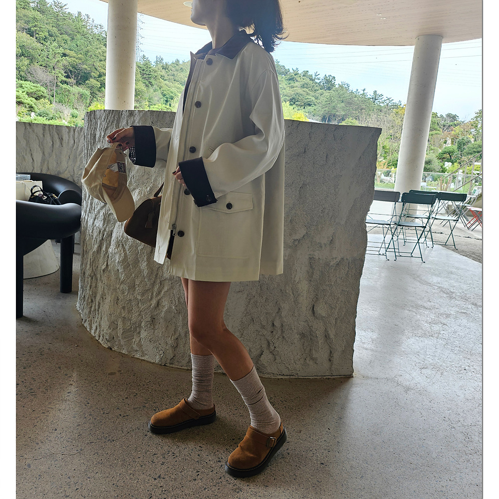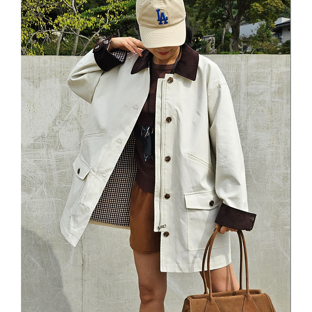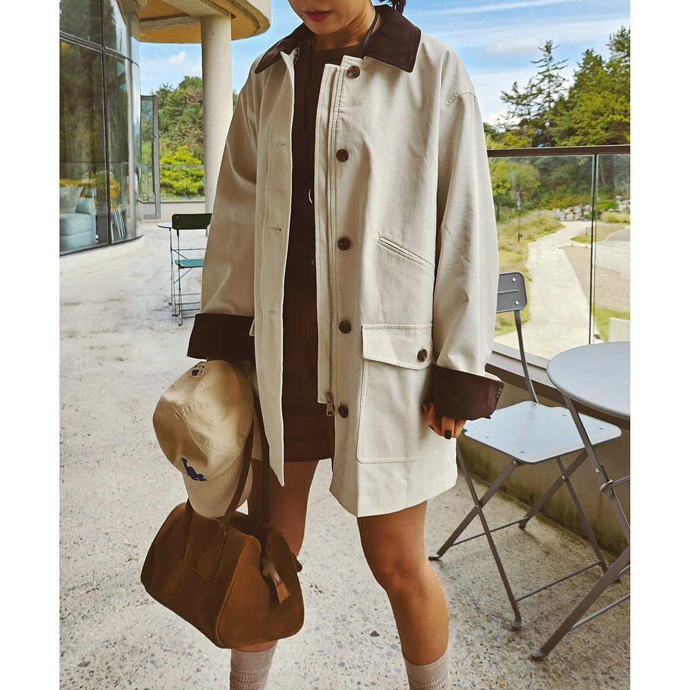 디코 골덴 카라 박시 루즈핏 하프 자켓