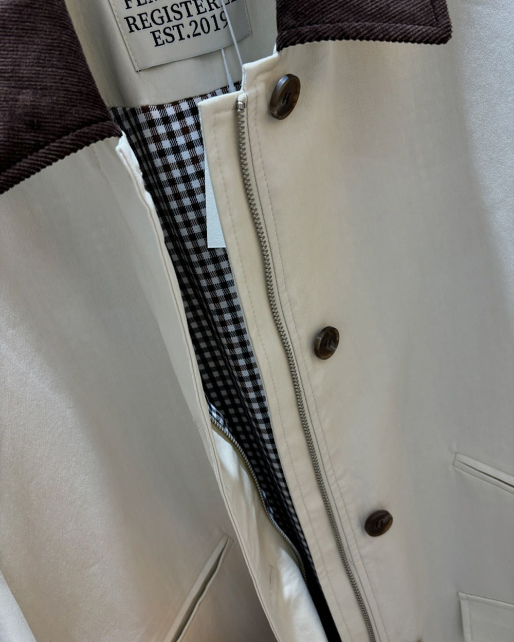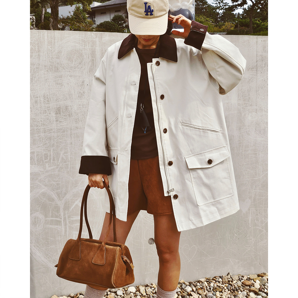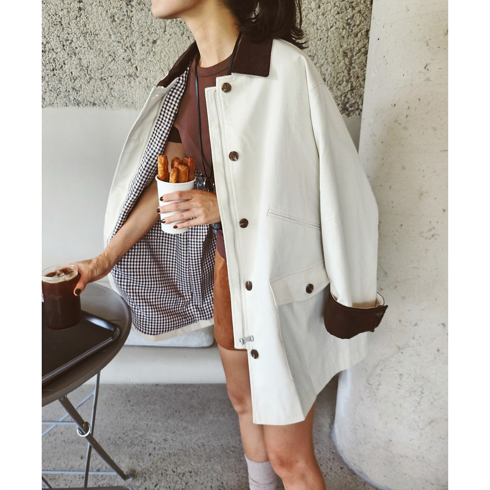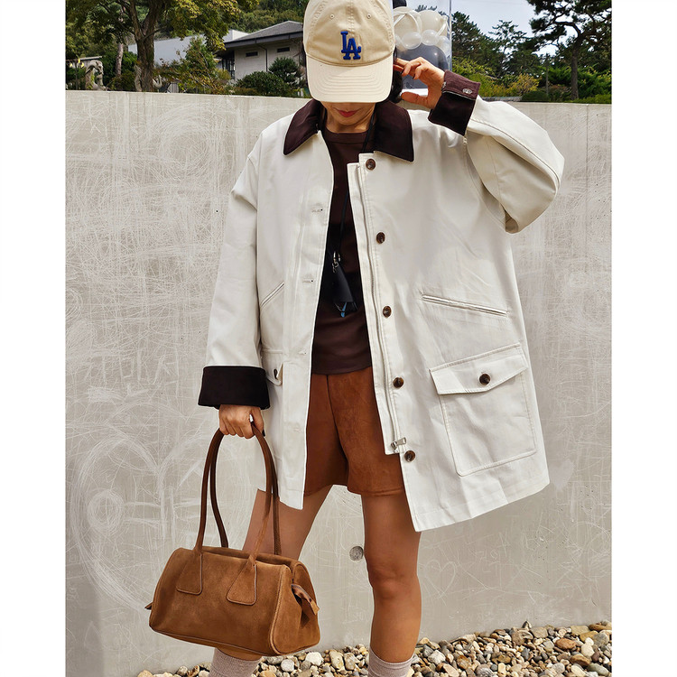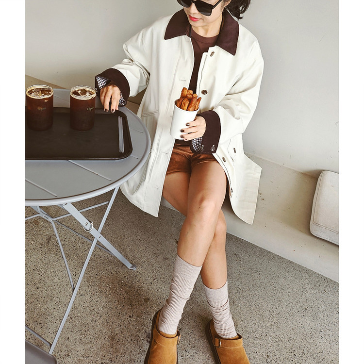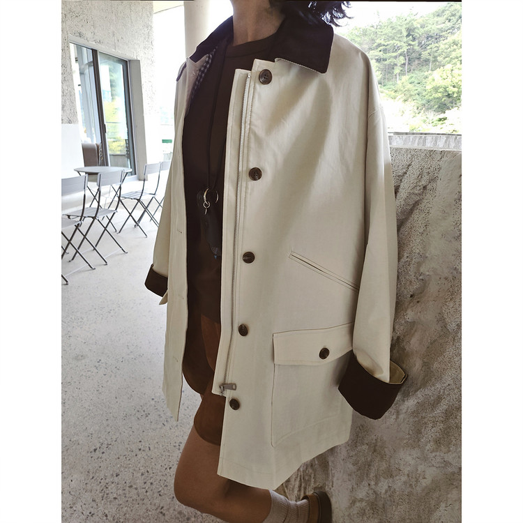 디코 골덴 카라 박시 루즈핏 하프 자켓