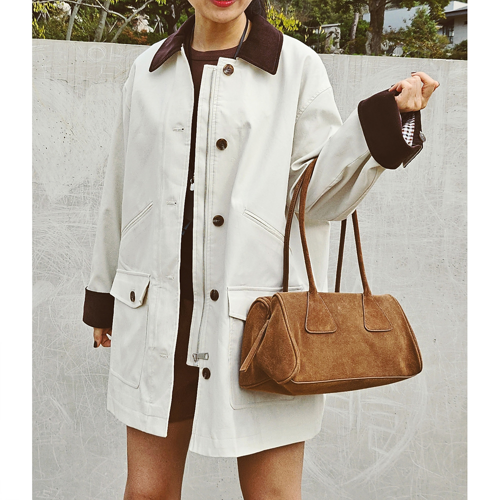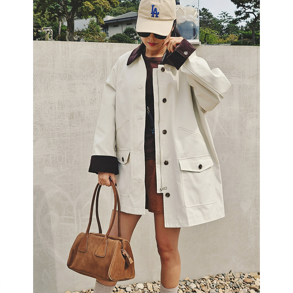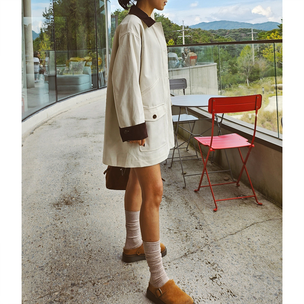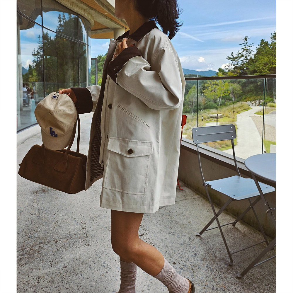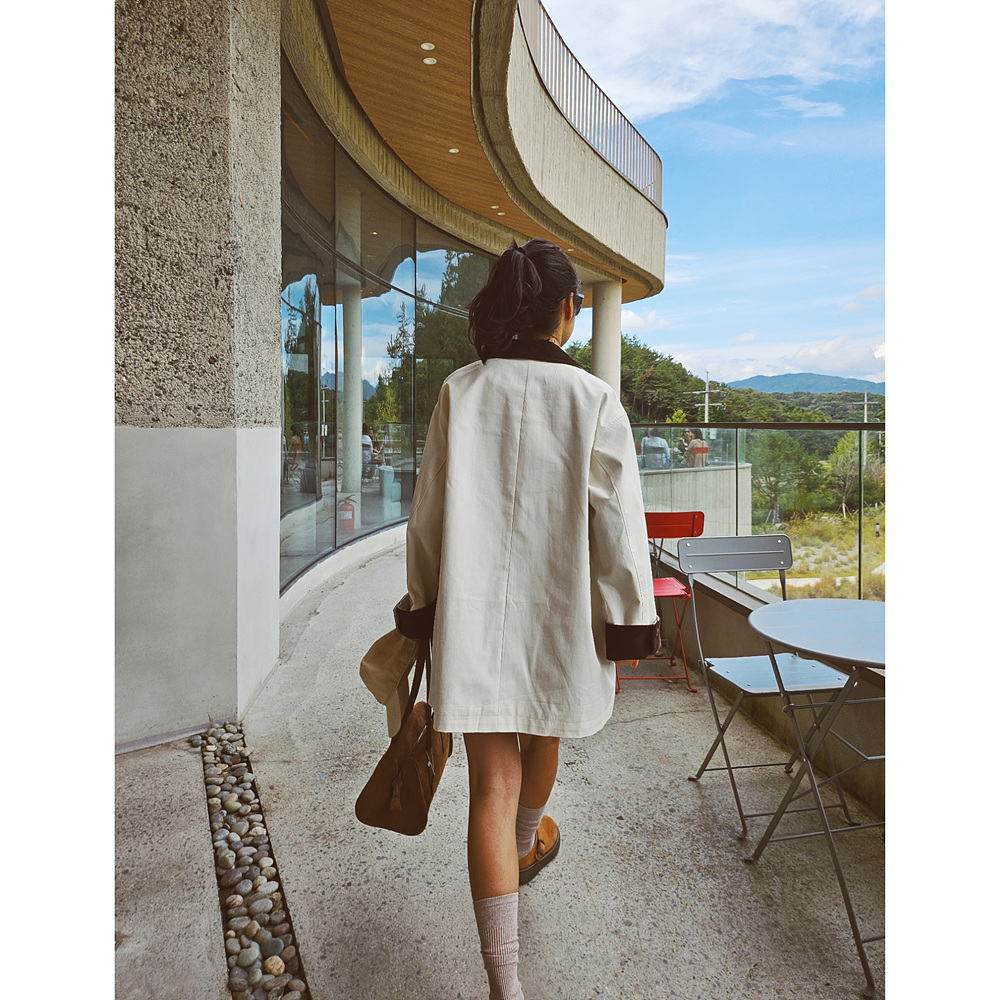 디코 골덴 카라 박시 루즈핏 하프 자켓