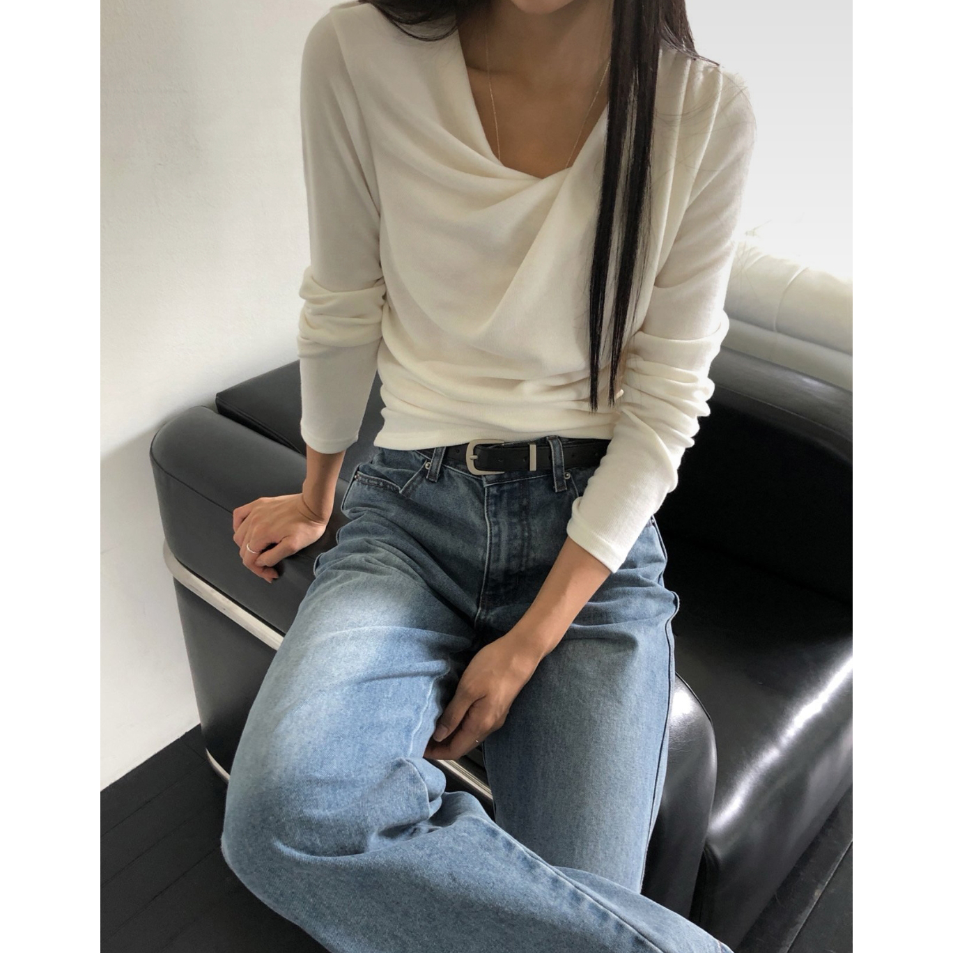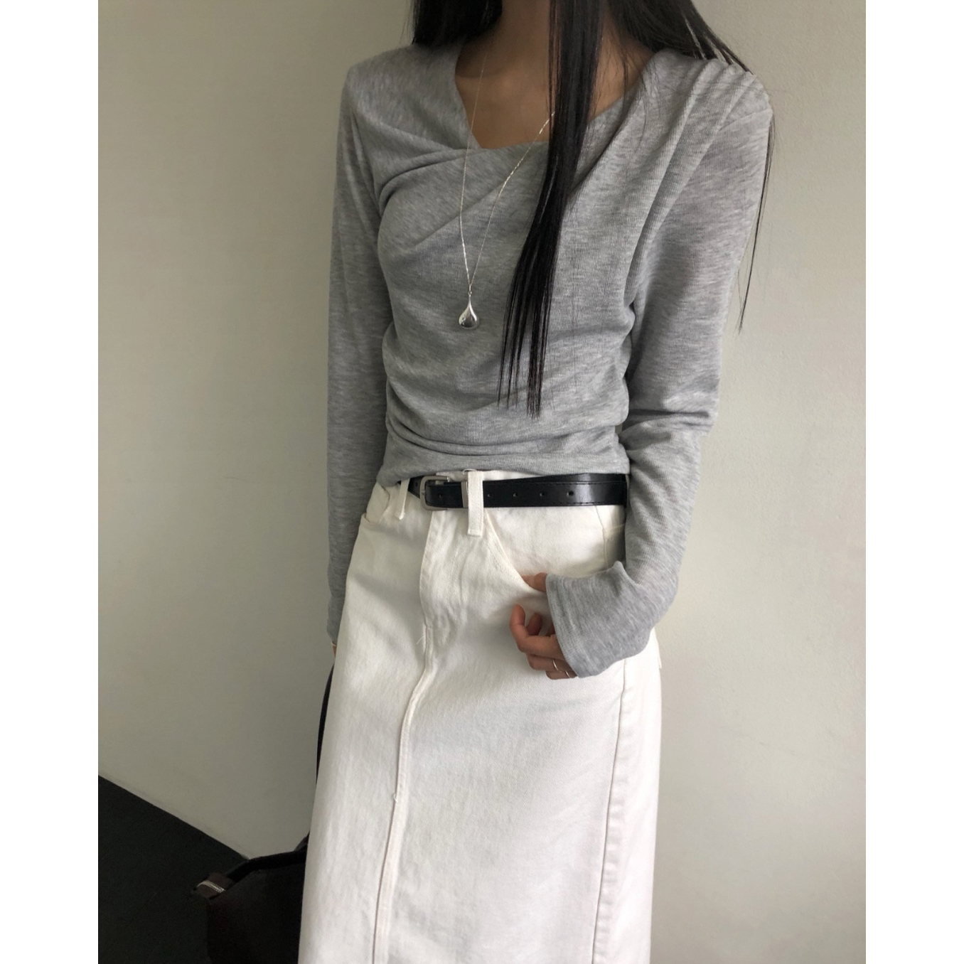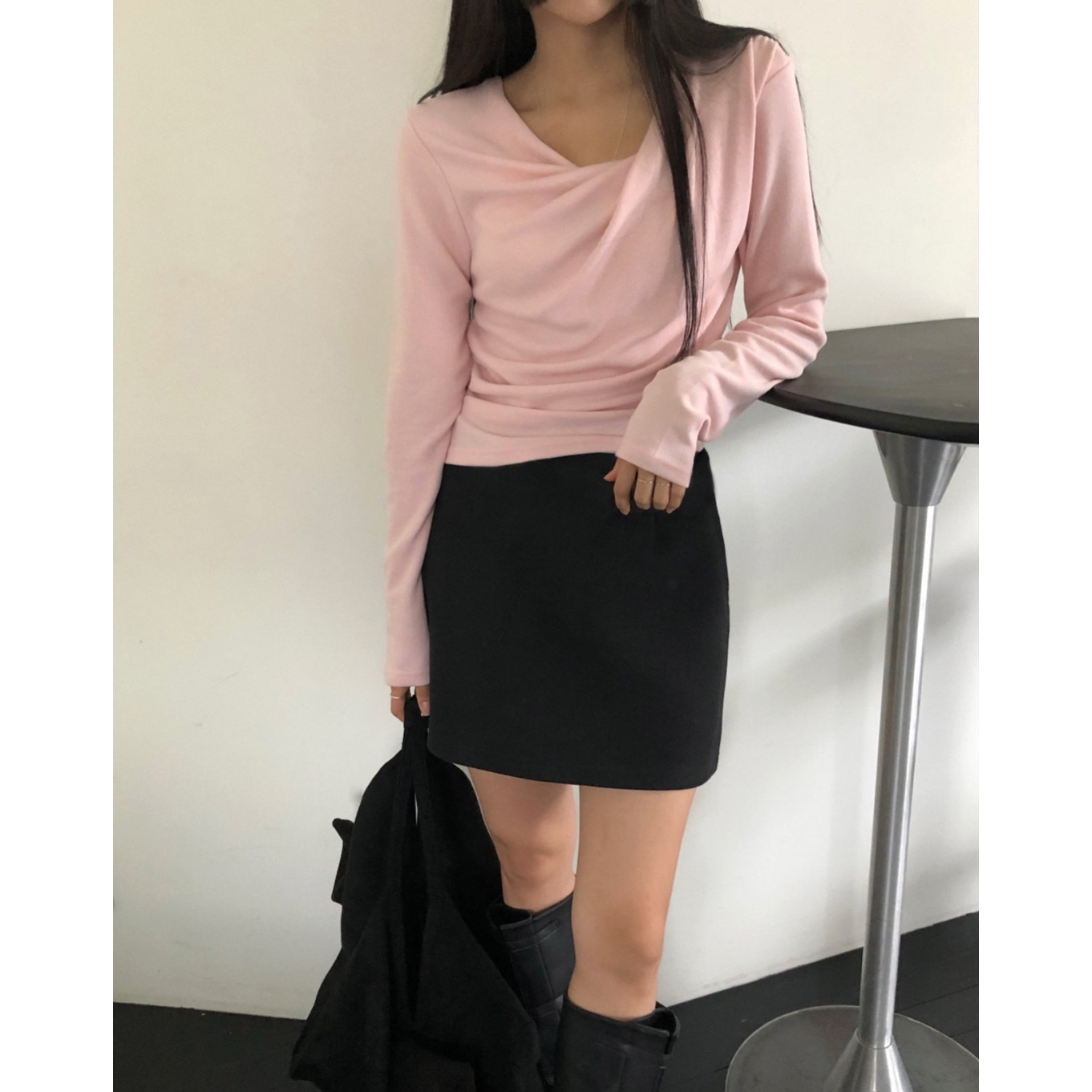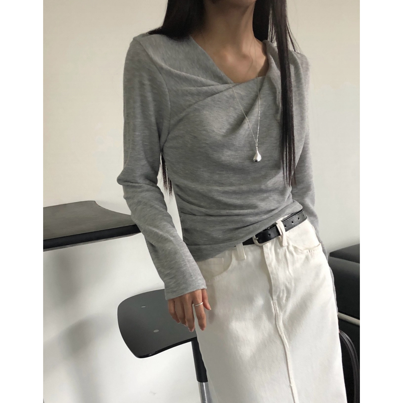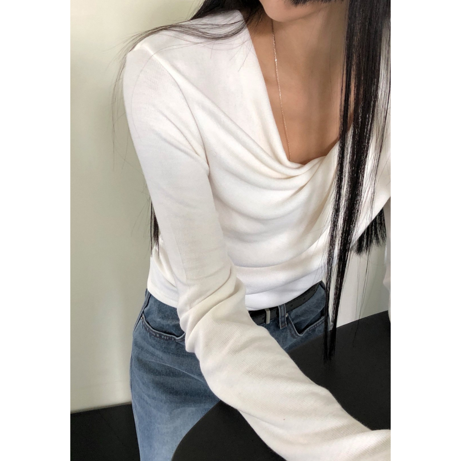 쏘잉 셔링 드레이프 니트티 티셔츠