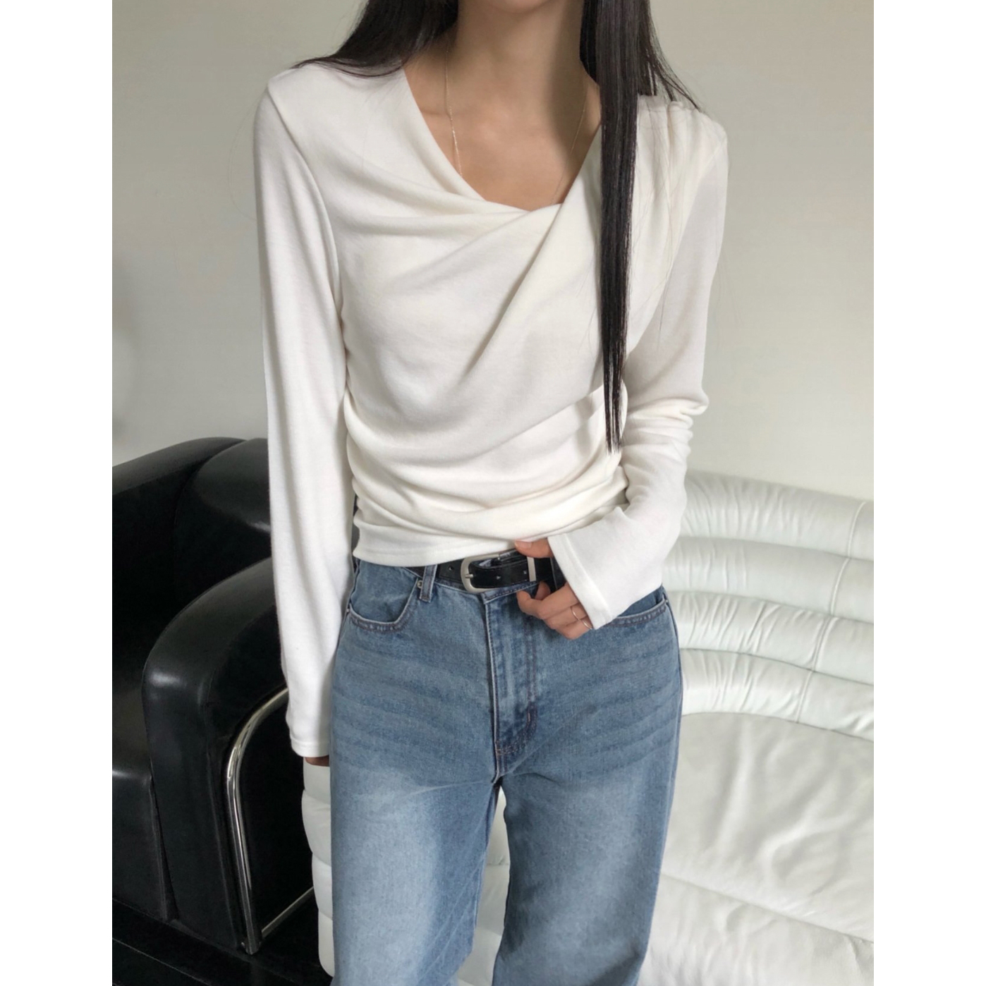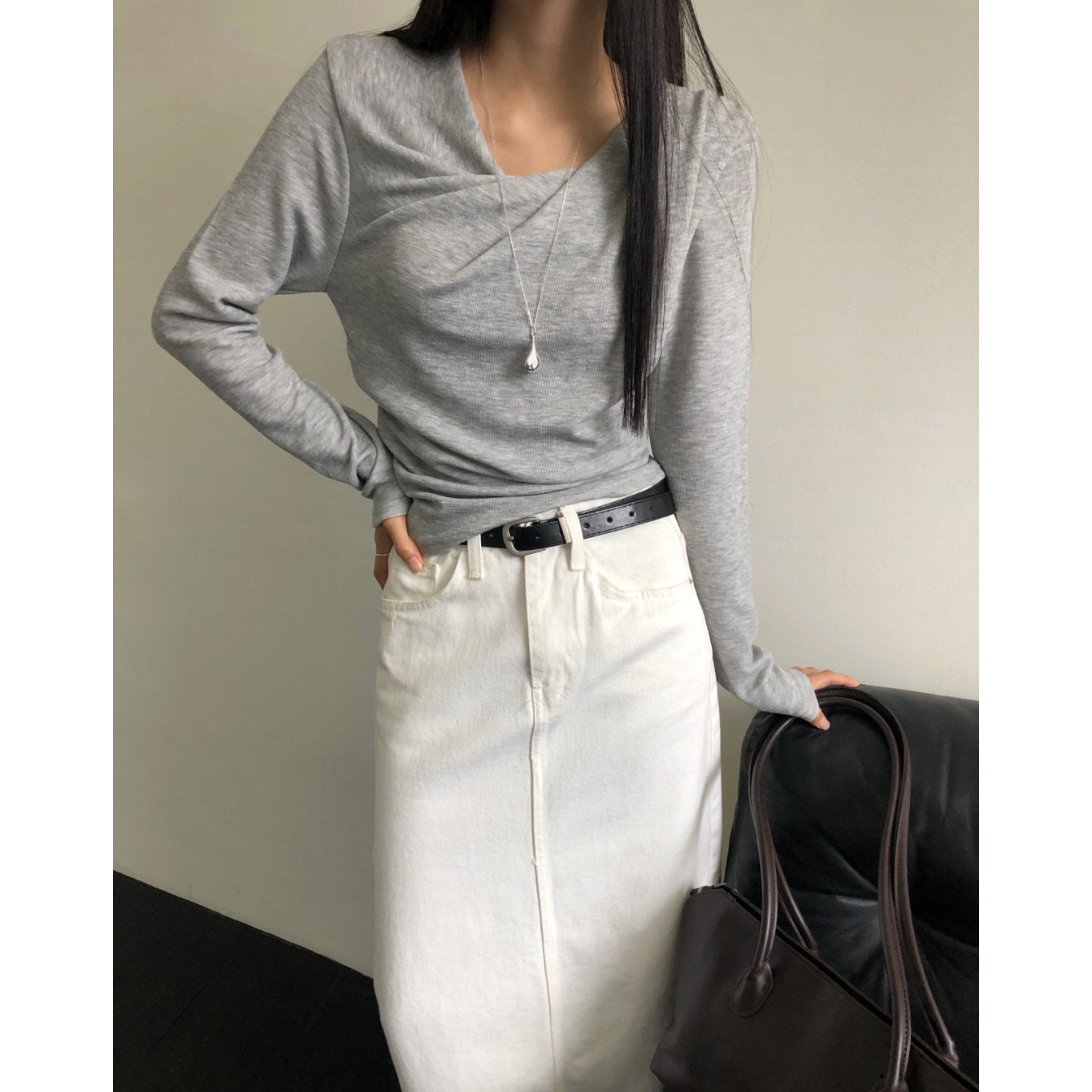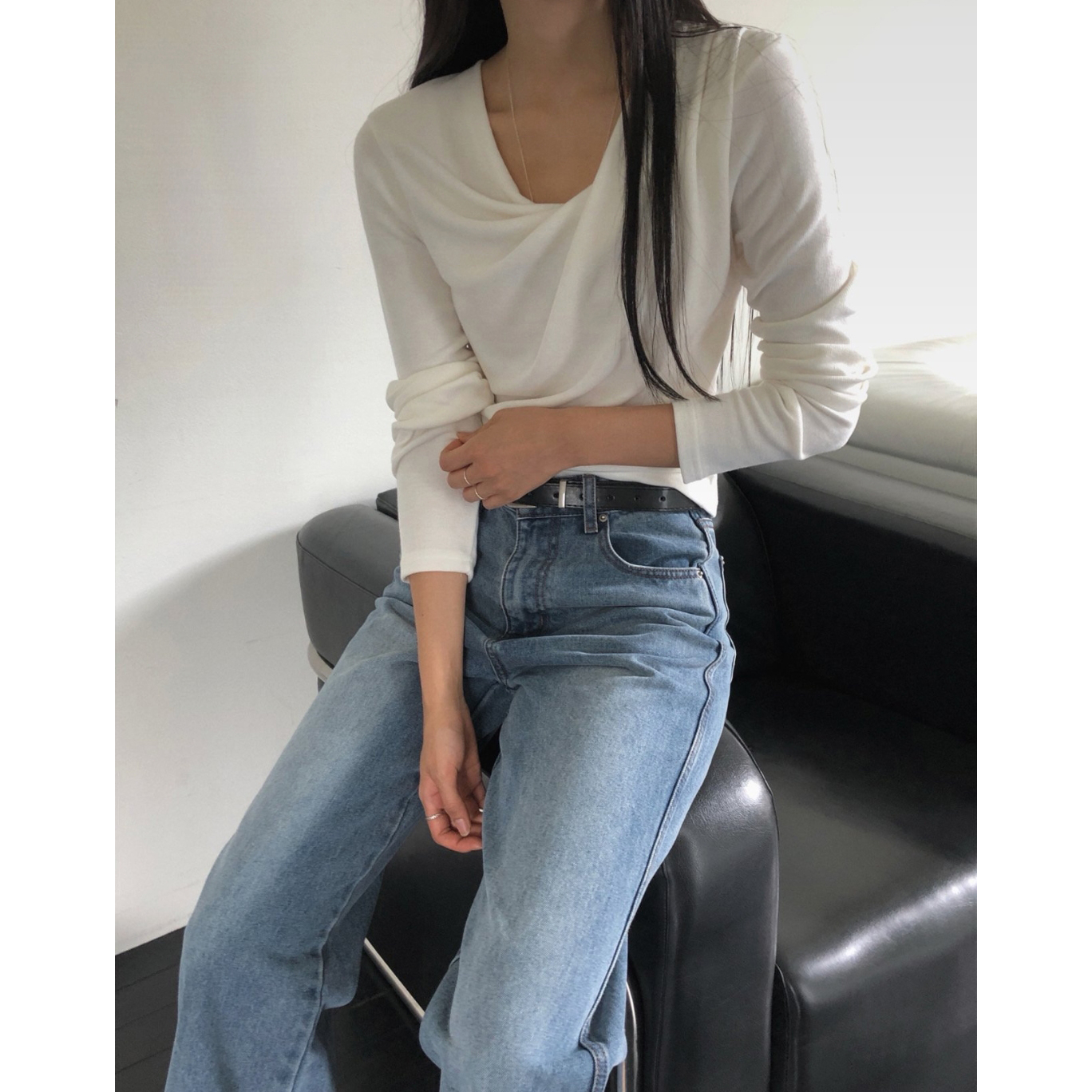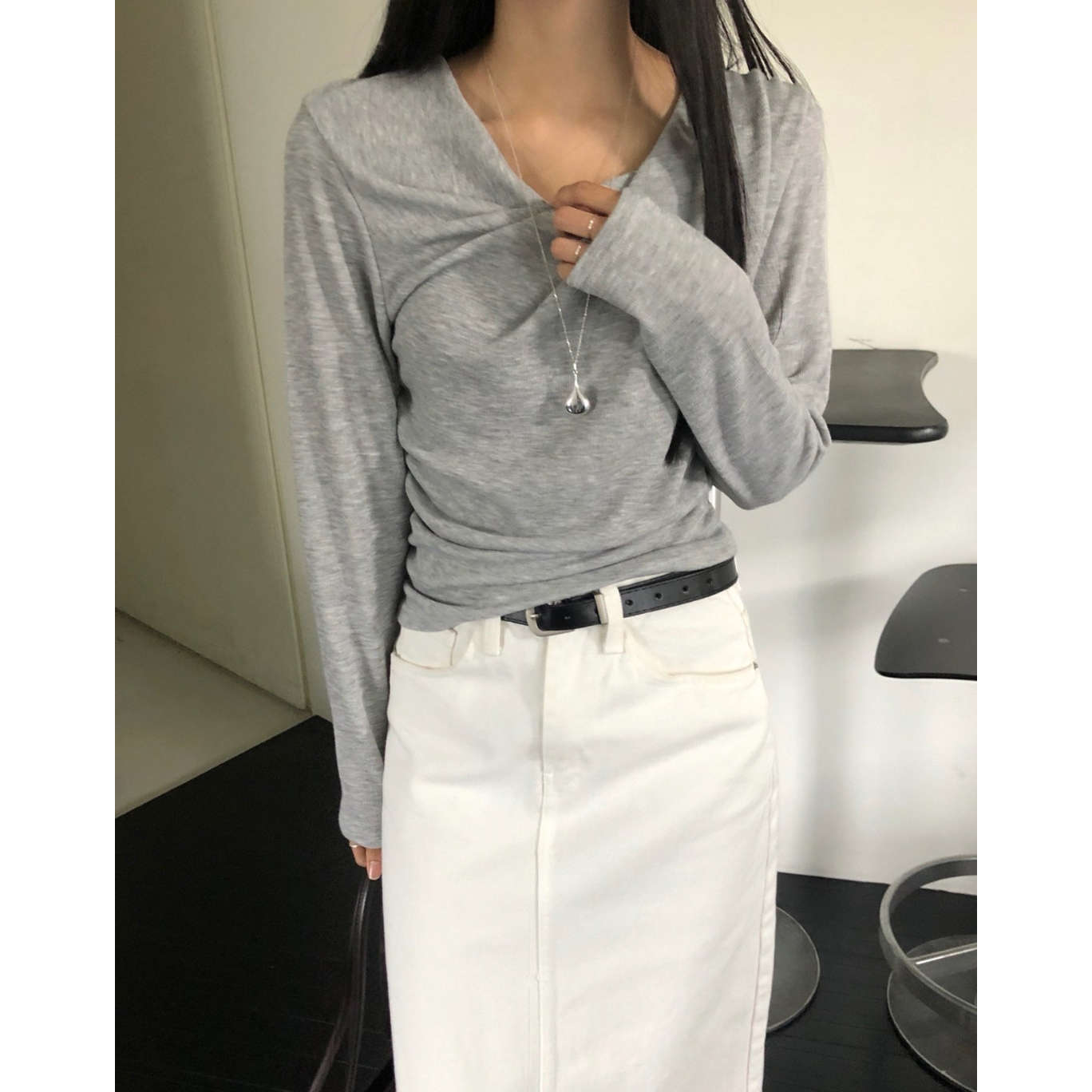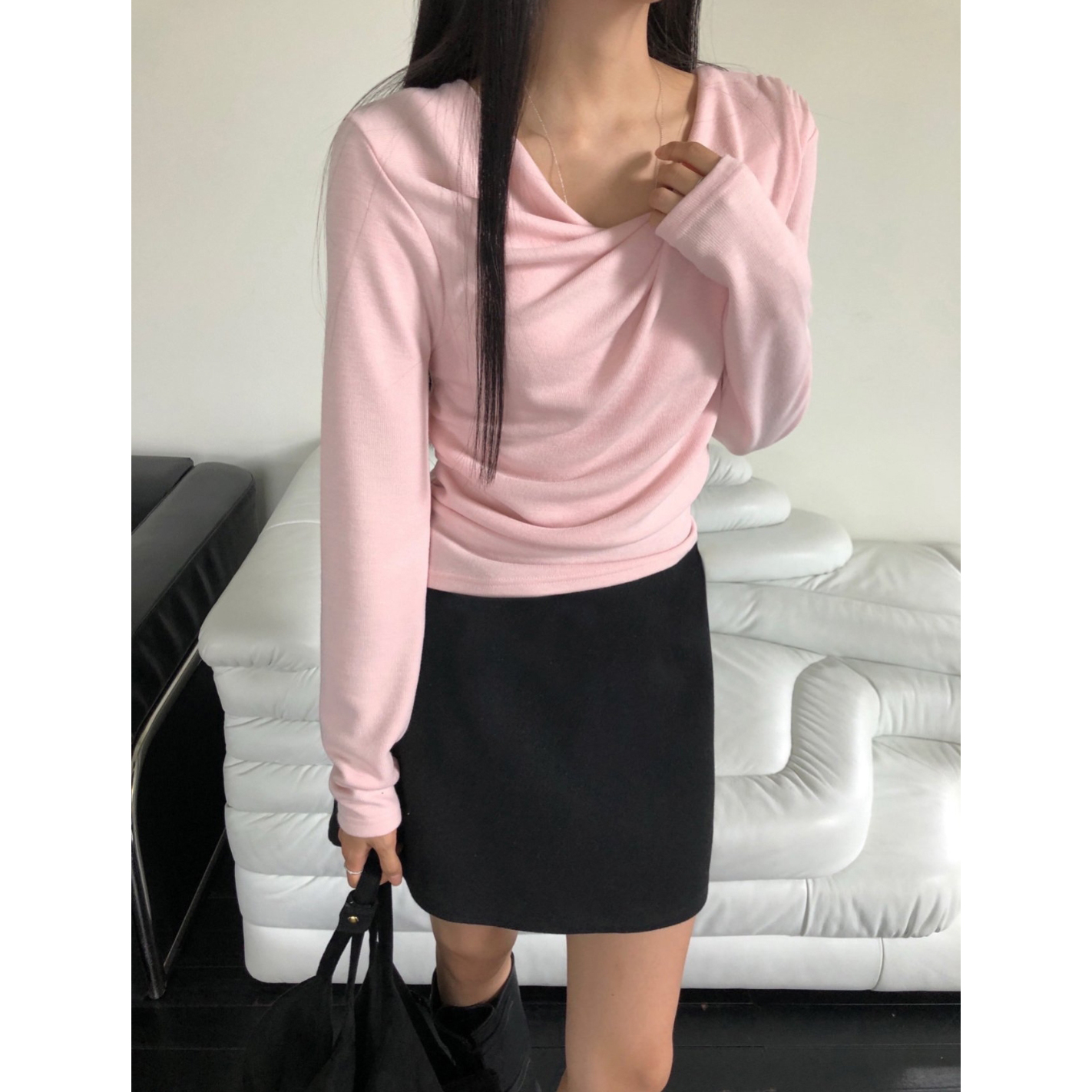 쏘잉 셔링 드레이프 니트티 티셔츠