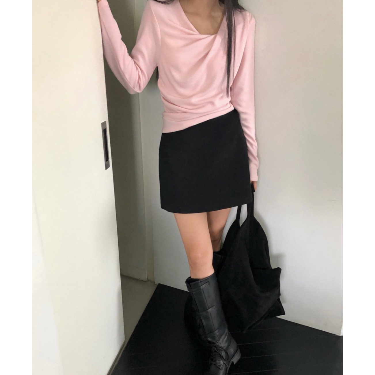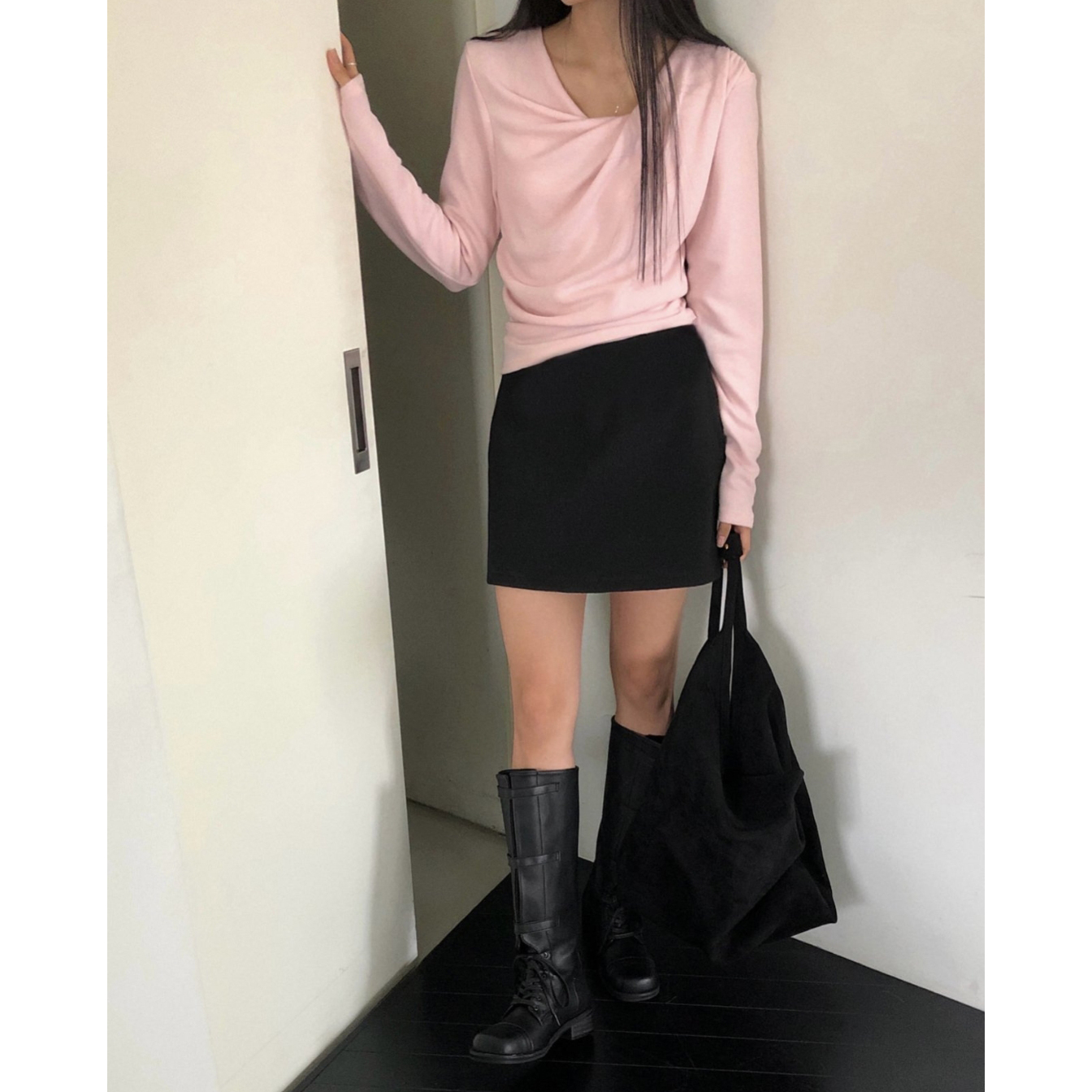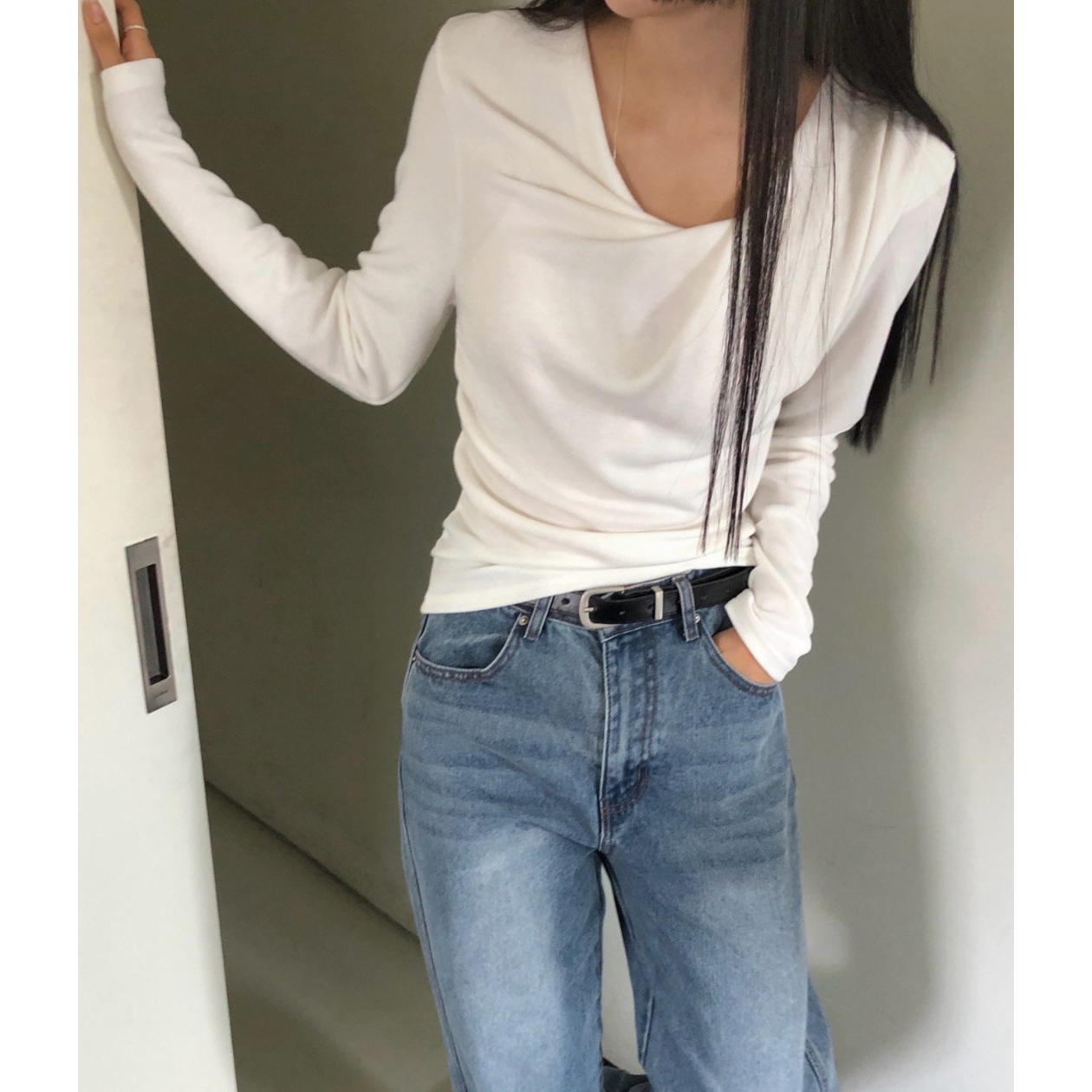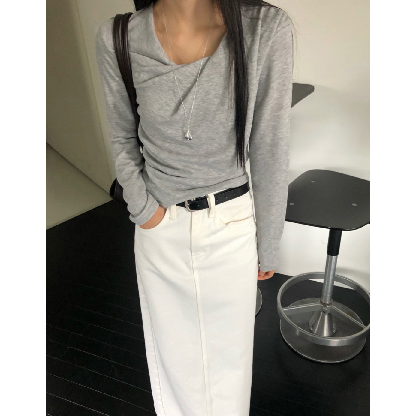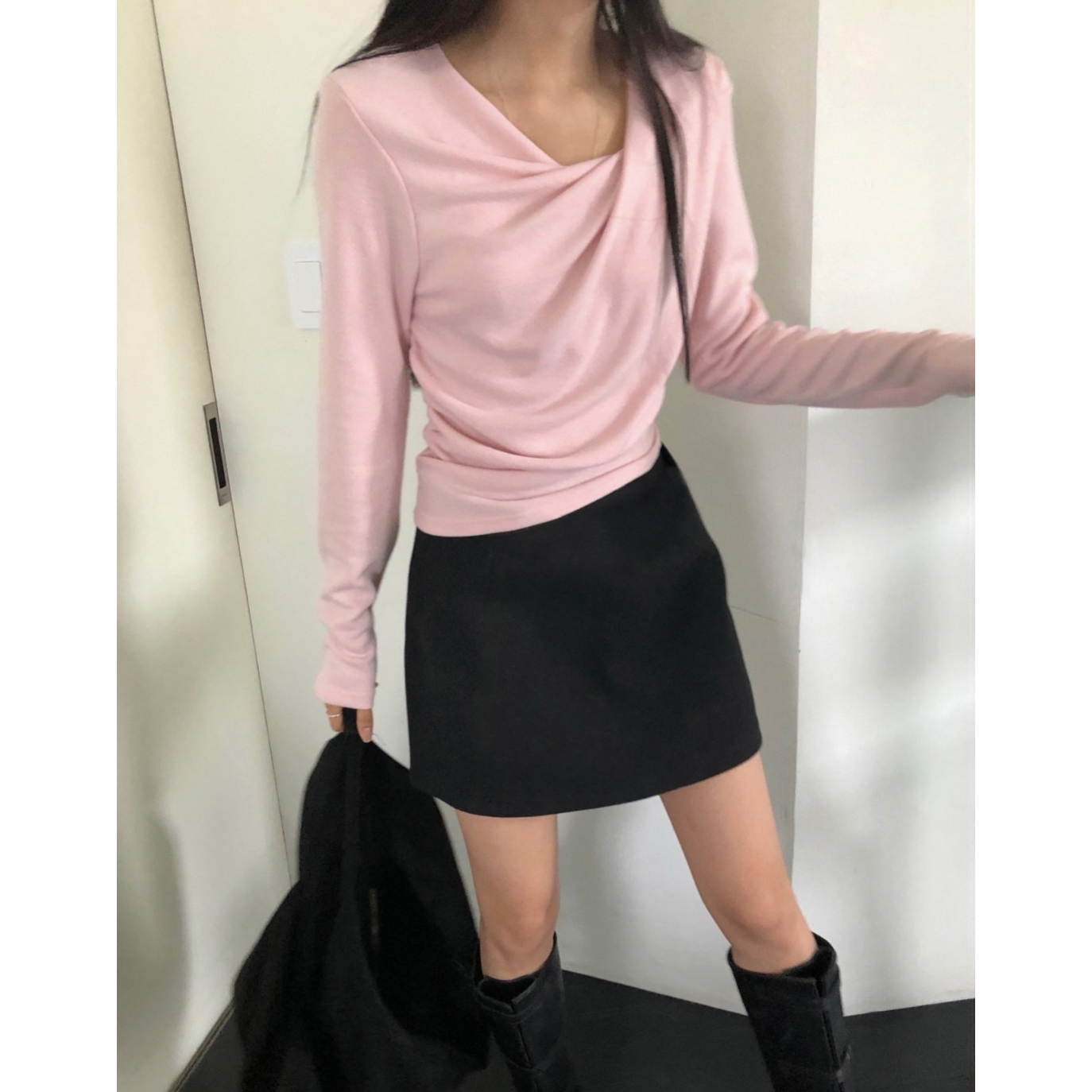 쏘잉 셔링 드레이프 니트티 티셔츠