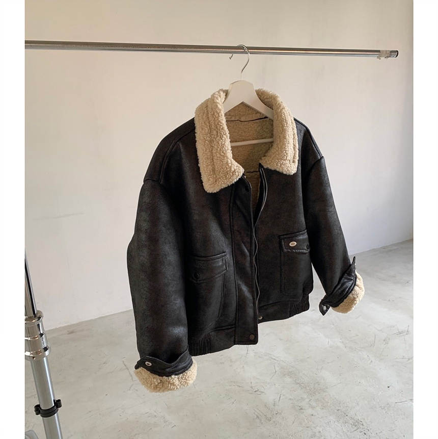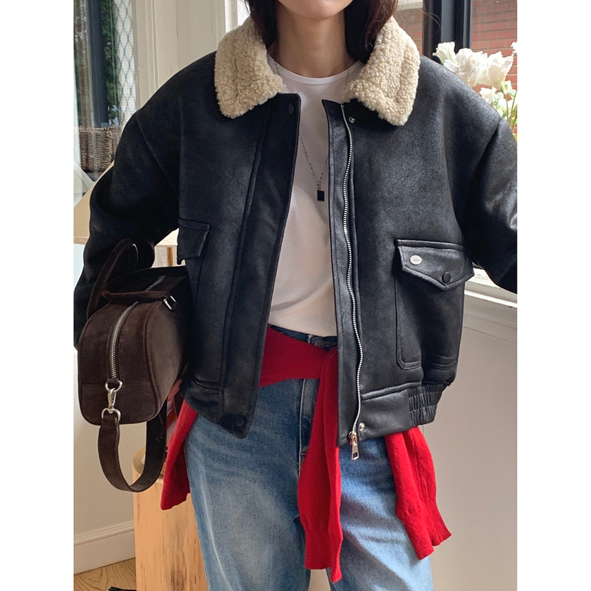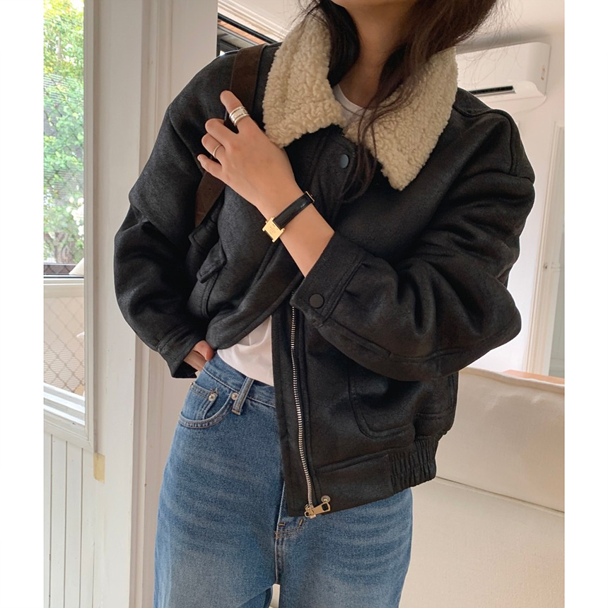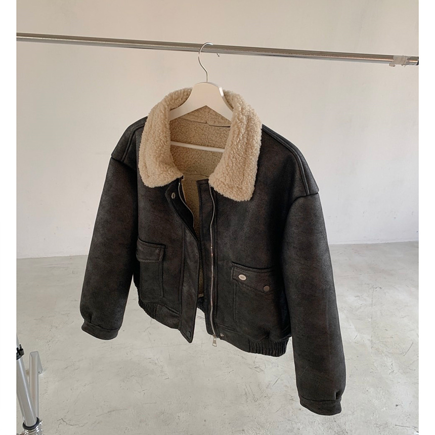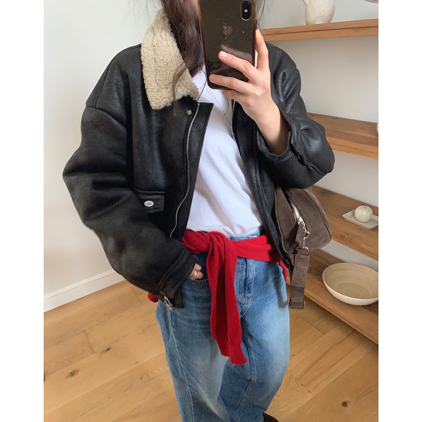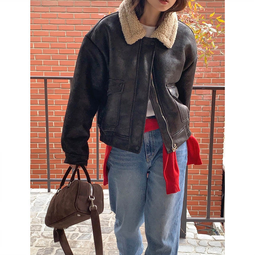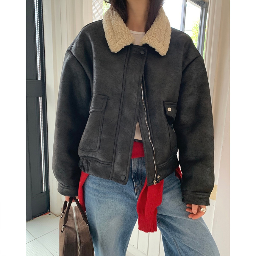 라이 뽀글 카라 양털 무스탕 숏 점퍼