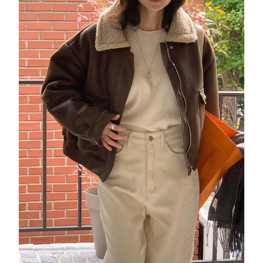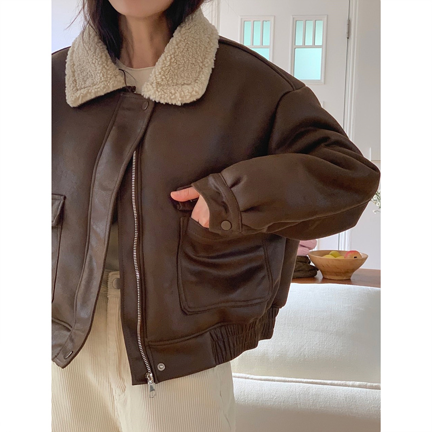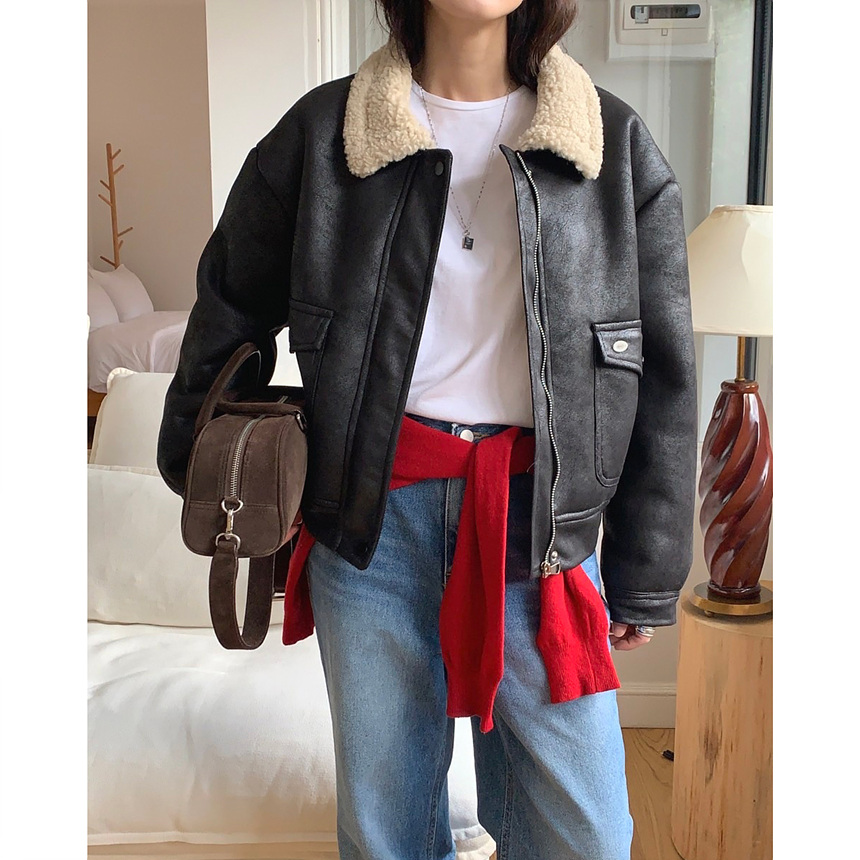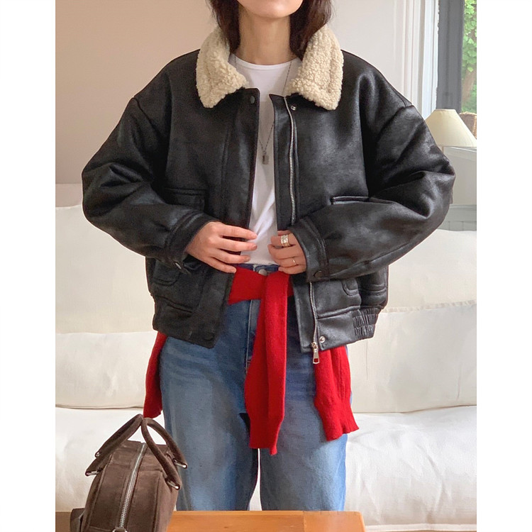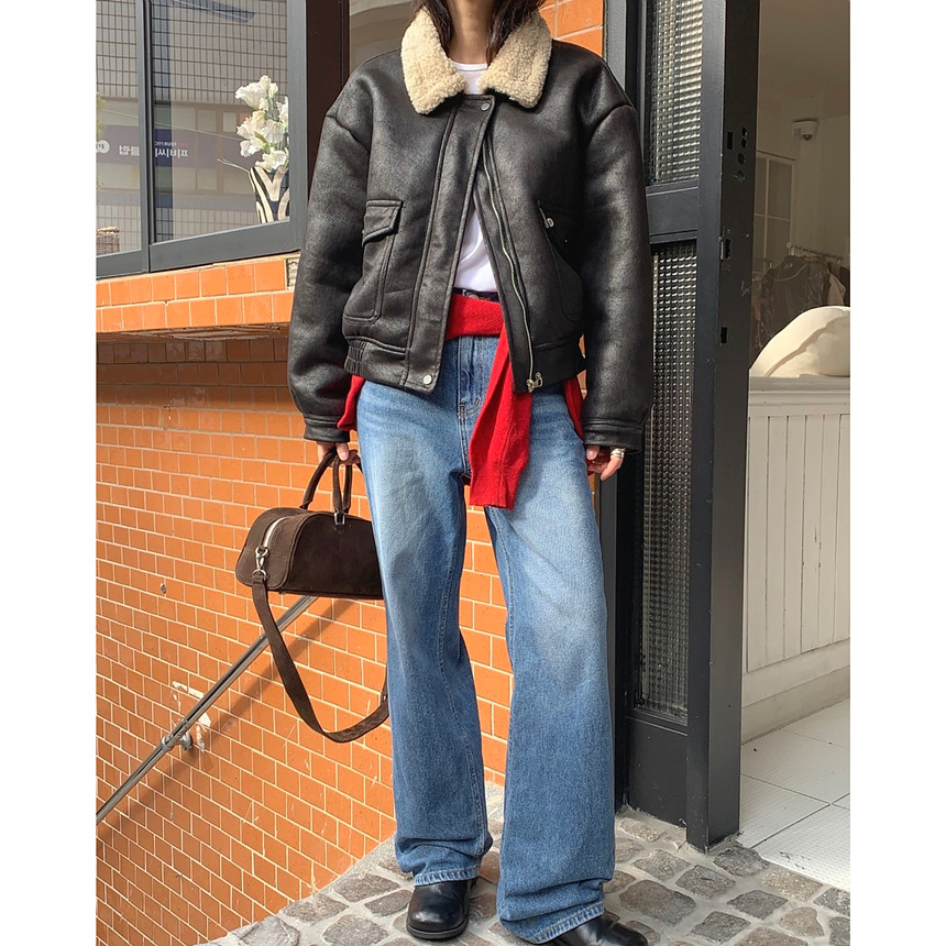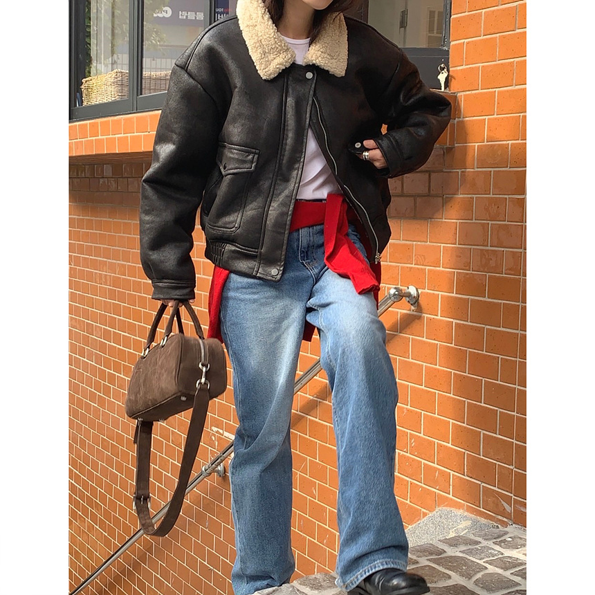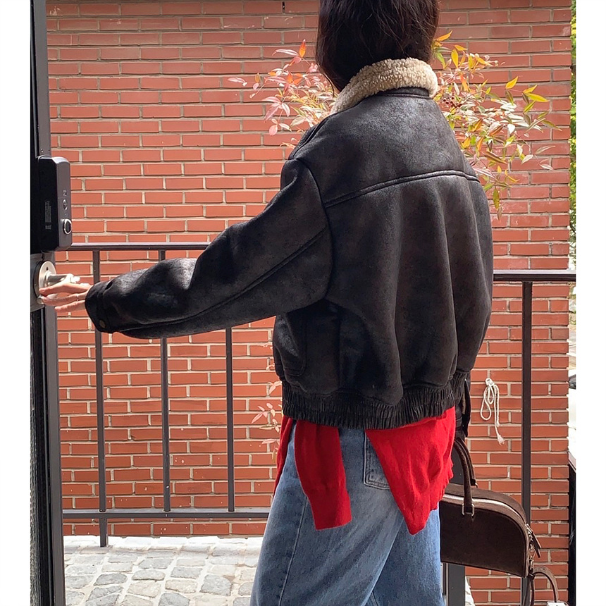 라이 뽀글 카라 양털 무스탕 숏 점퍼
