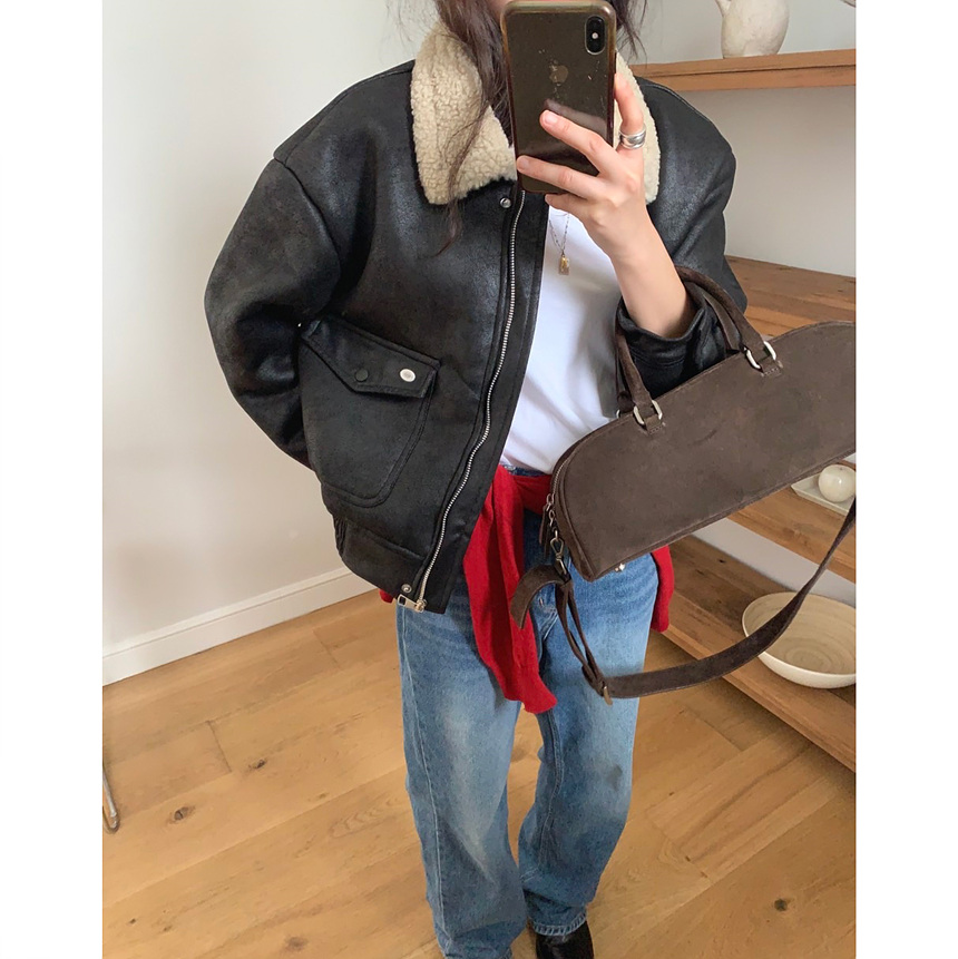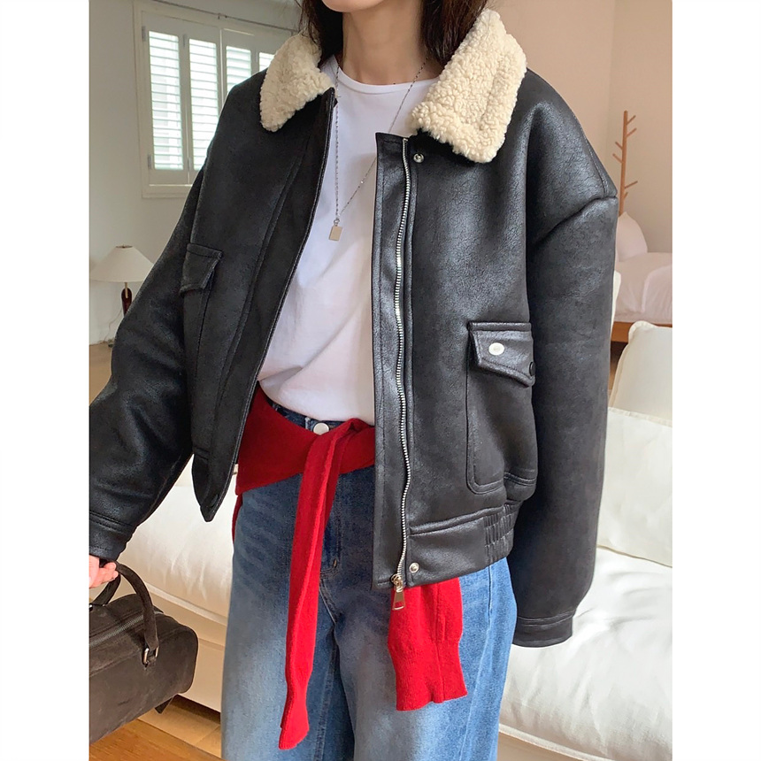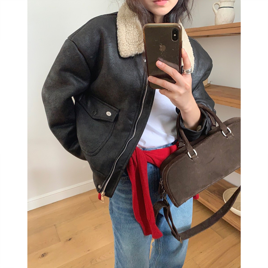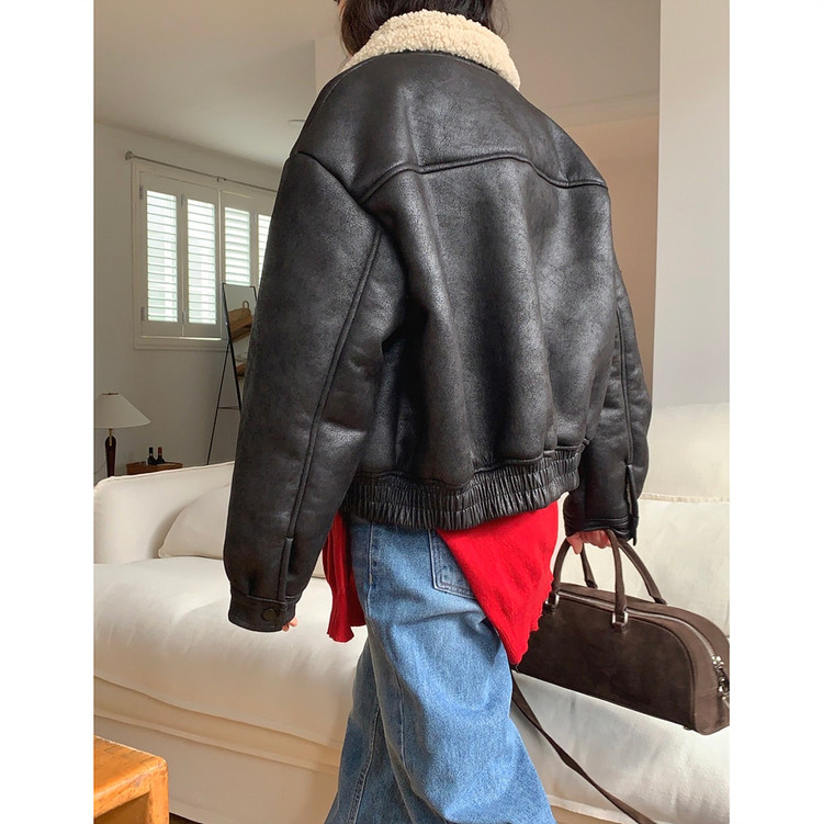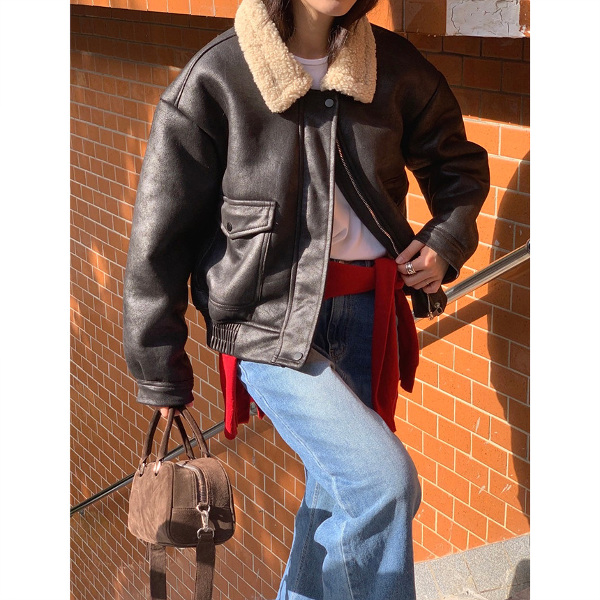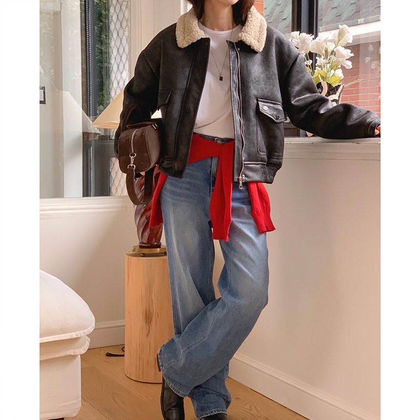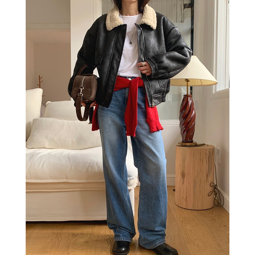 라이 뽀글 카라 양털 무스탕 숏 점퍼