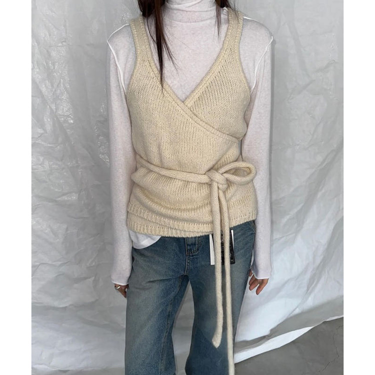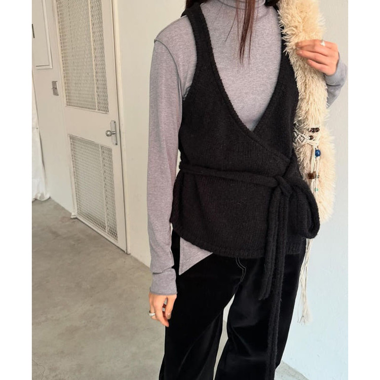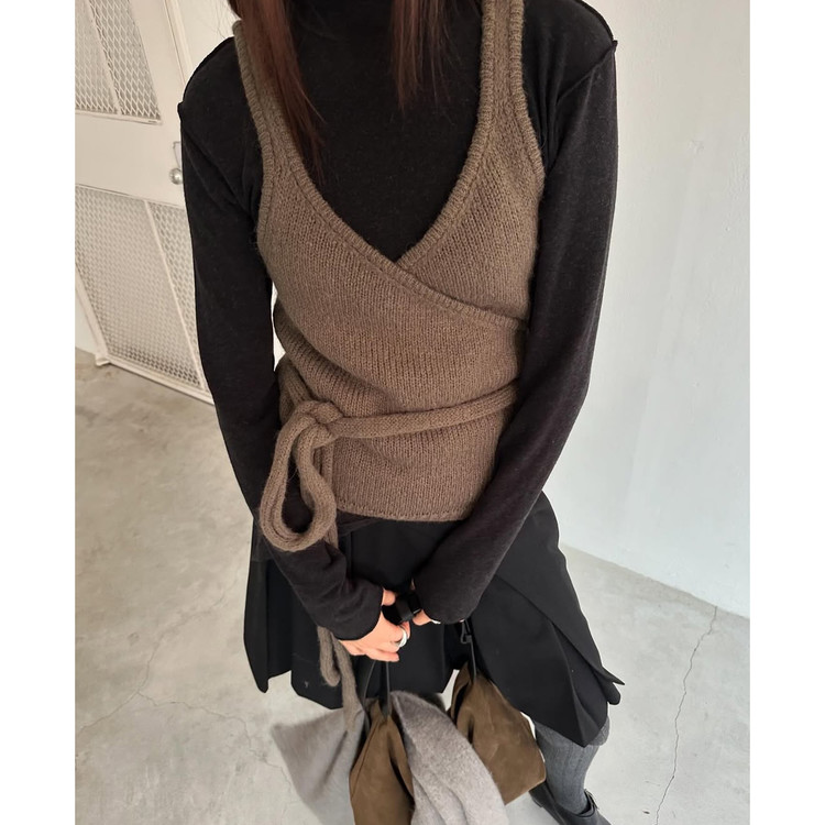 바로발송 브이 랩 뷔스티에 알파카 울 베스트