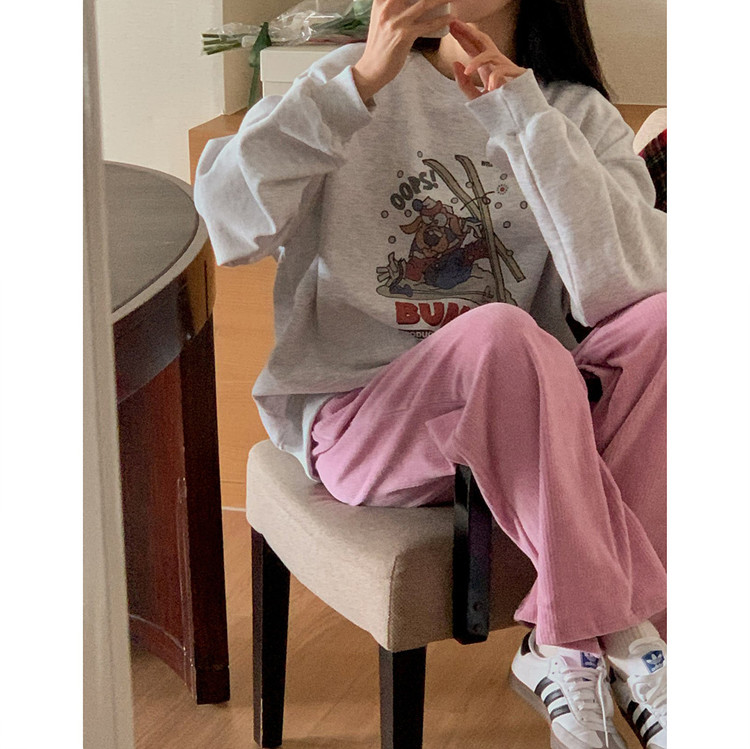 바로발송 로이 골지 벨로아 일자 밴딩 츄리닝 팬츠