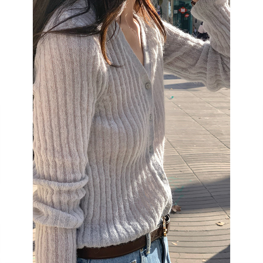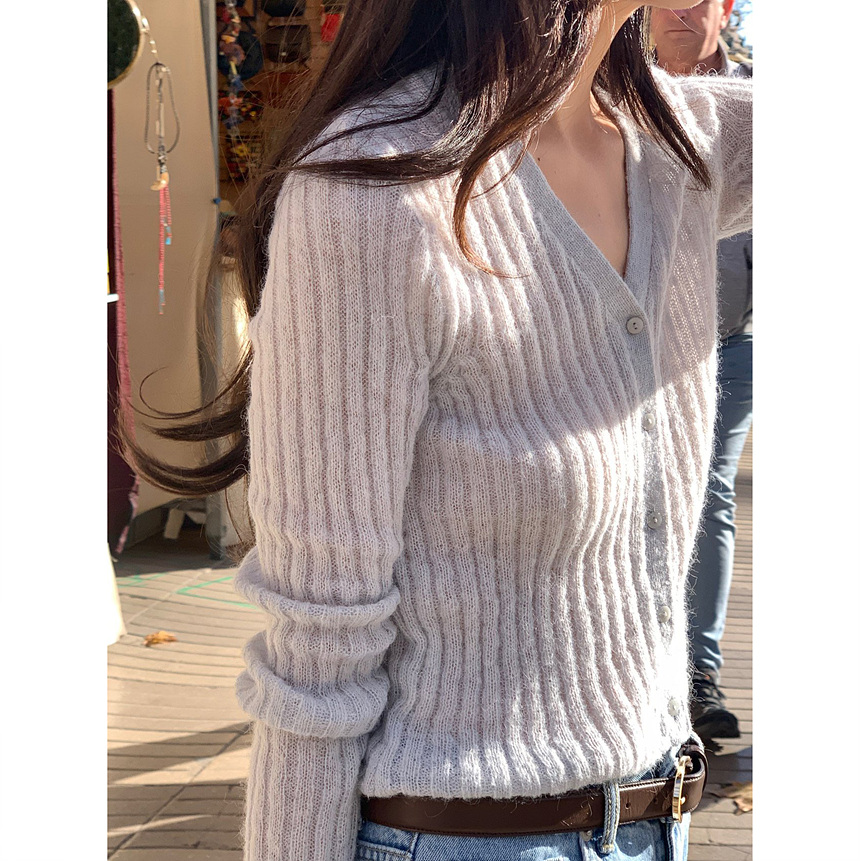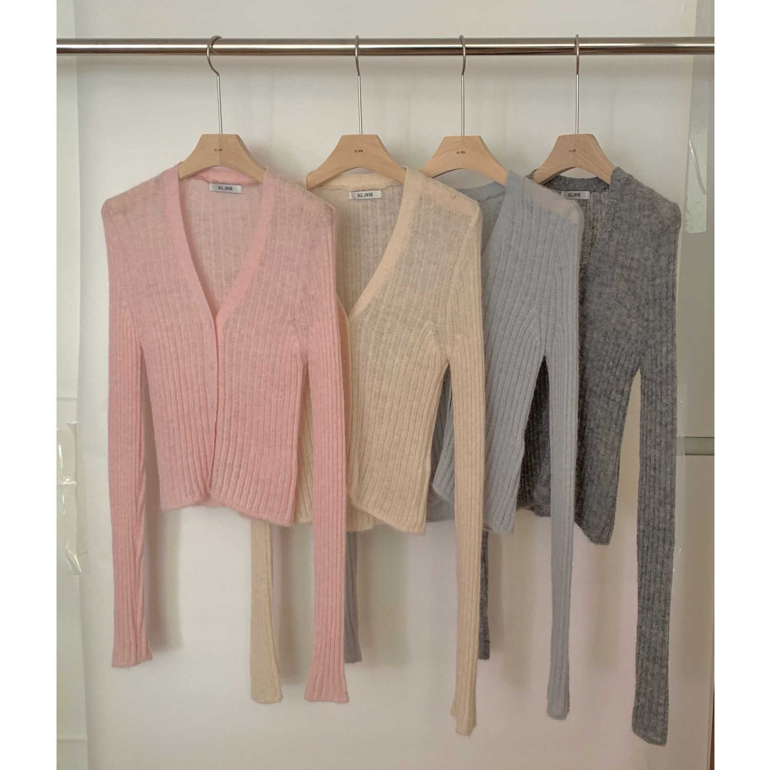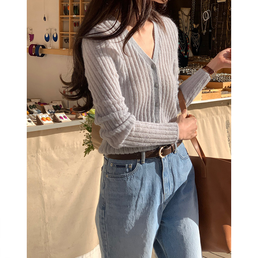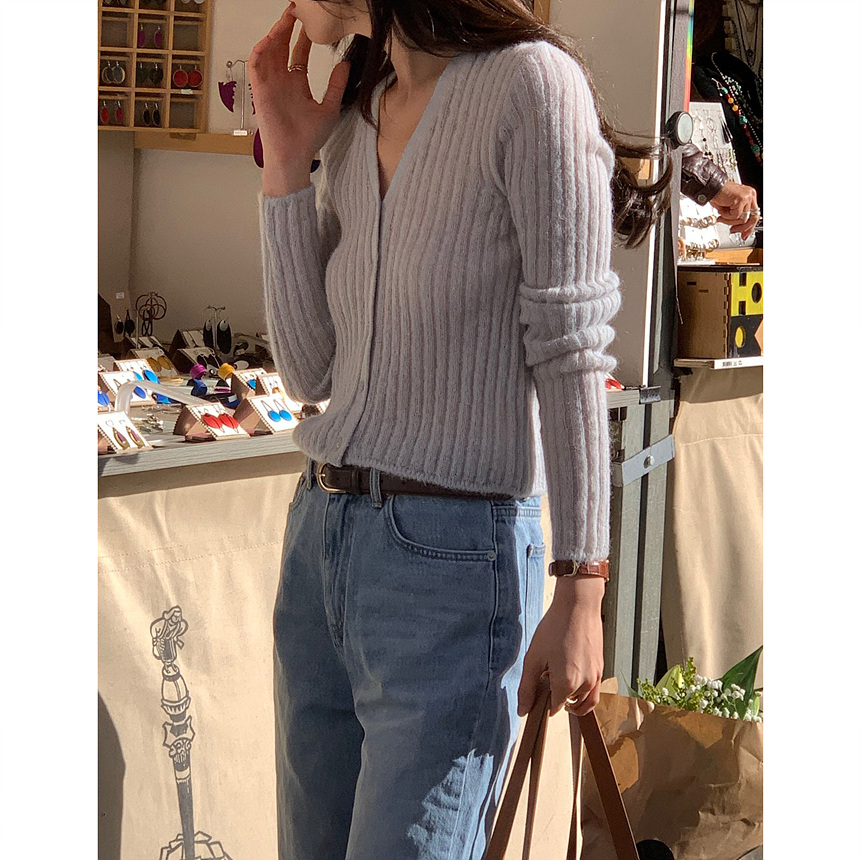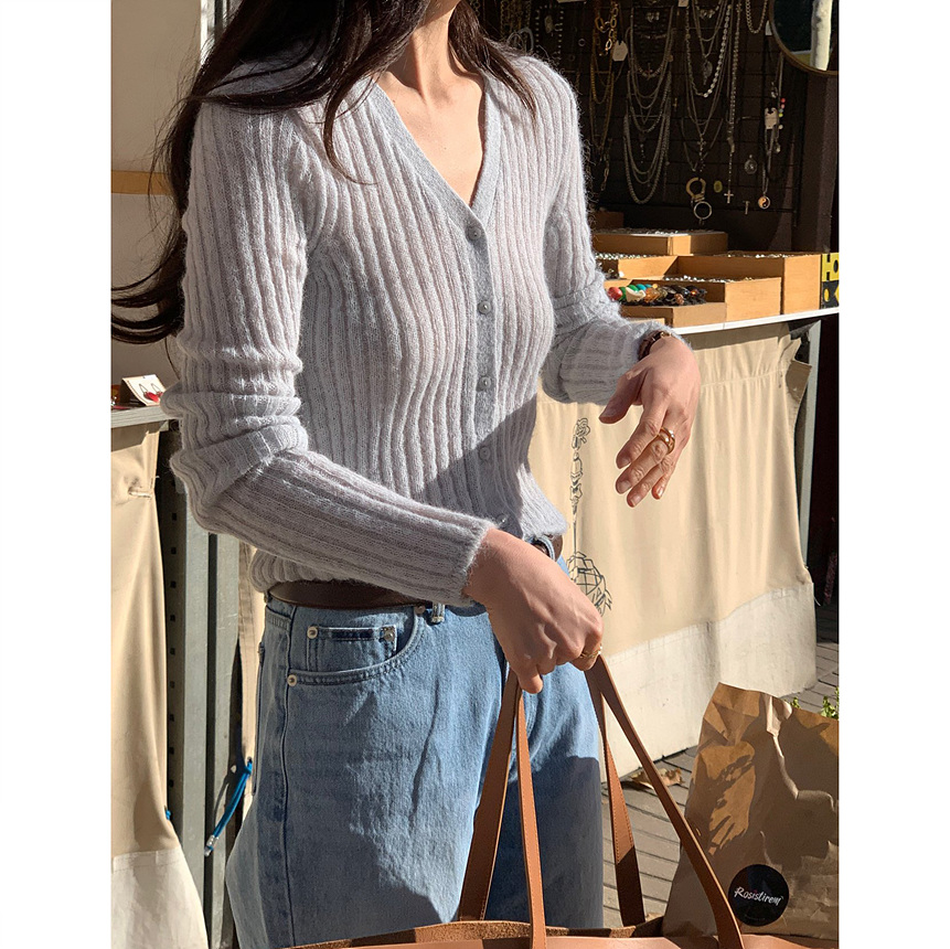 러뷰 골지 브이넥 슬림핏 모헤어 가디건