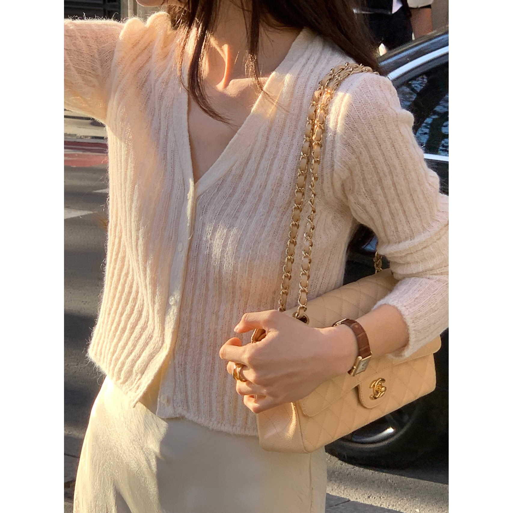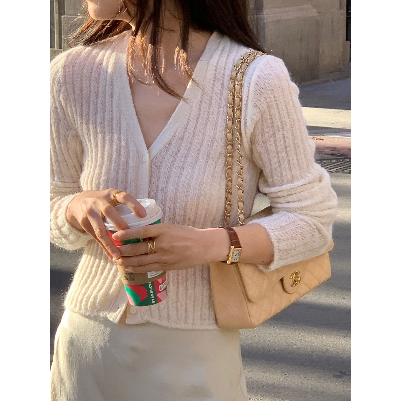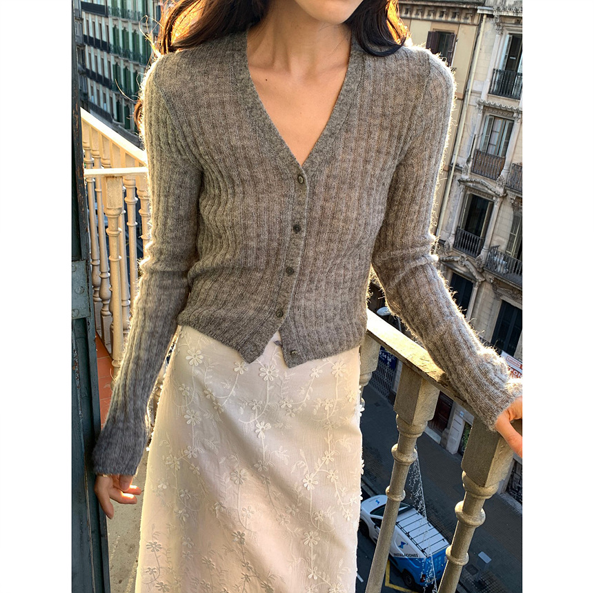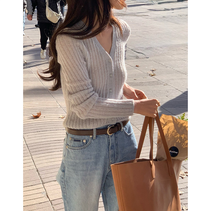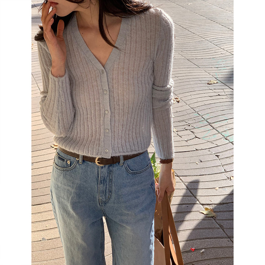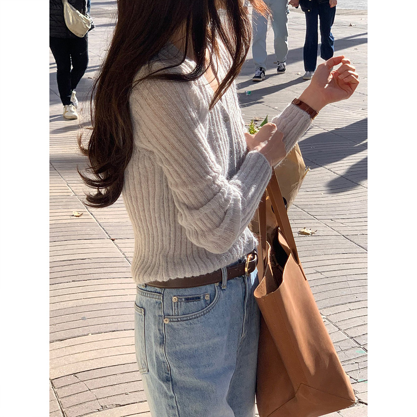 러뷰 골지 브이넥 슬림핏 모헤어 가디건