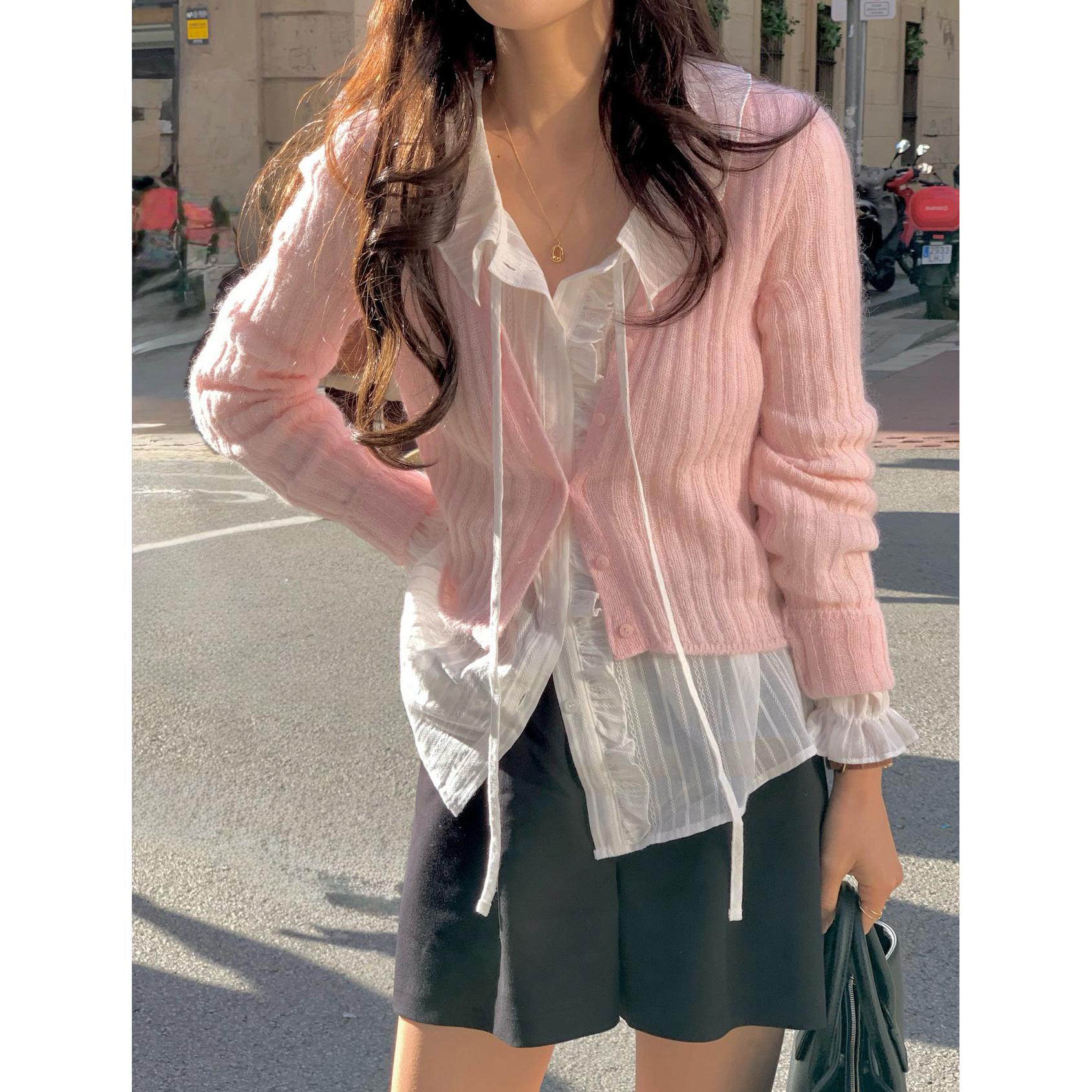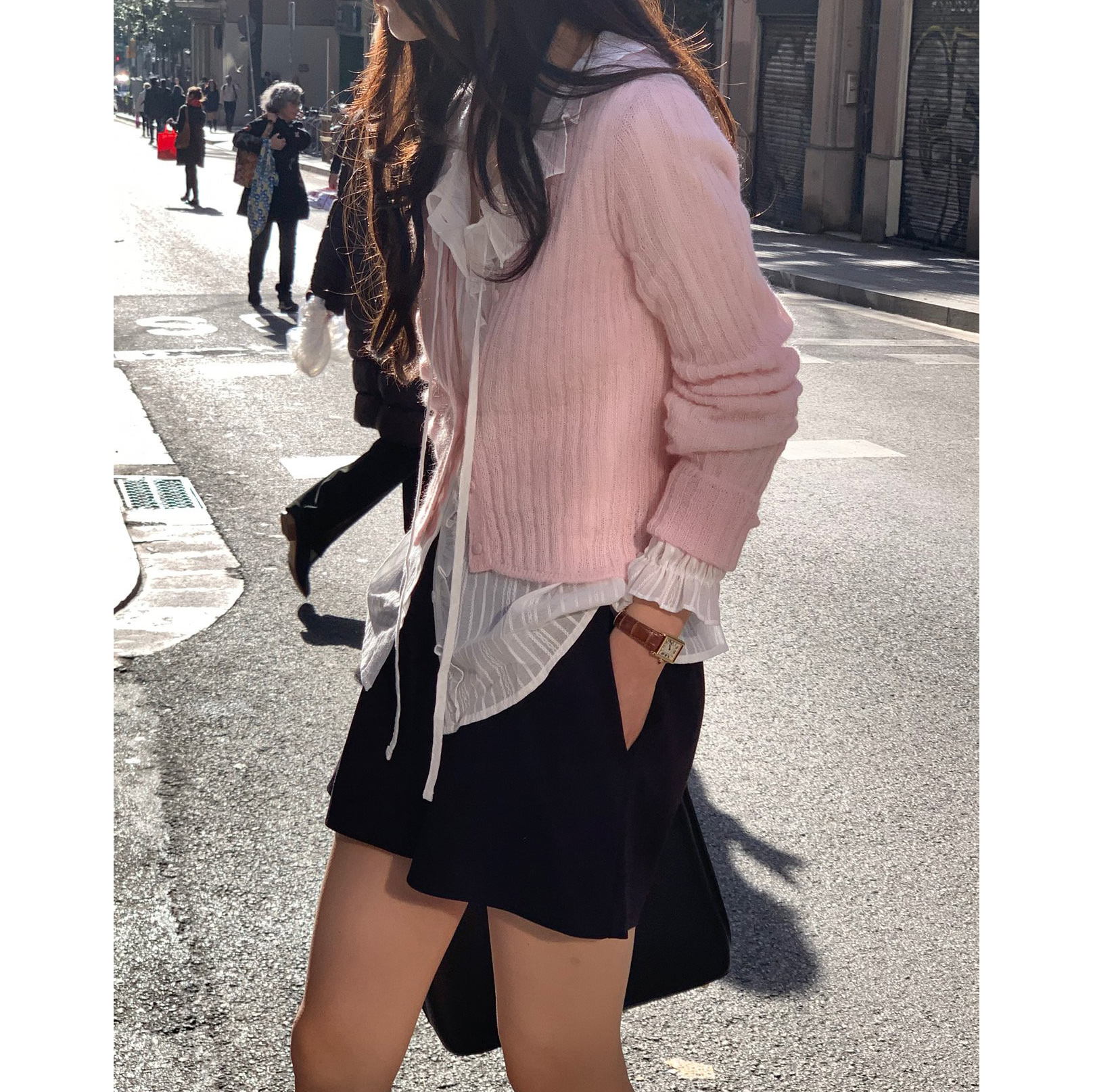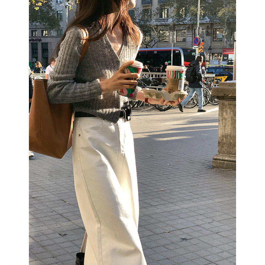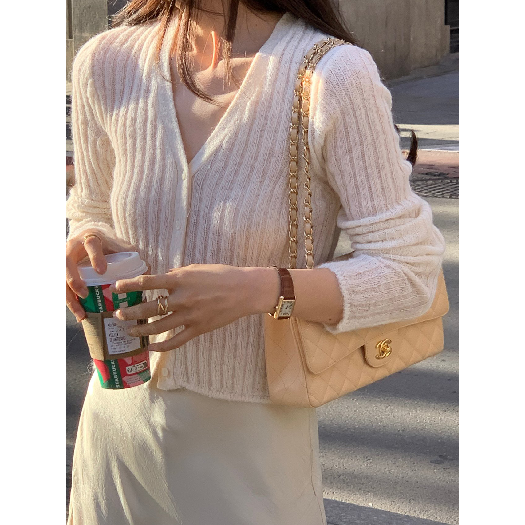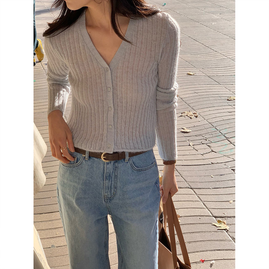러뷰 골지 브이넥 슬림핏 모헤어 가디건