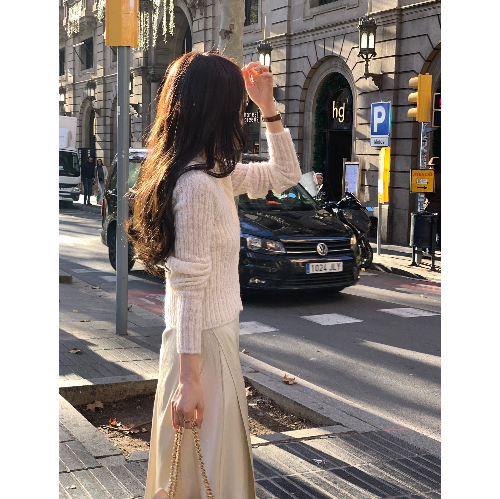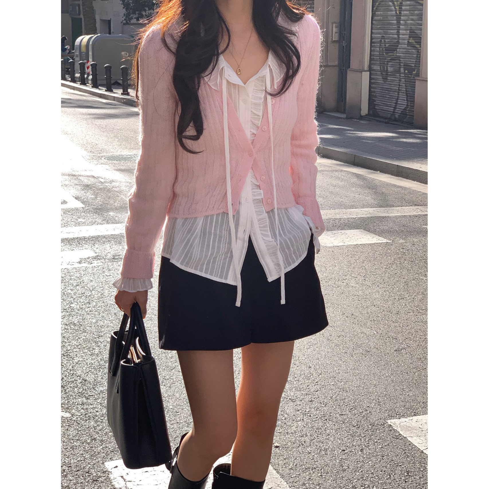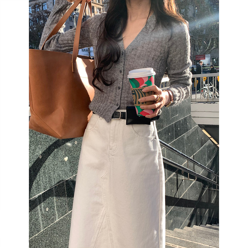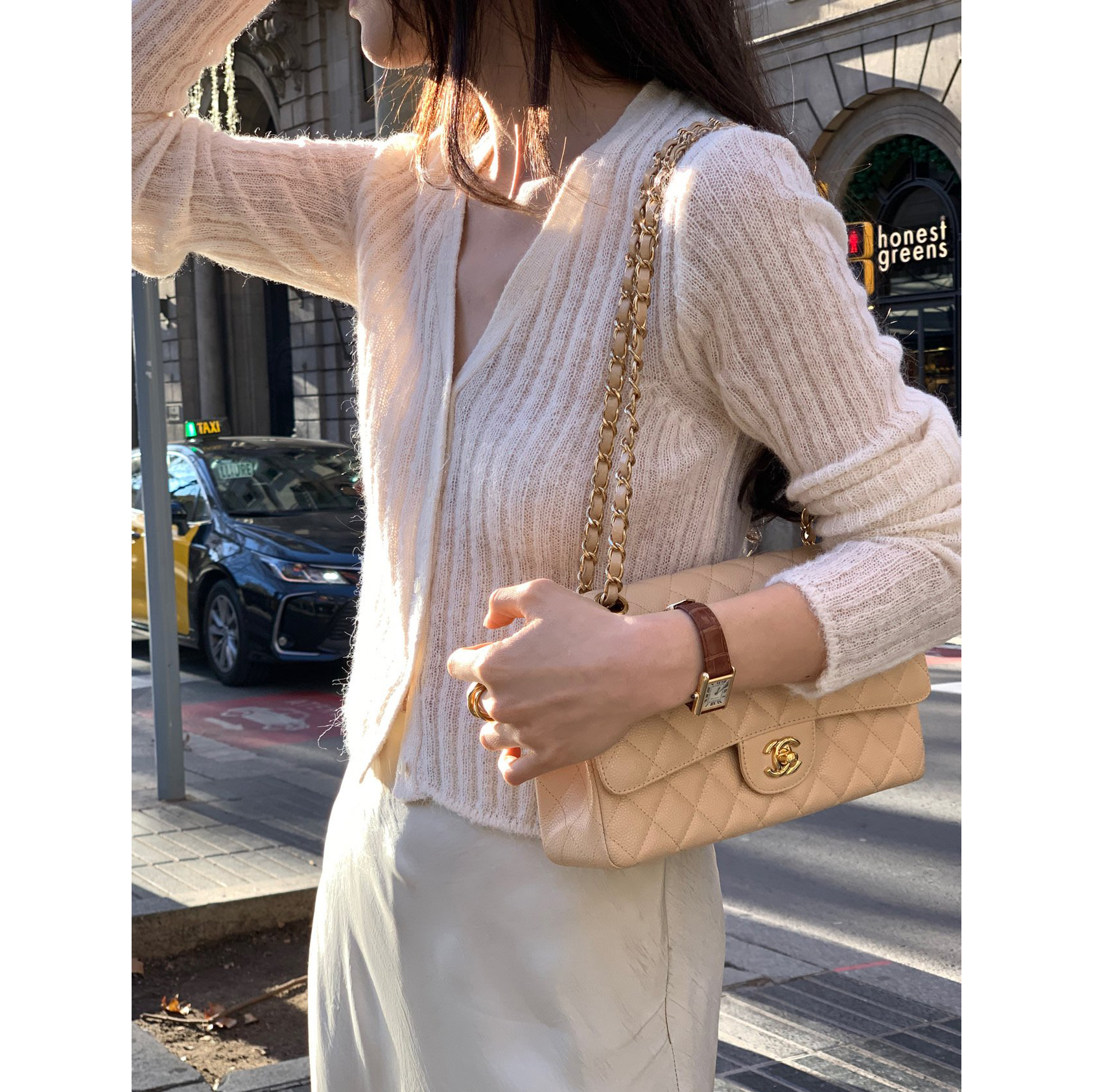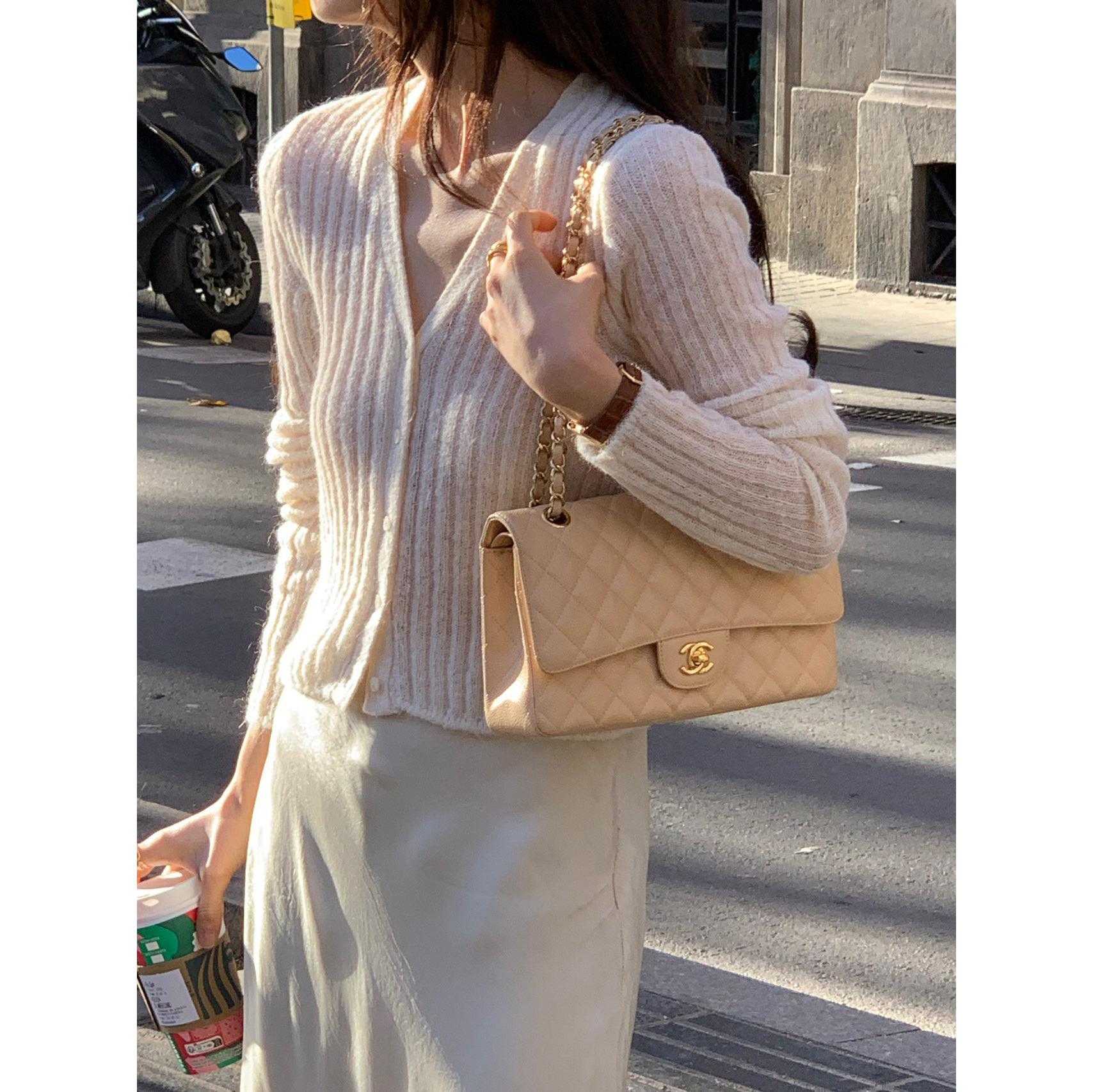 러뷰 골지 브이넥 슬림핏 모헤어 가디건