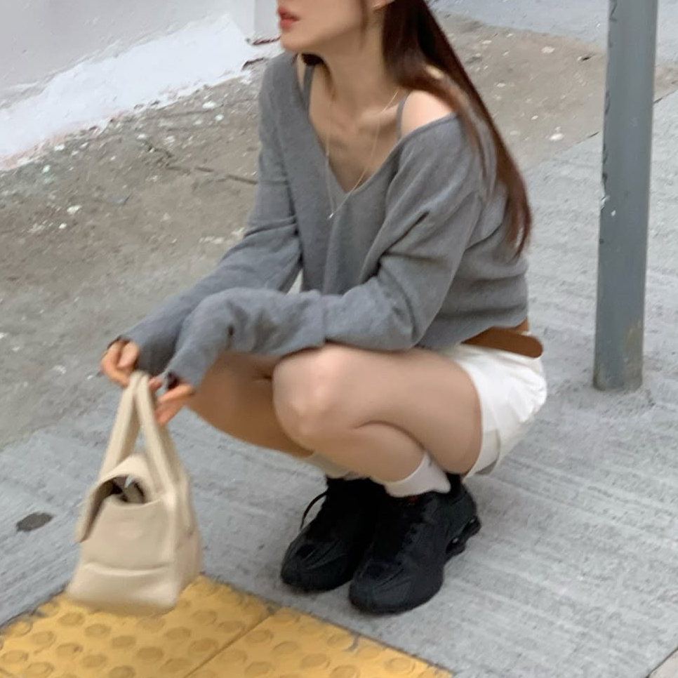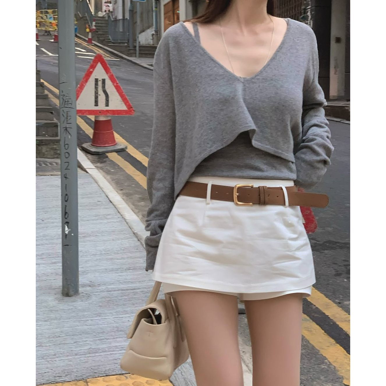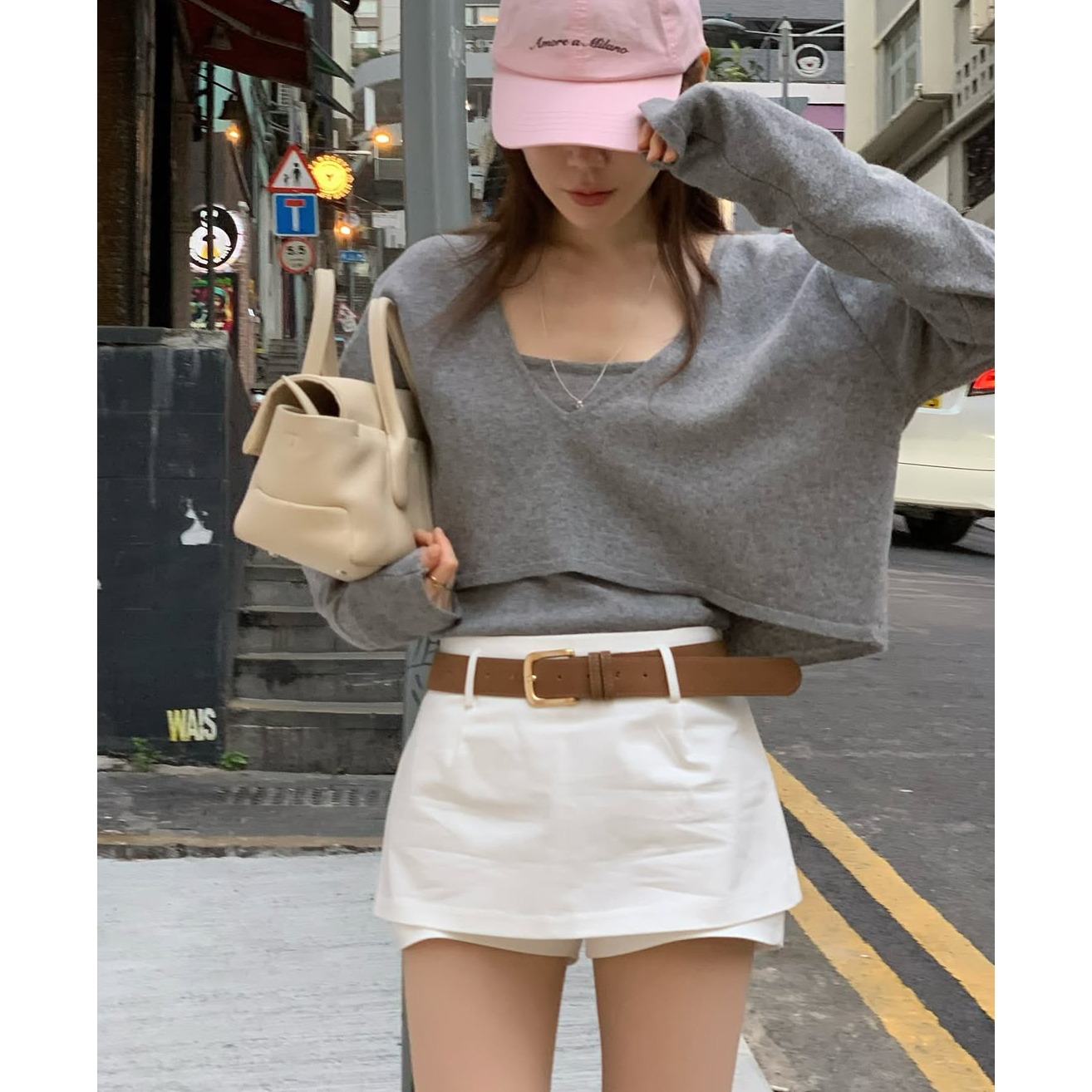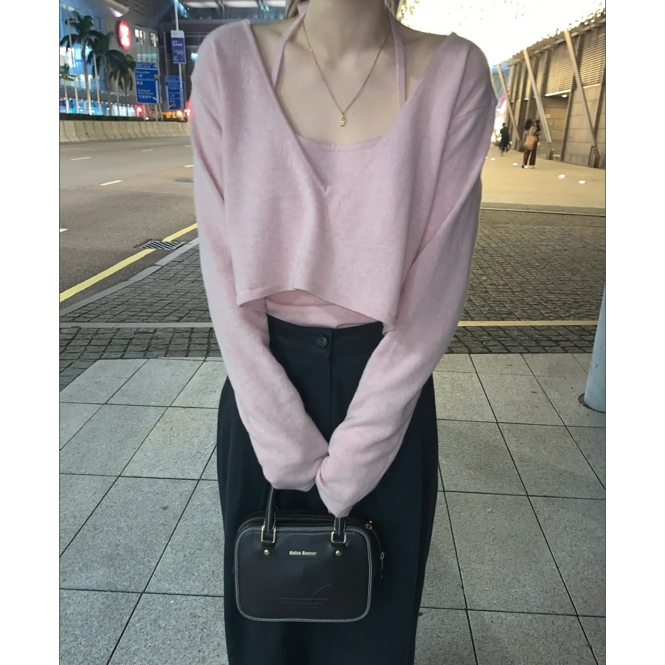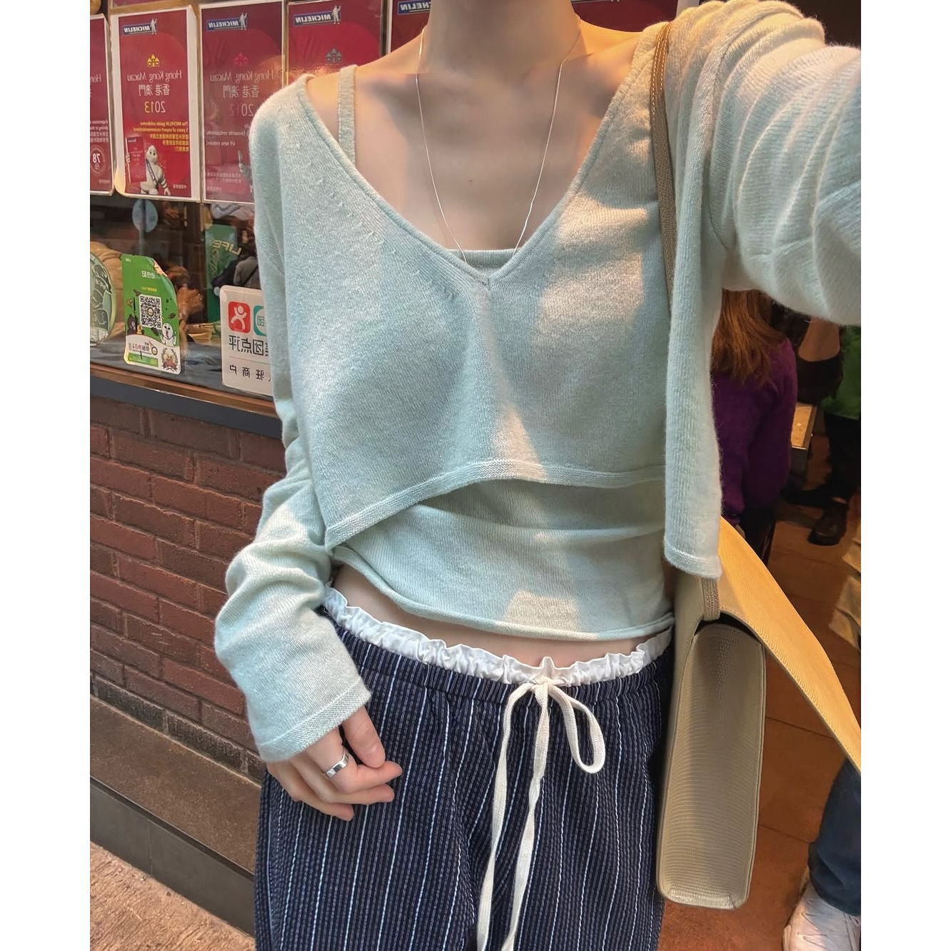 라우 딥 브이 크롭 니트 탑과 나시 세트