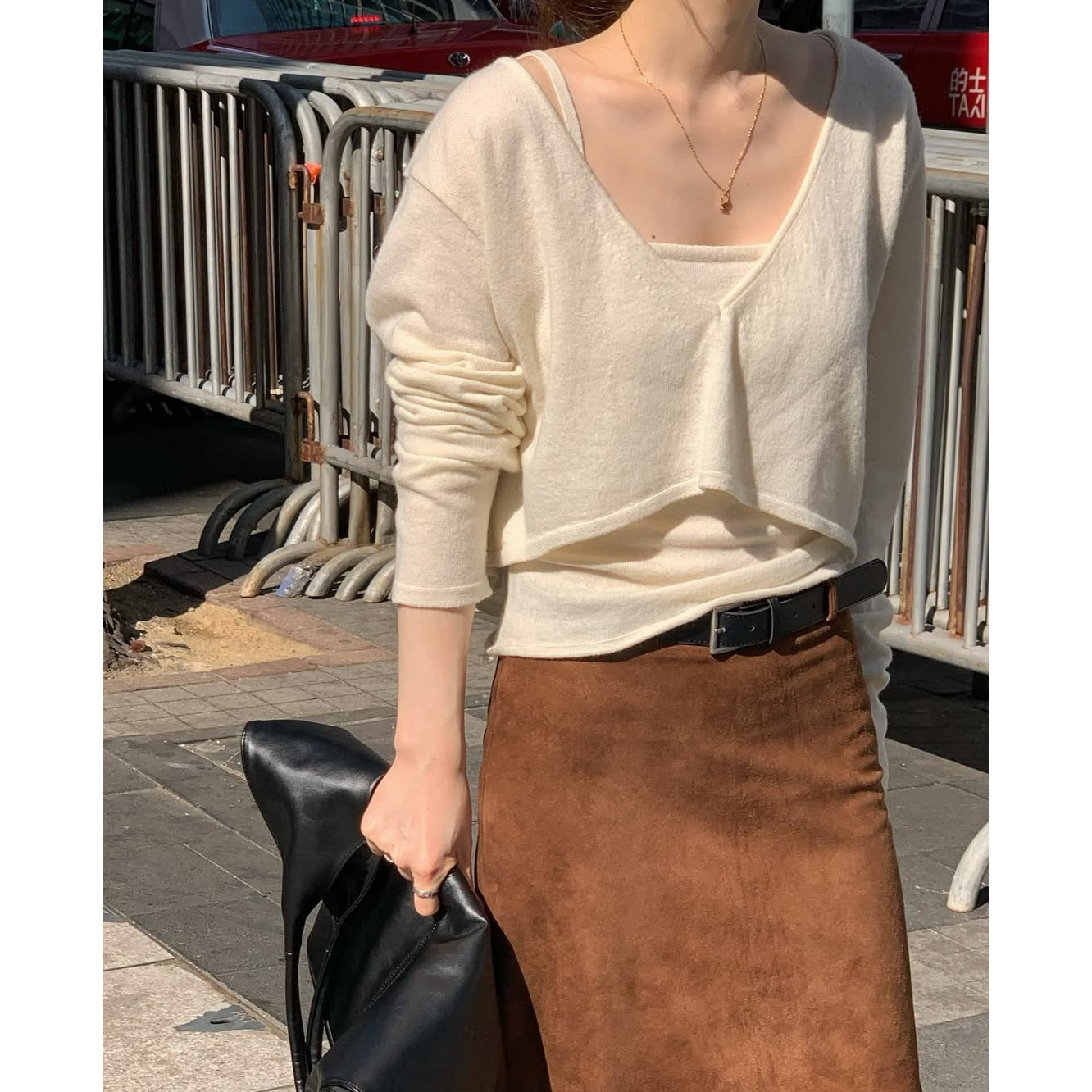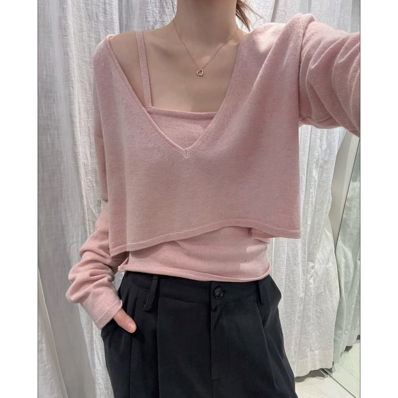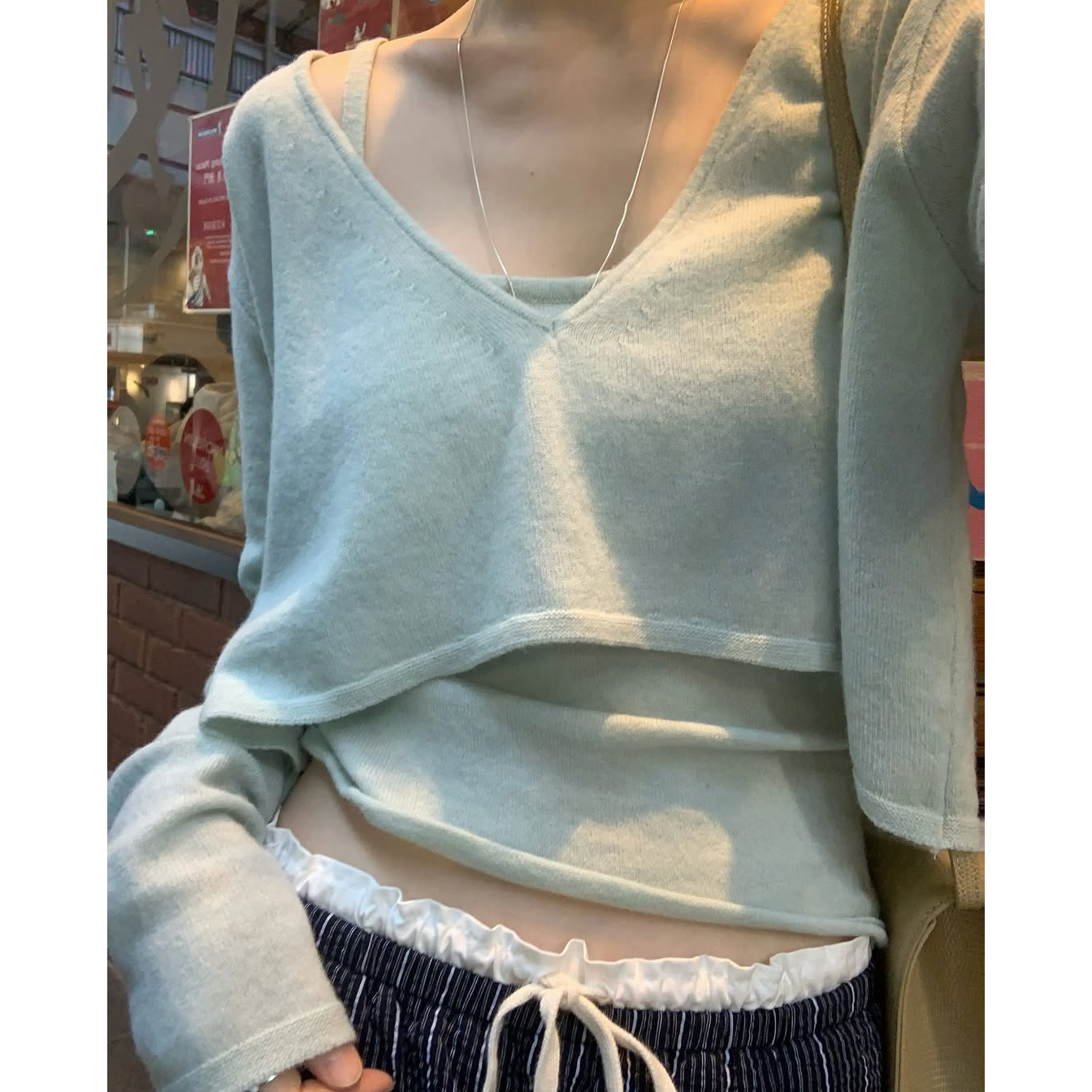 브이넥 크롭탑 니트와 나시니트가 세트인 상품입니다