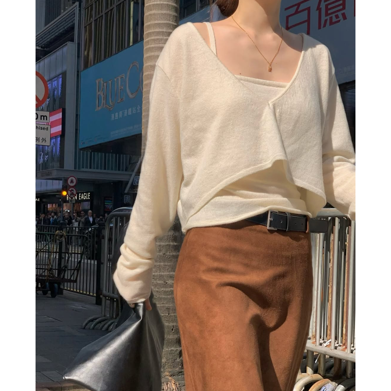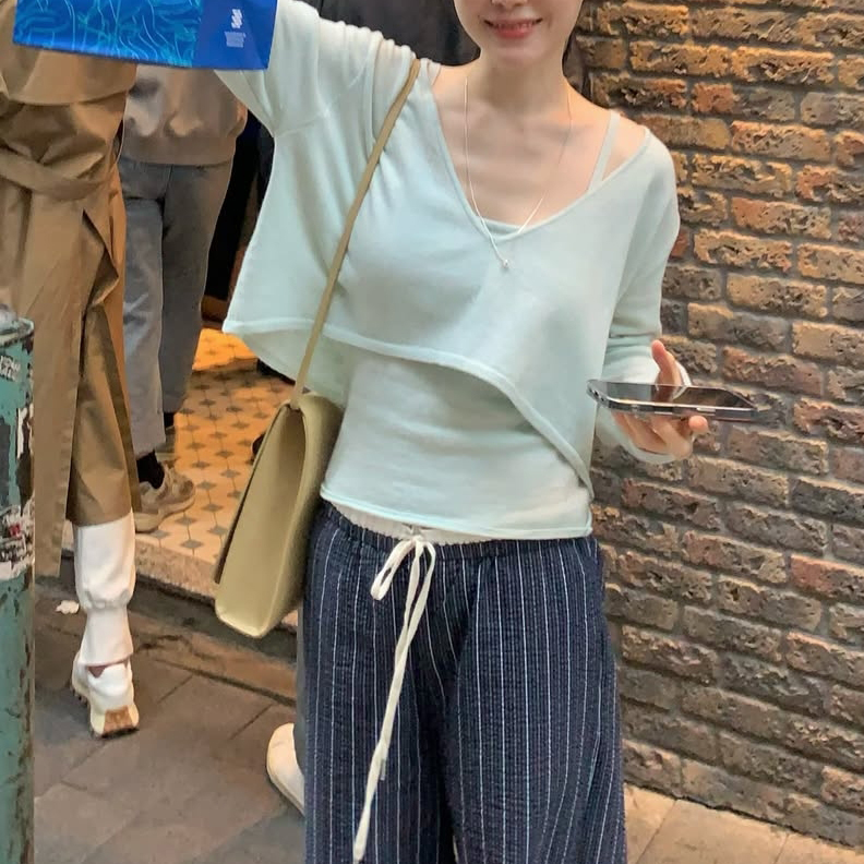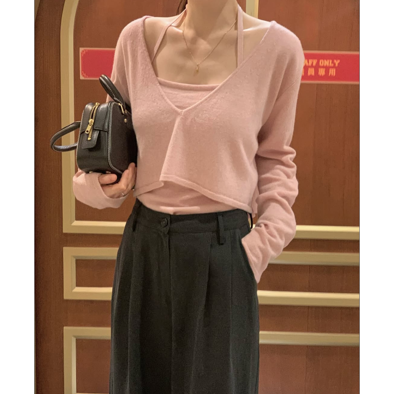 브이넥 크롭탑 니트와 나시니트가 세트인 상품입니다