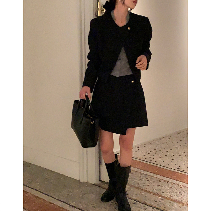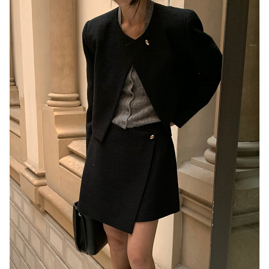 바로발송 미니멀 랩 미니 스커트 셋업가능