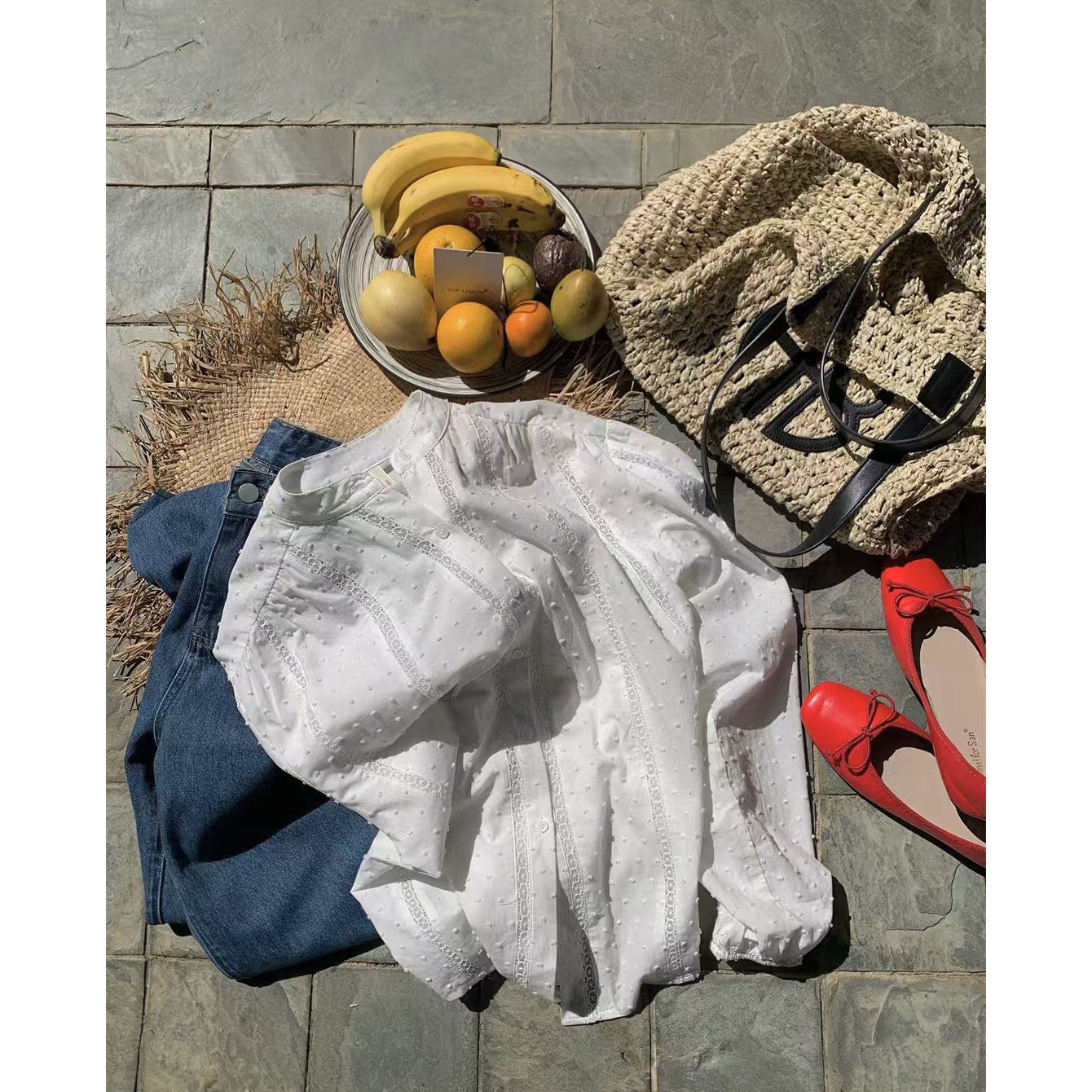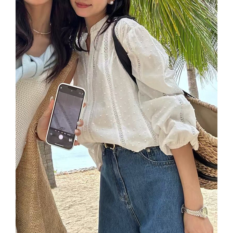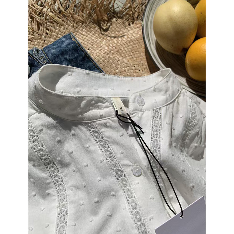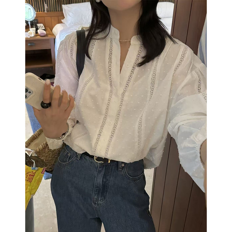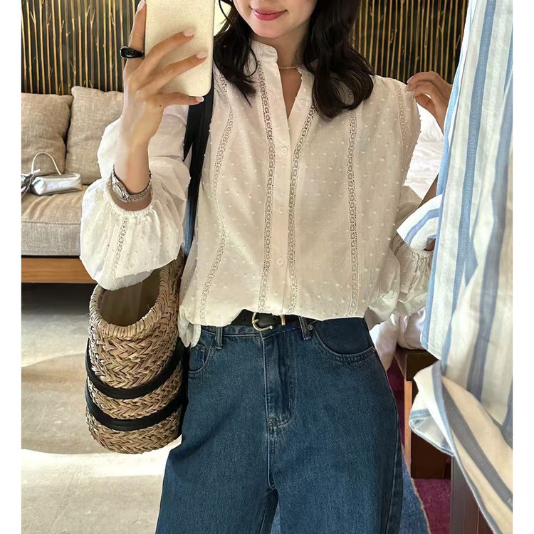 메아리 펀칭 레이스 노카라 화이트 블라우스