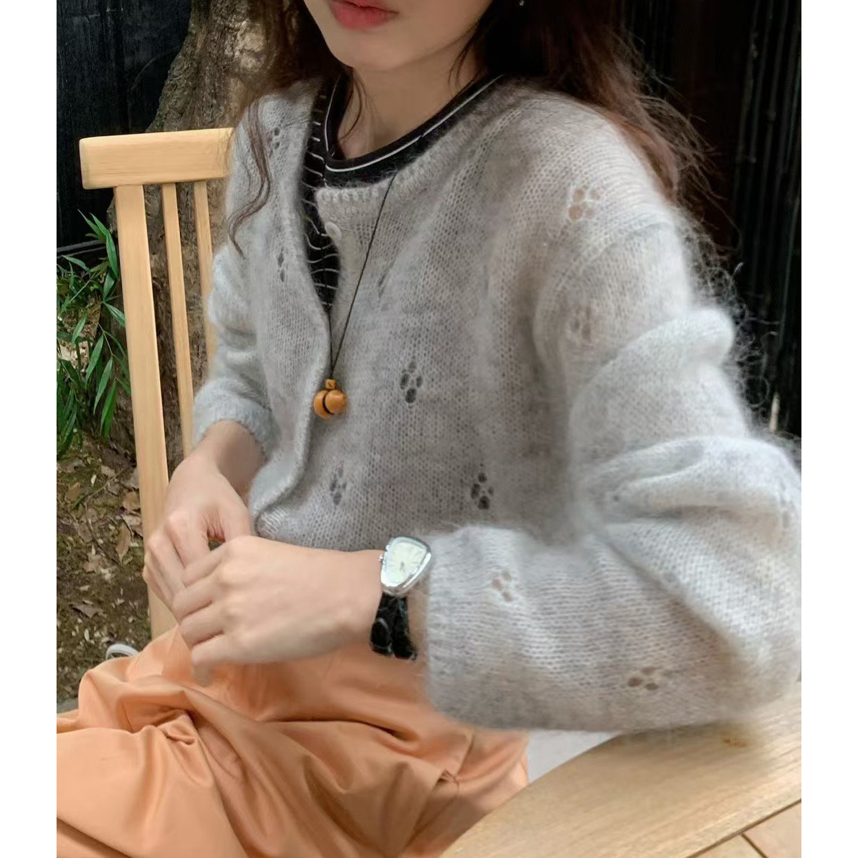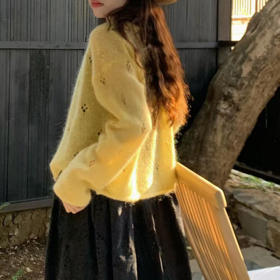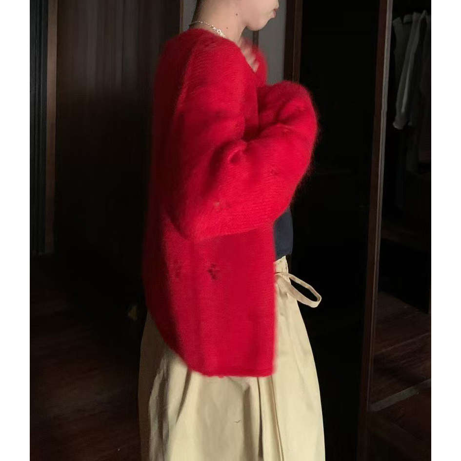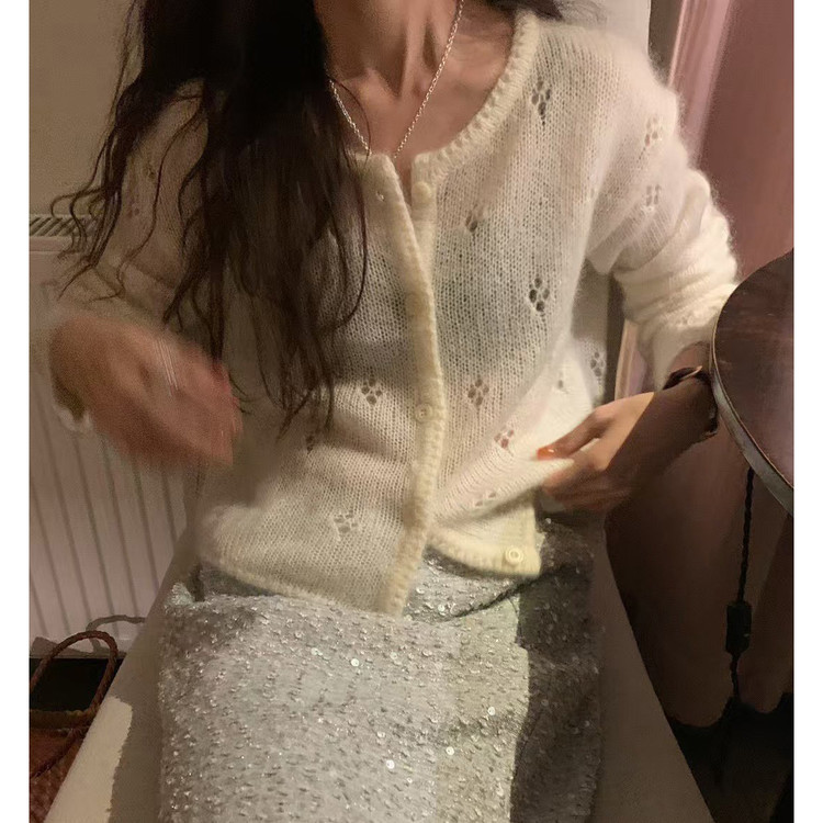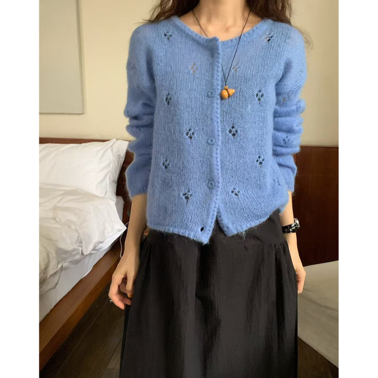 바로발송 뉴어 열매 펀칭 모헤어 가디건