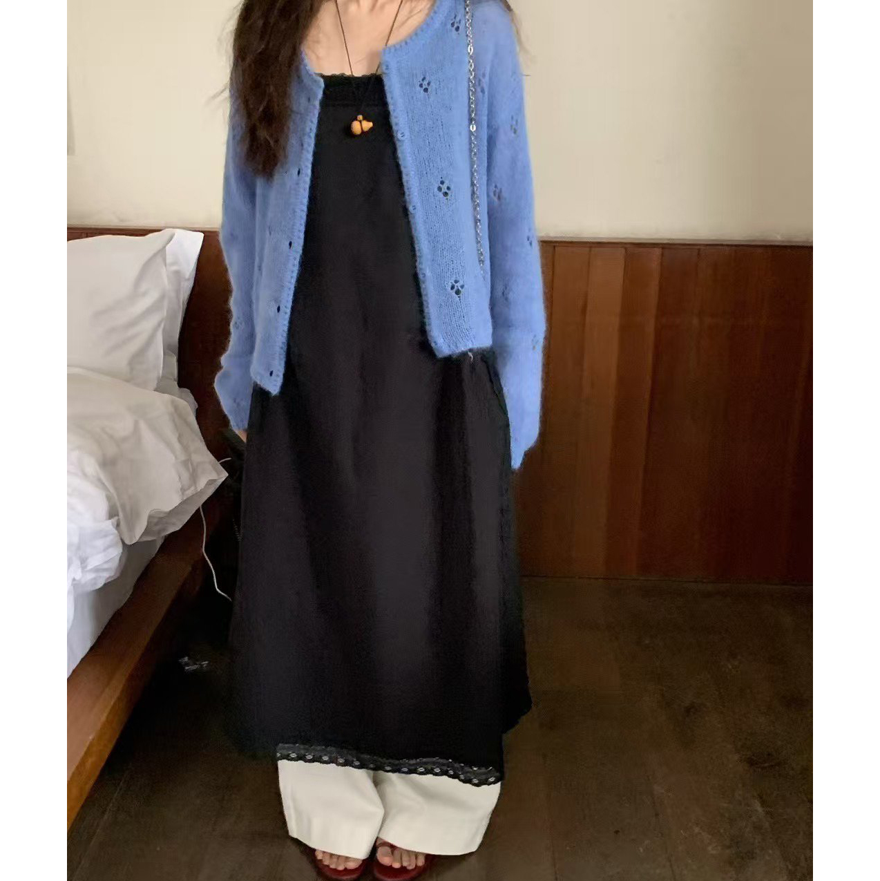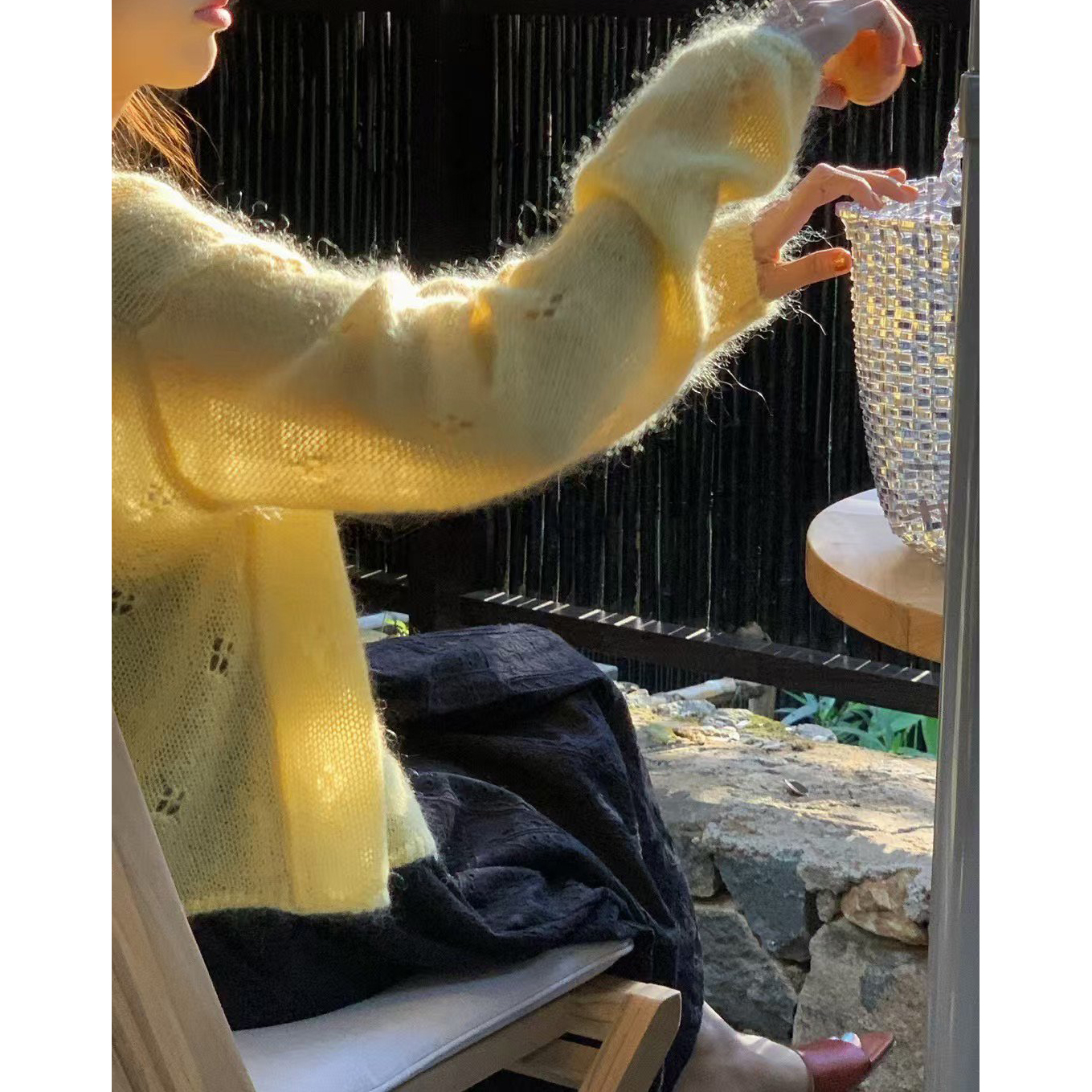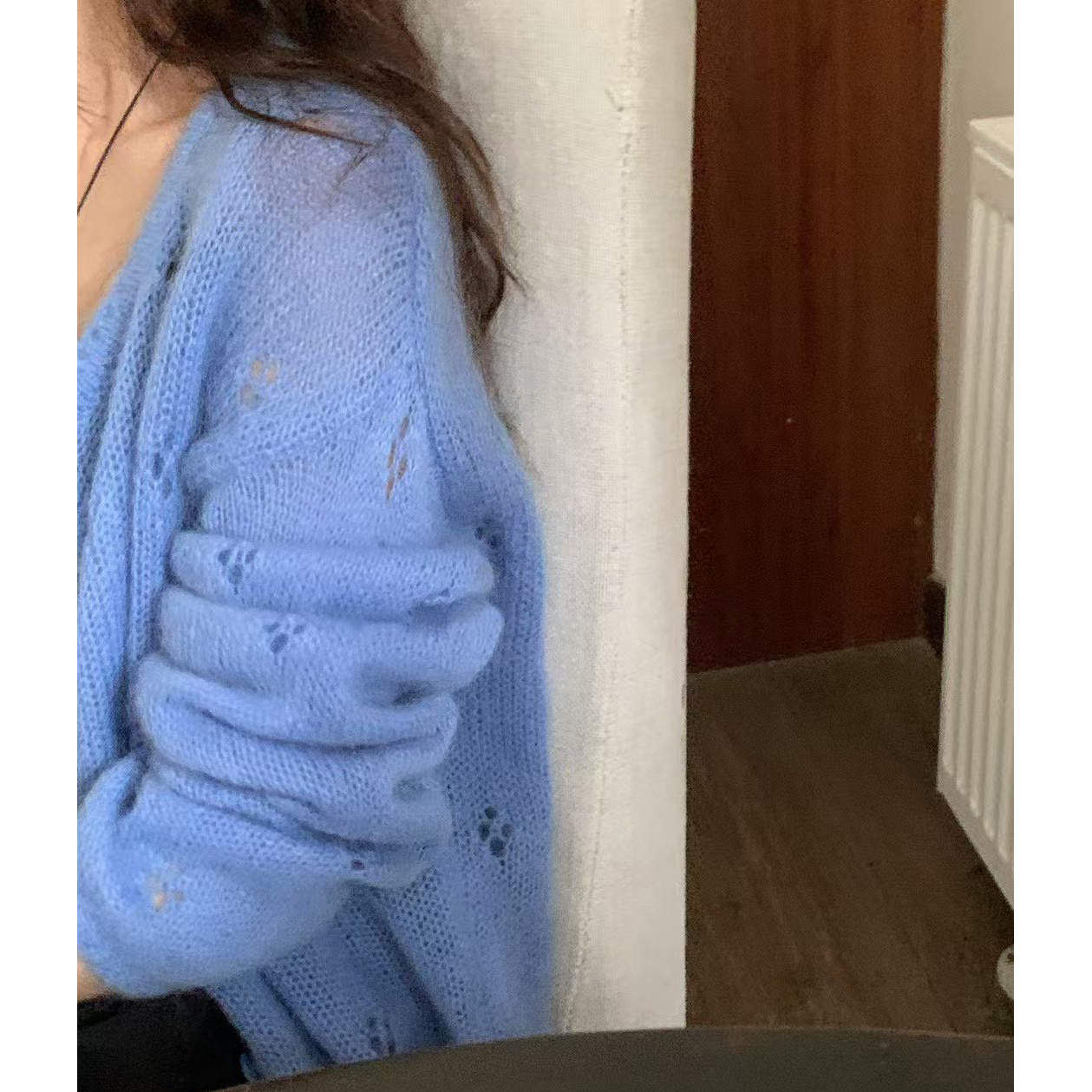 바로발송 뉴어 열매 펀칭 모헤어 가디건