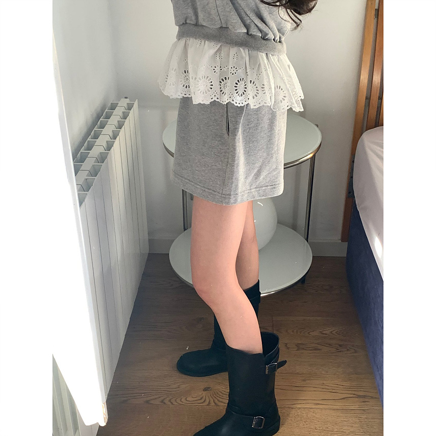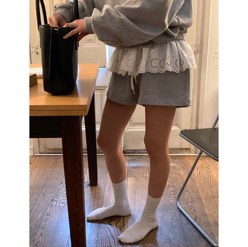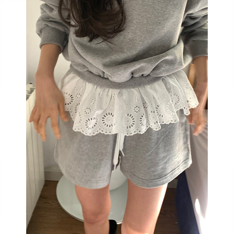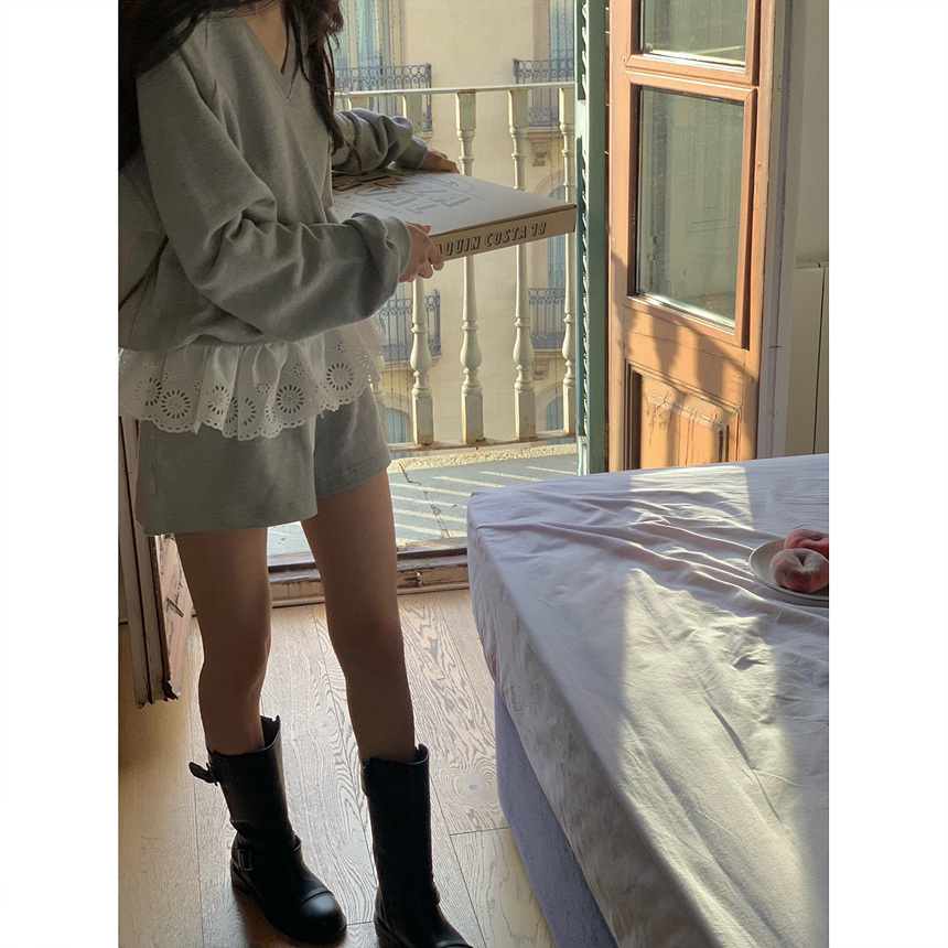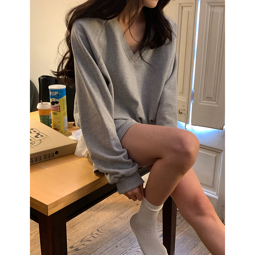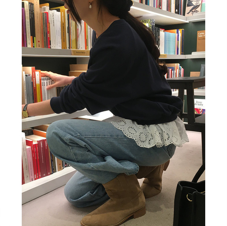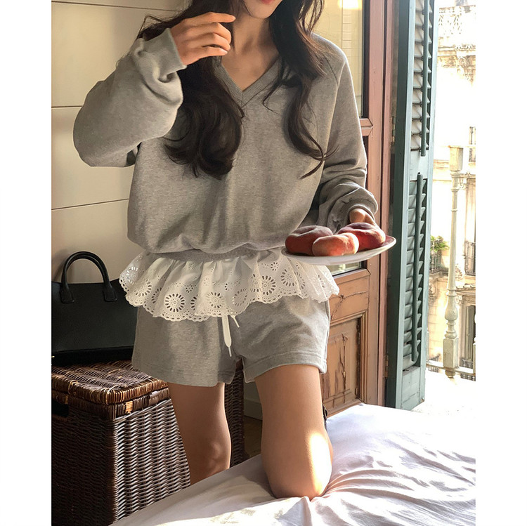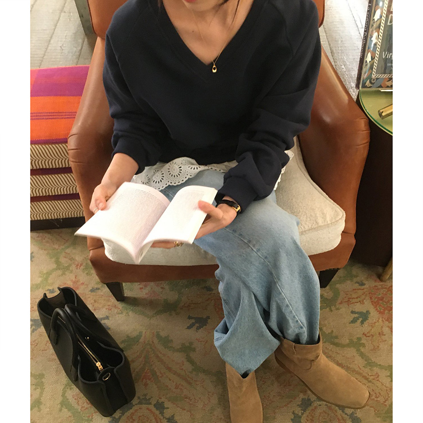 올오버 코어 맨투맨 브이넥 펀칭 프릴 레이스 밑단