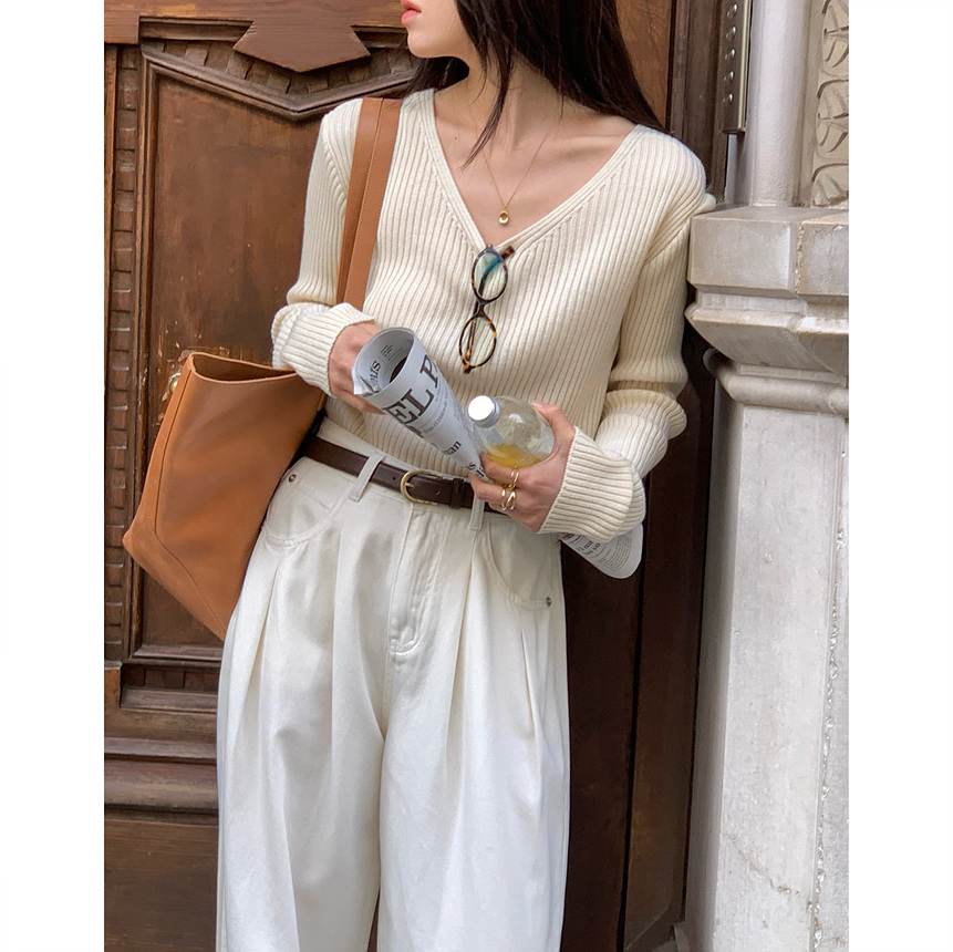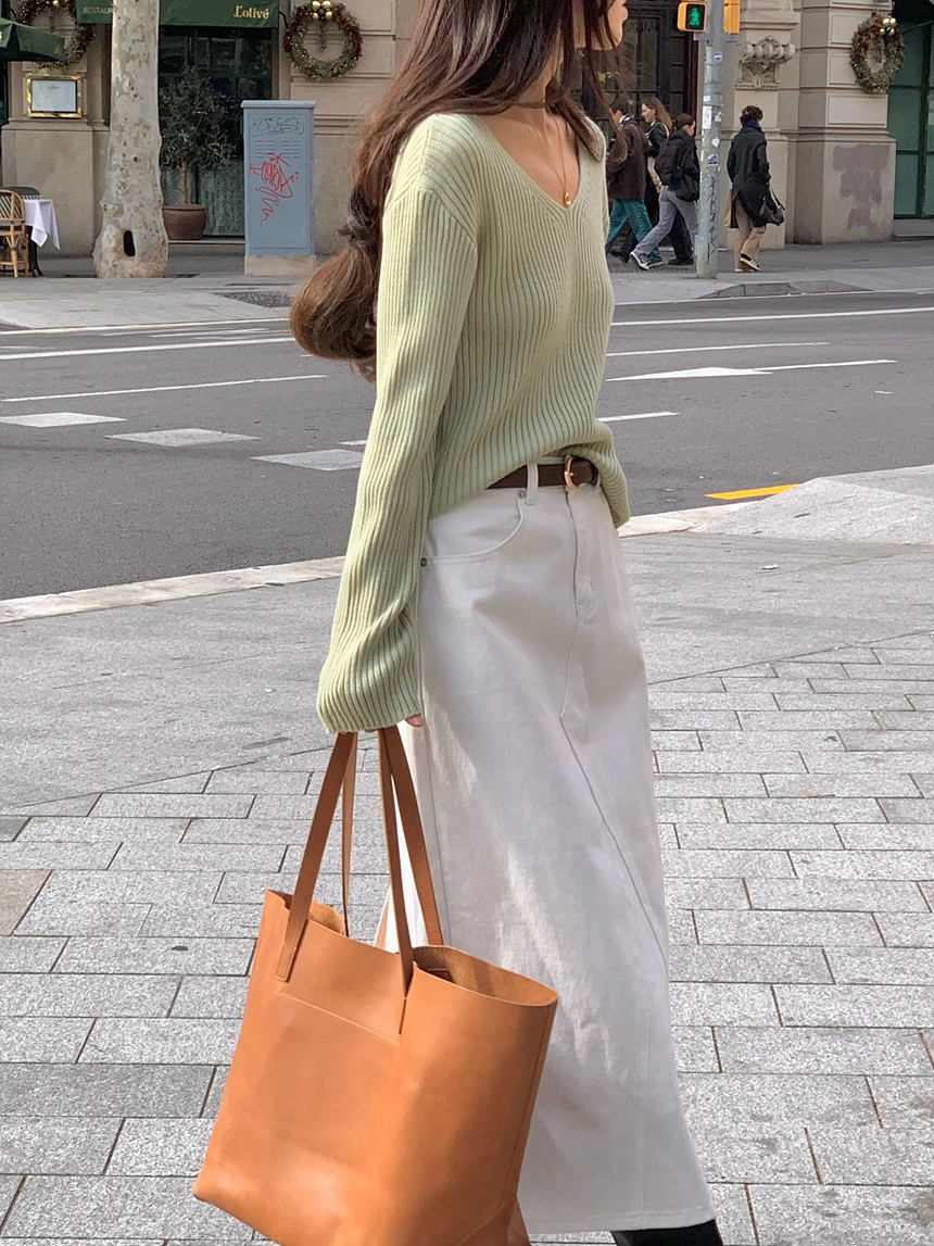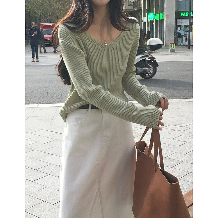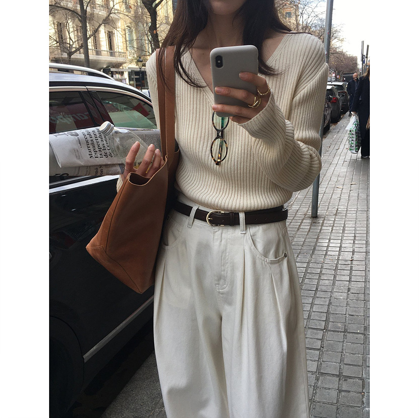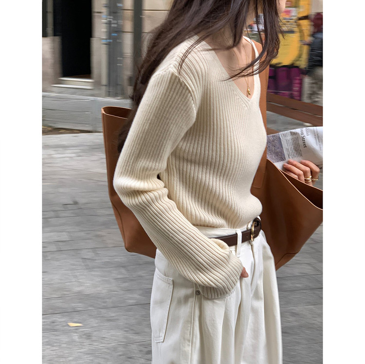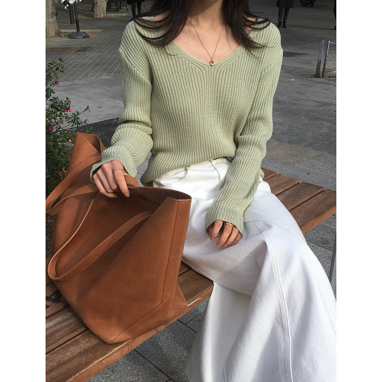 바로발송 가을 골지 브이넥 니트