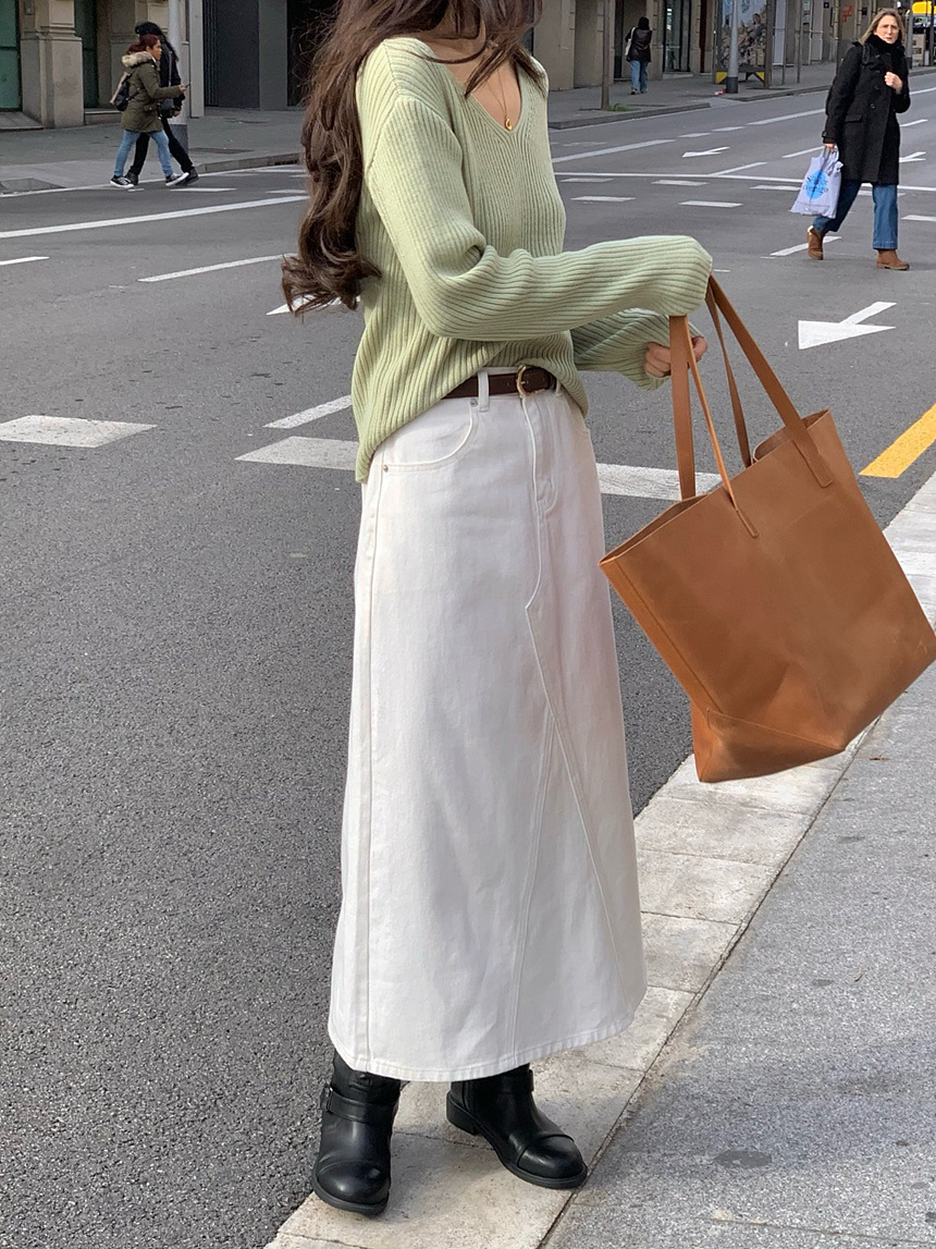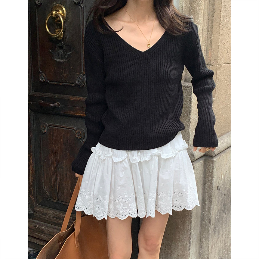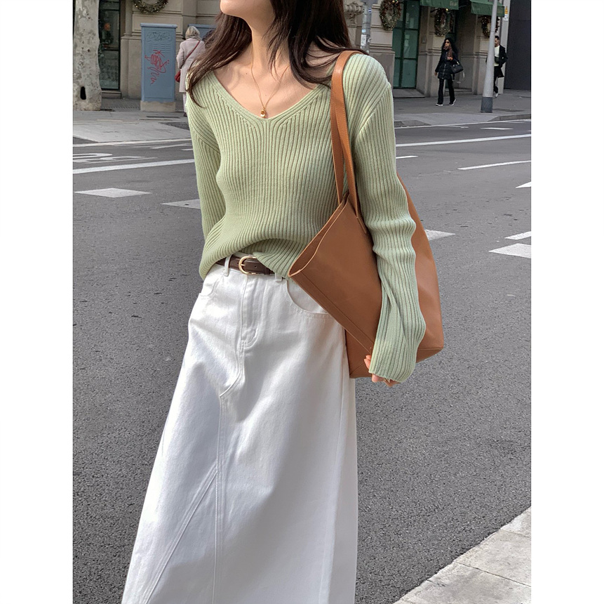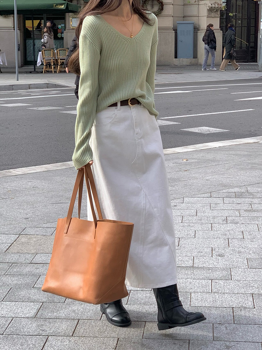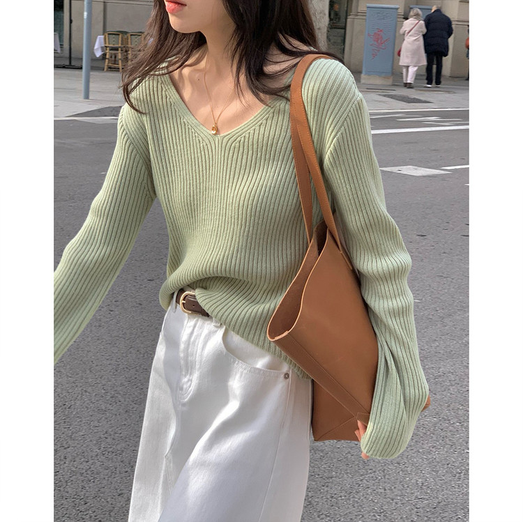 바로발송 가을 골지 브이넥 니트