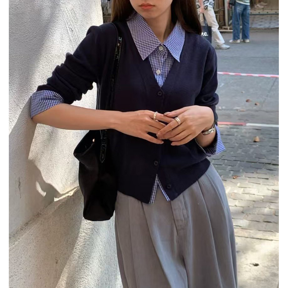 바로발송 포유 셔츠 레이어드 브이넥 가디건