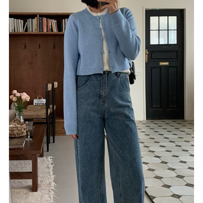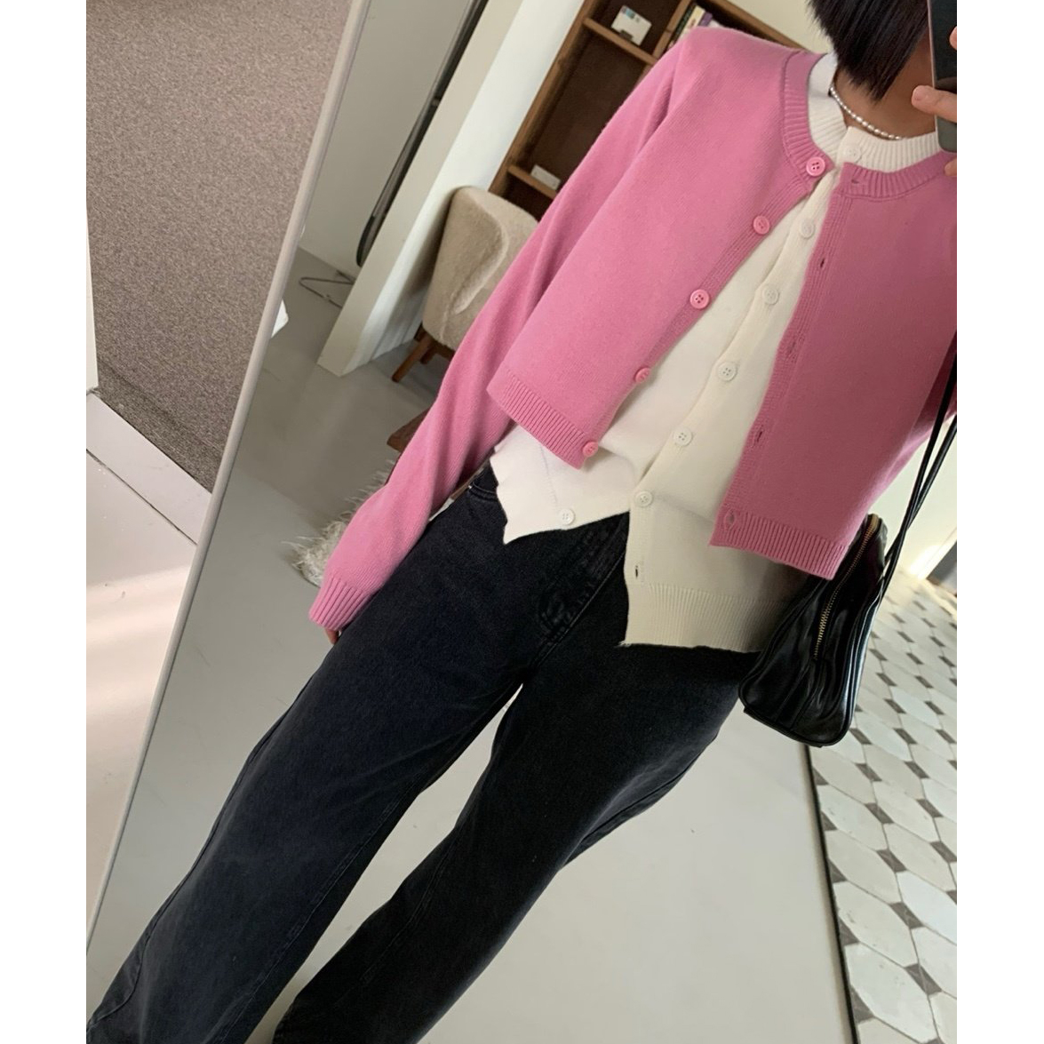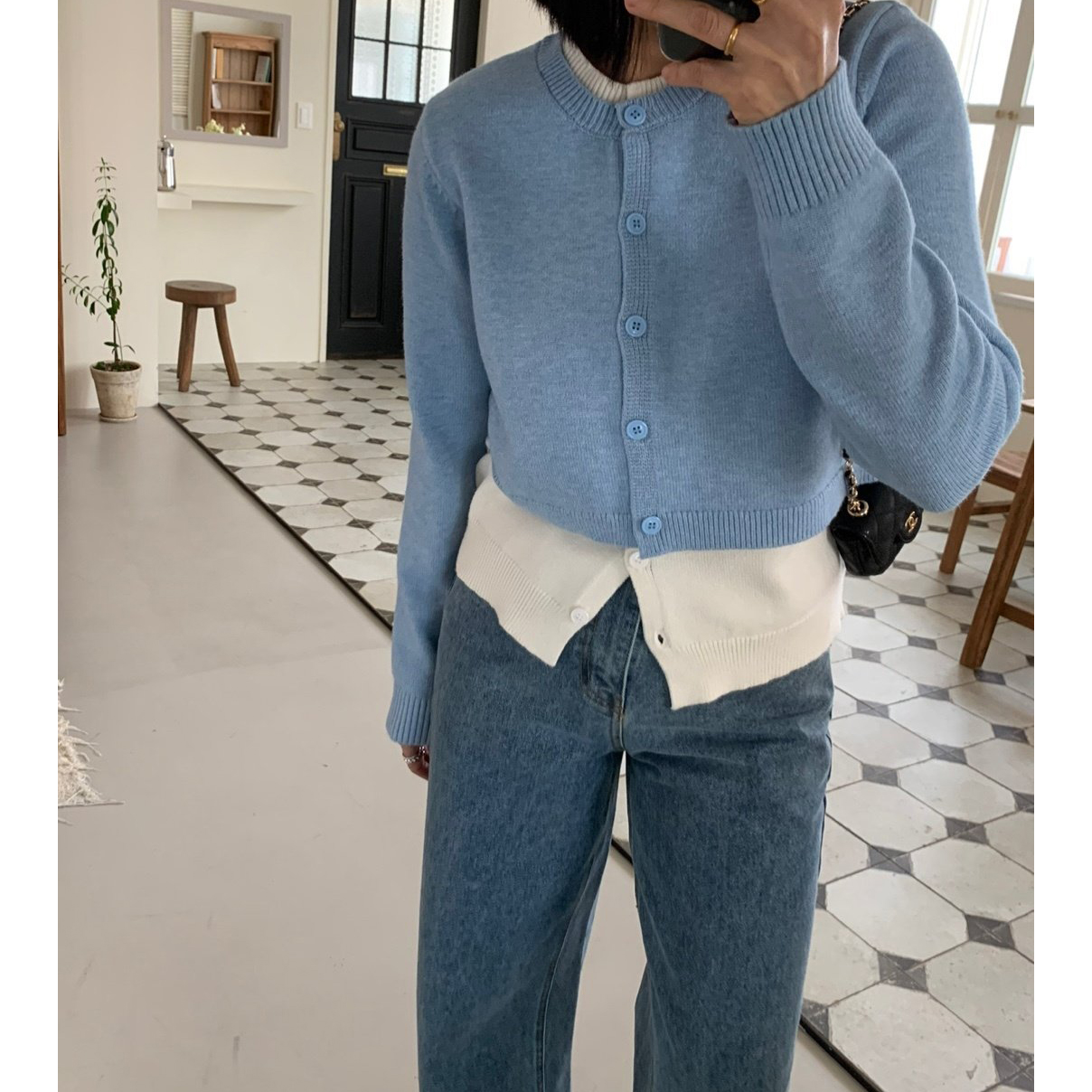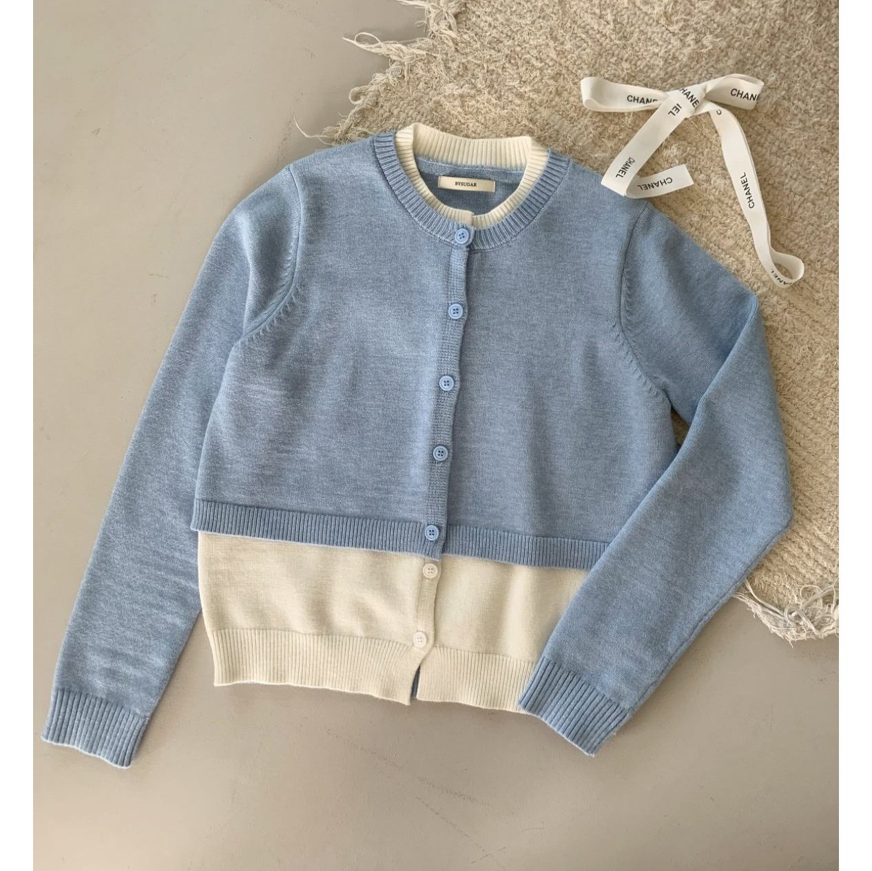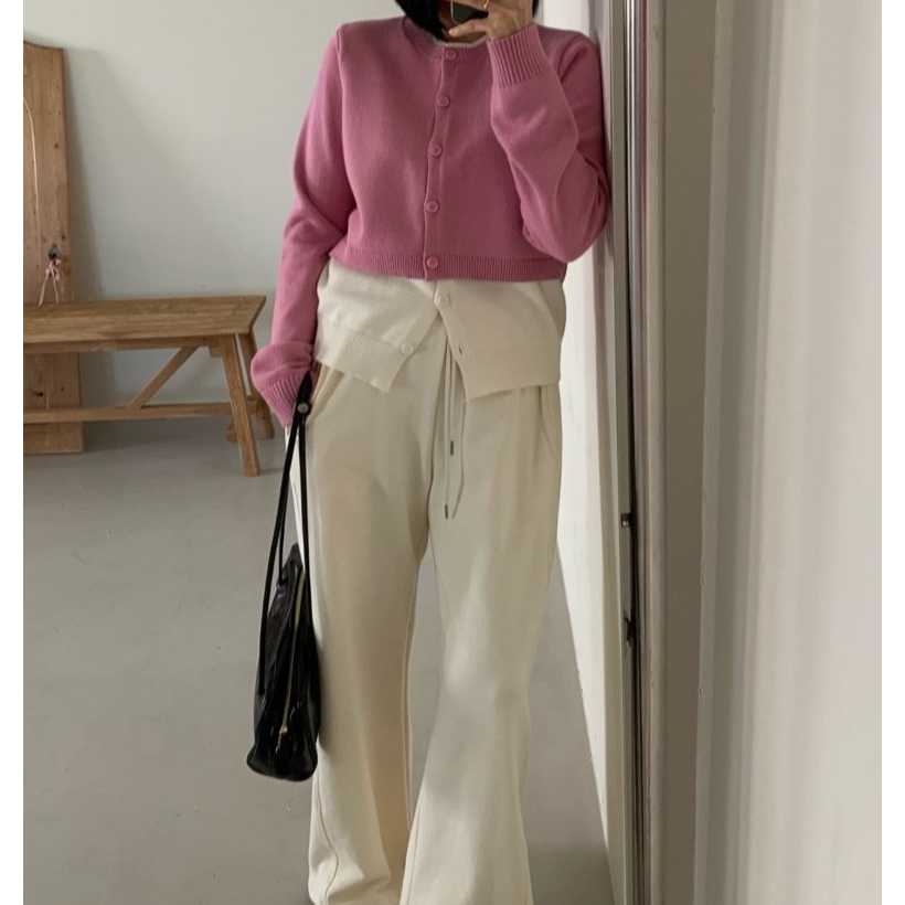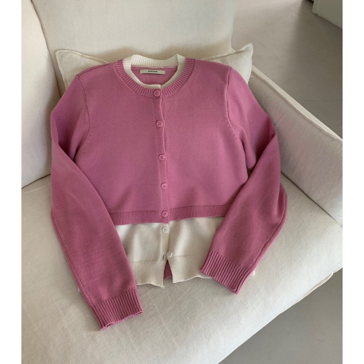애라 배색 더블 가디건 니트