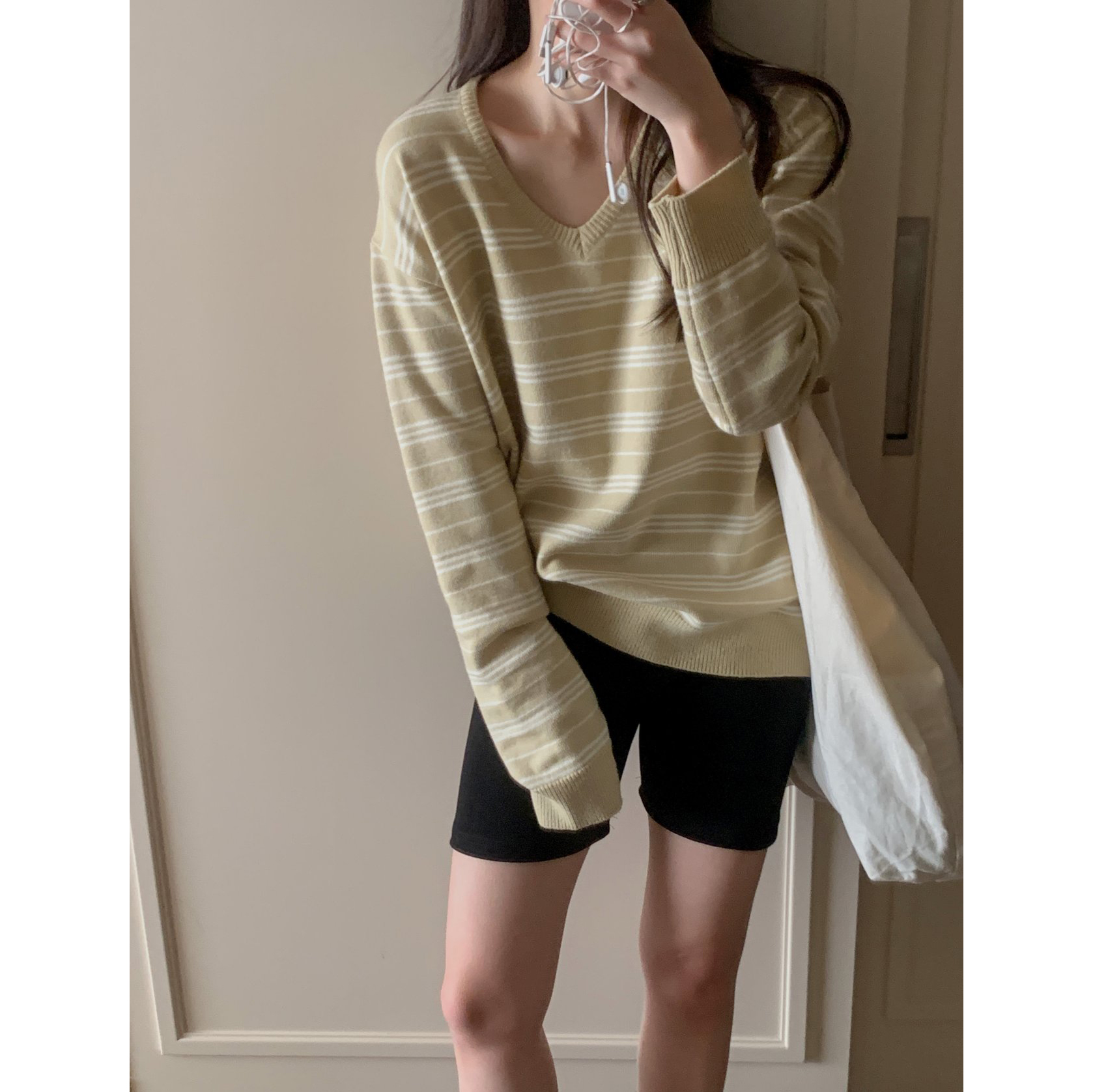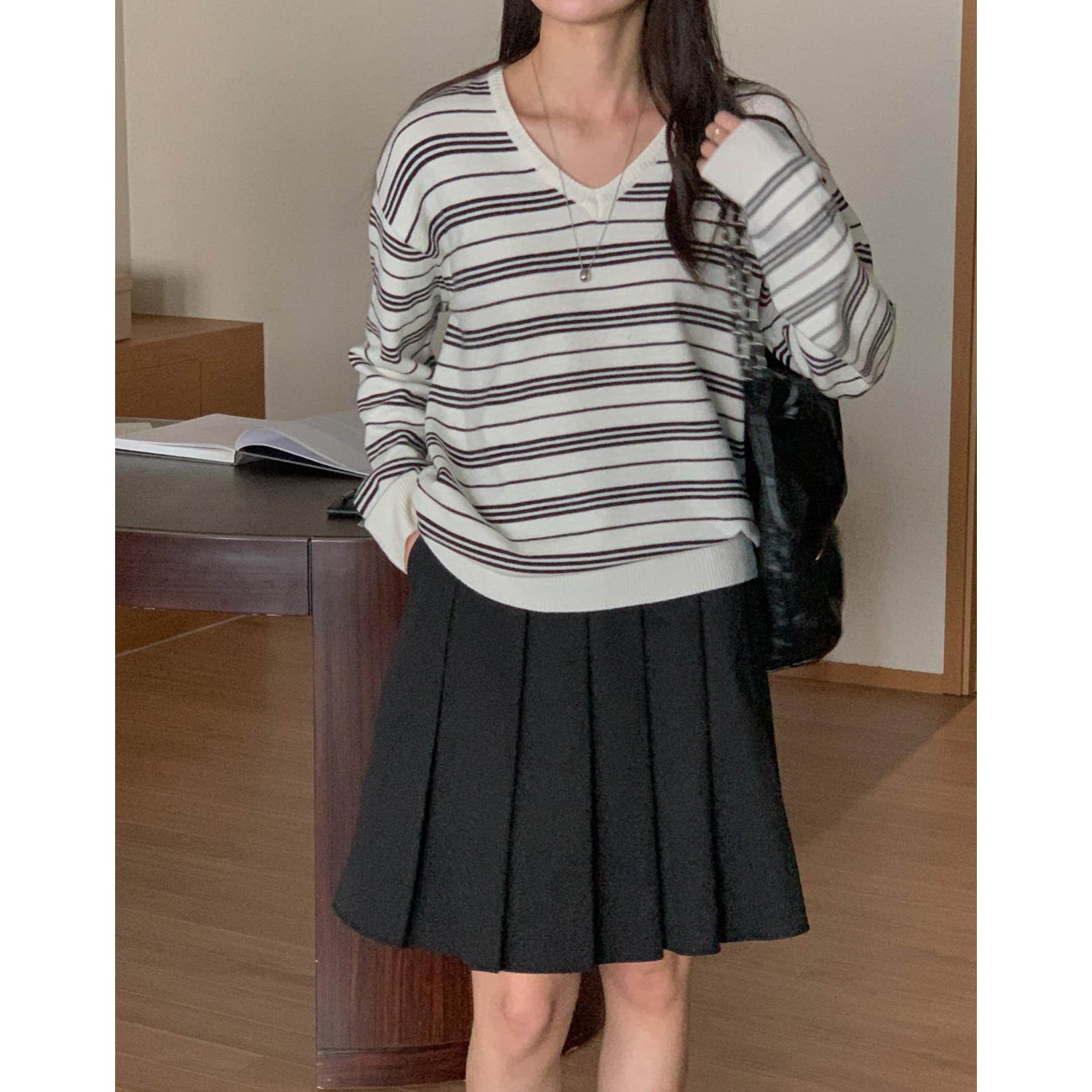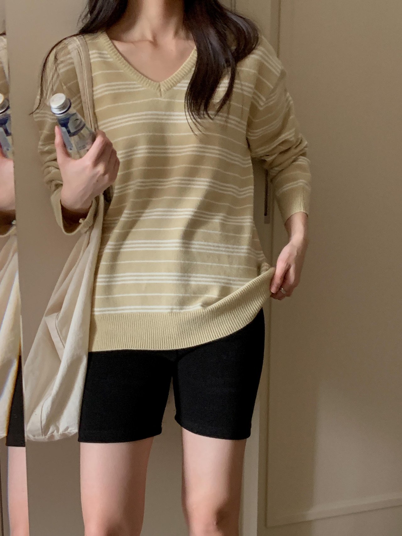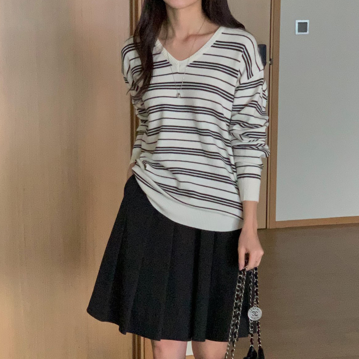 버론 스트라이프 브이넥 단가라 니트