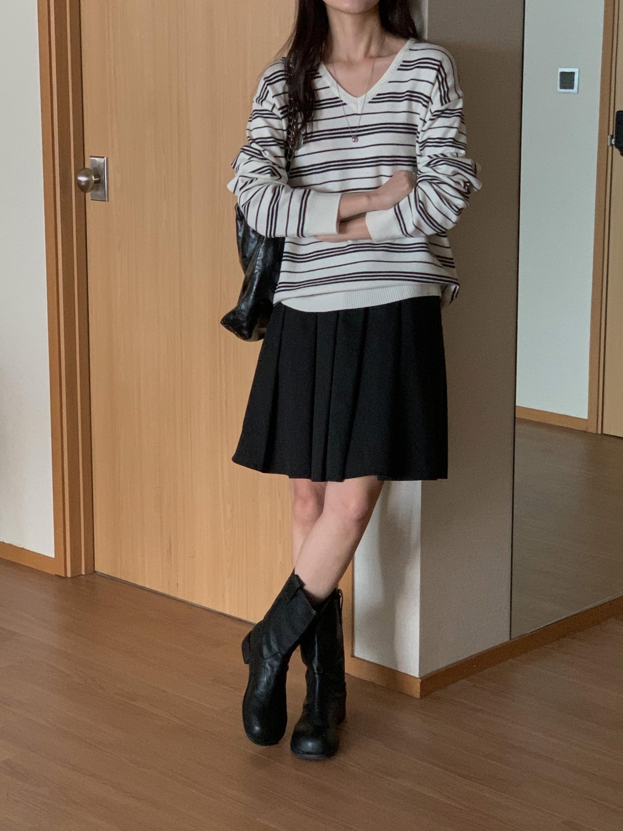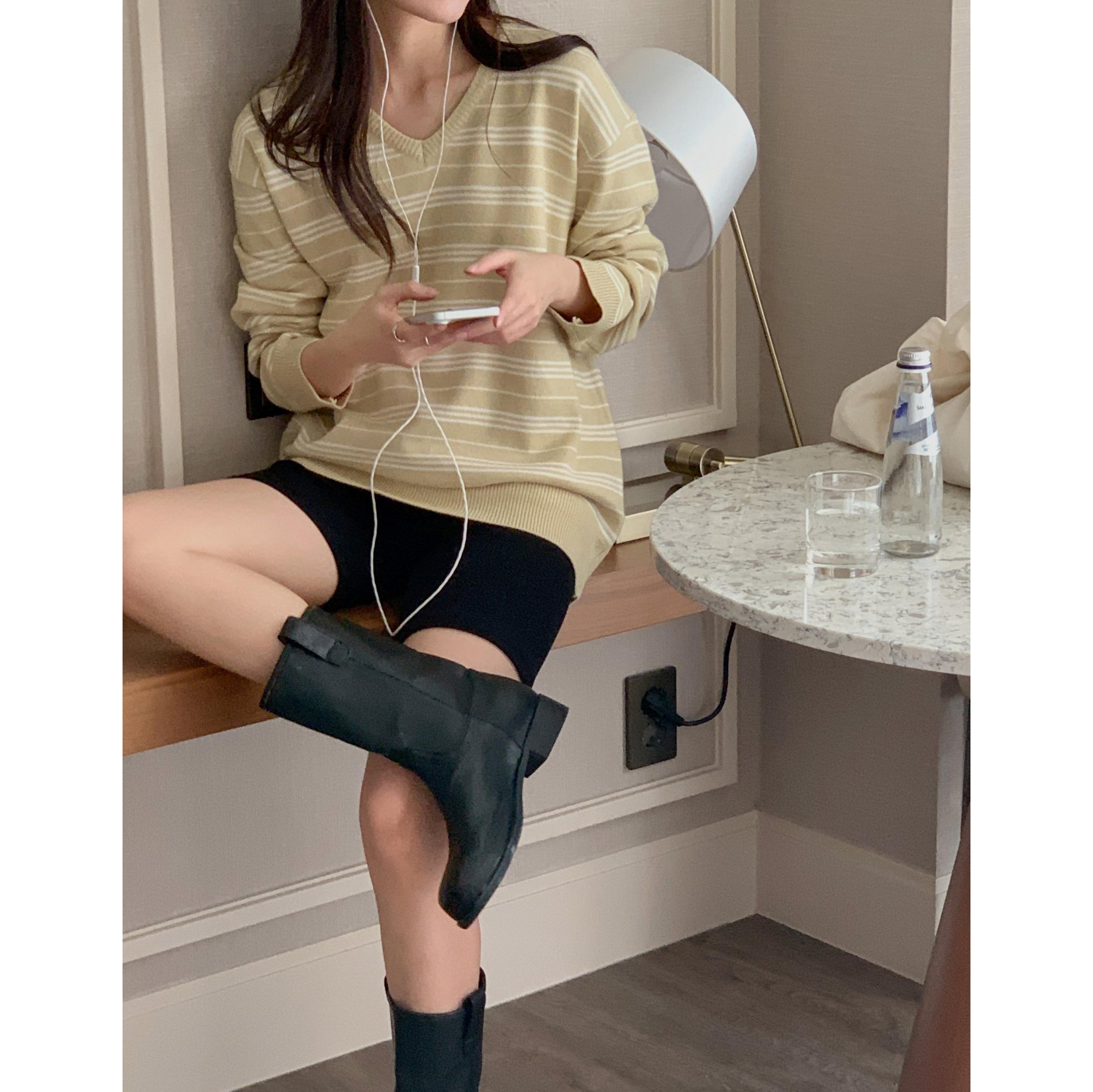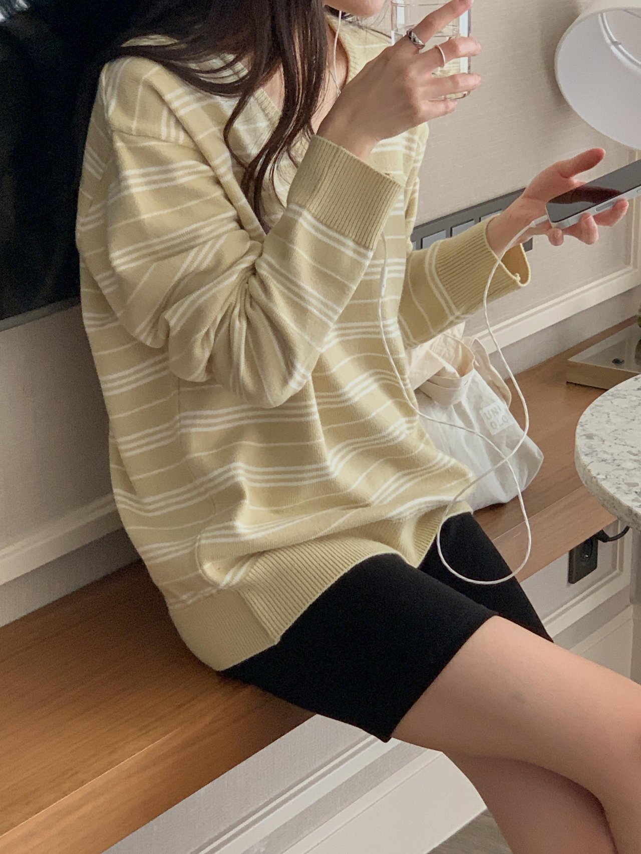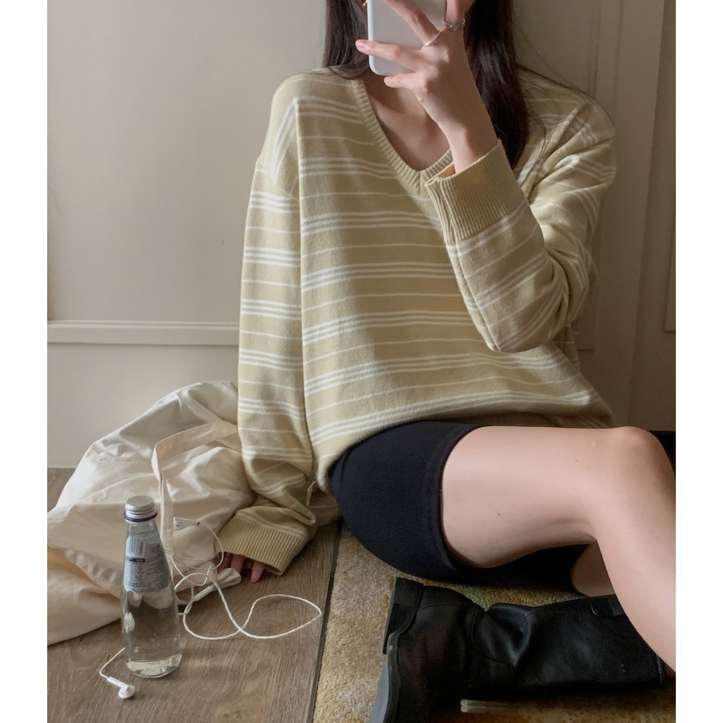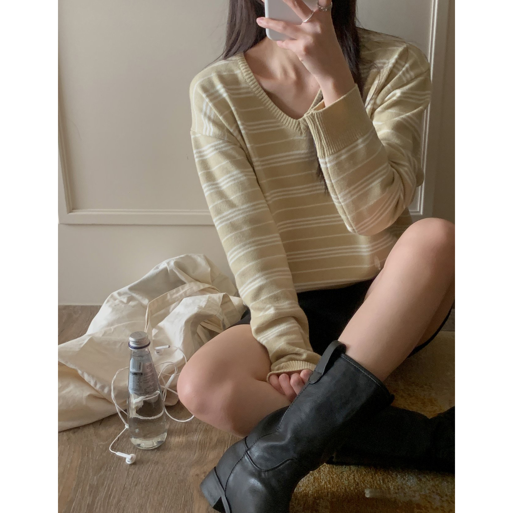 버론 스트라이프 브이넥 단가라 니트