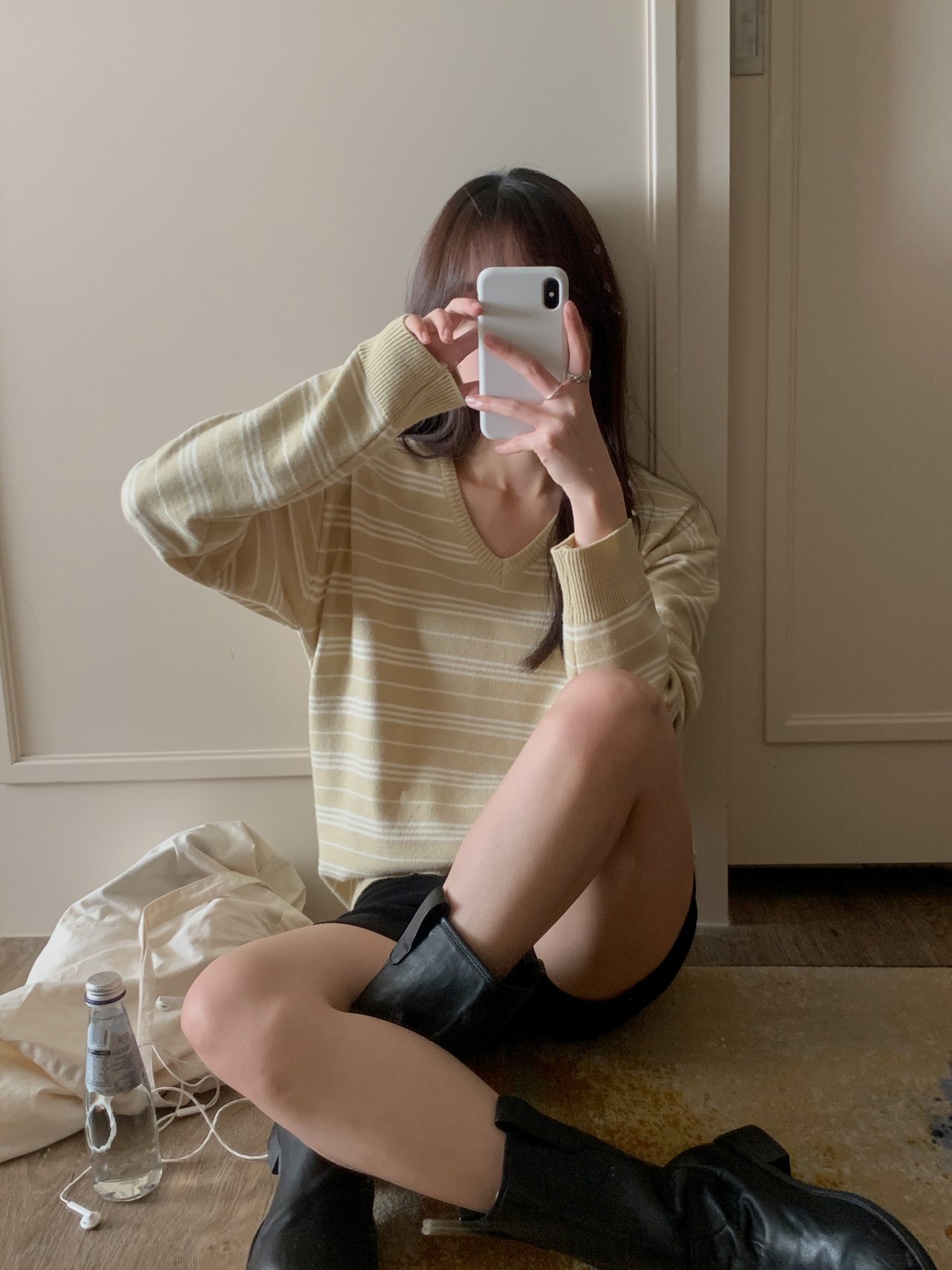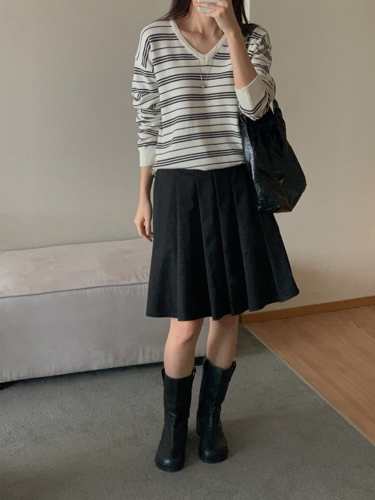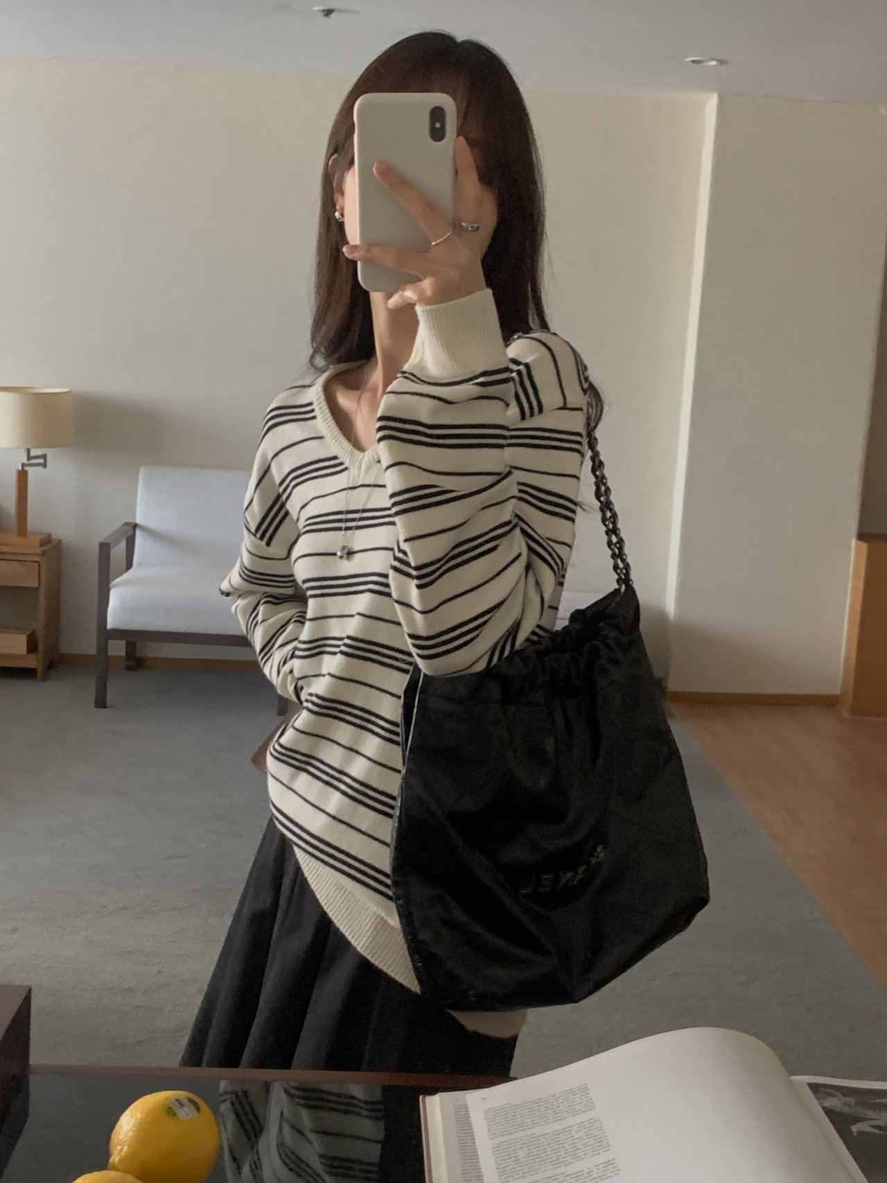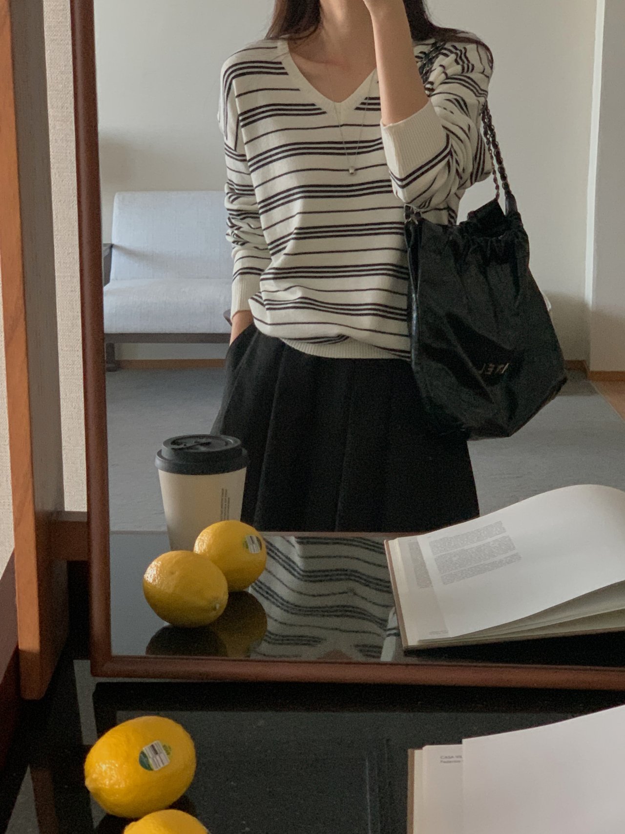 버론 스트라이프 브이넥 단가라 니트