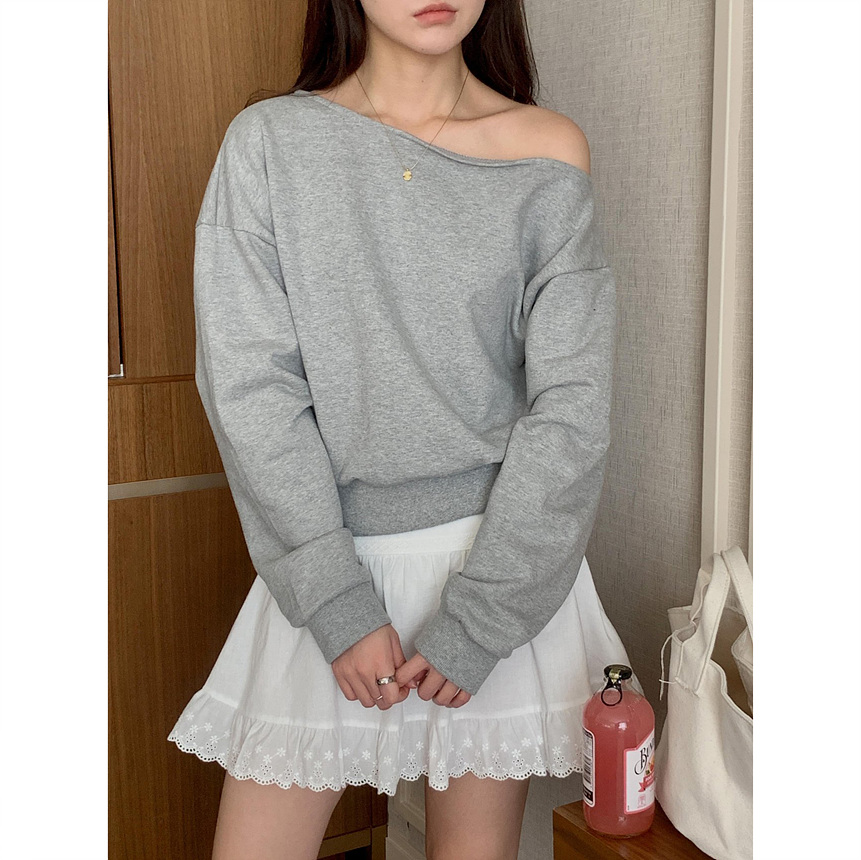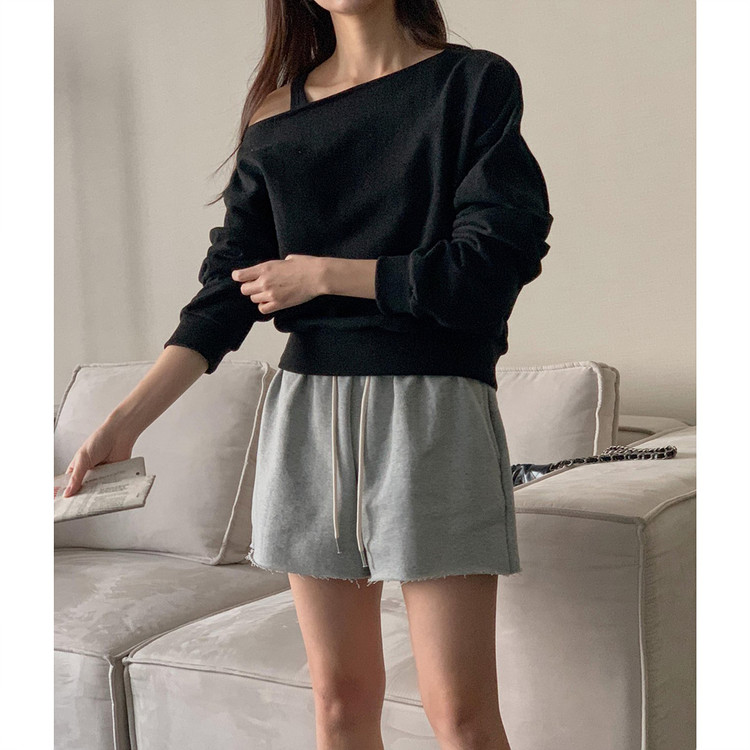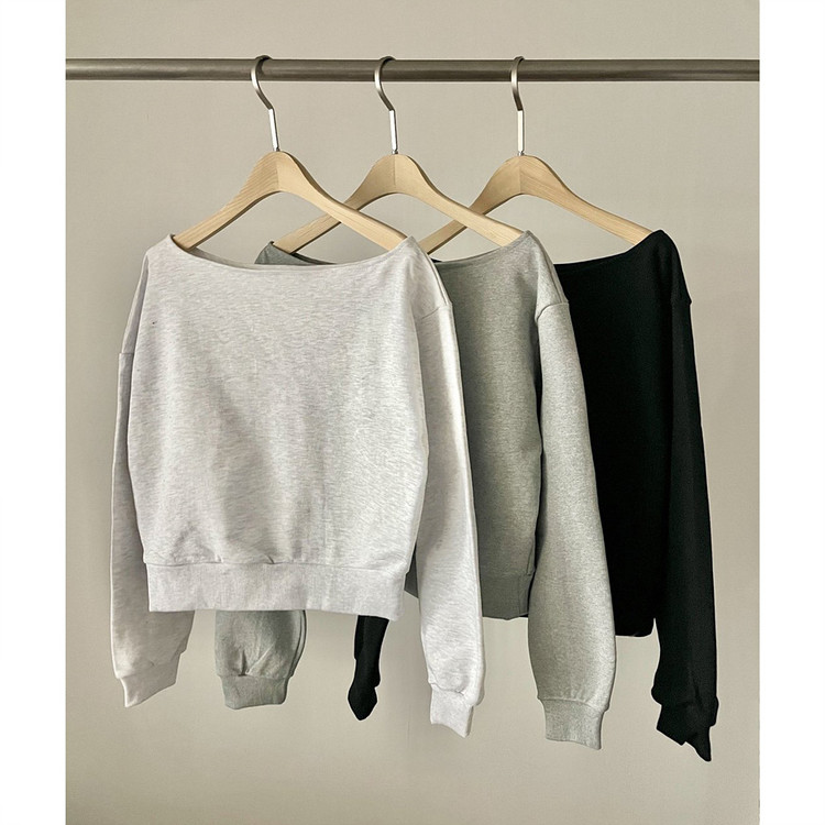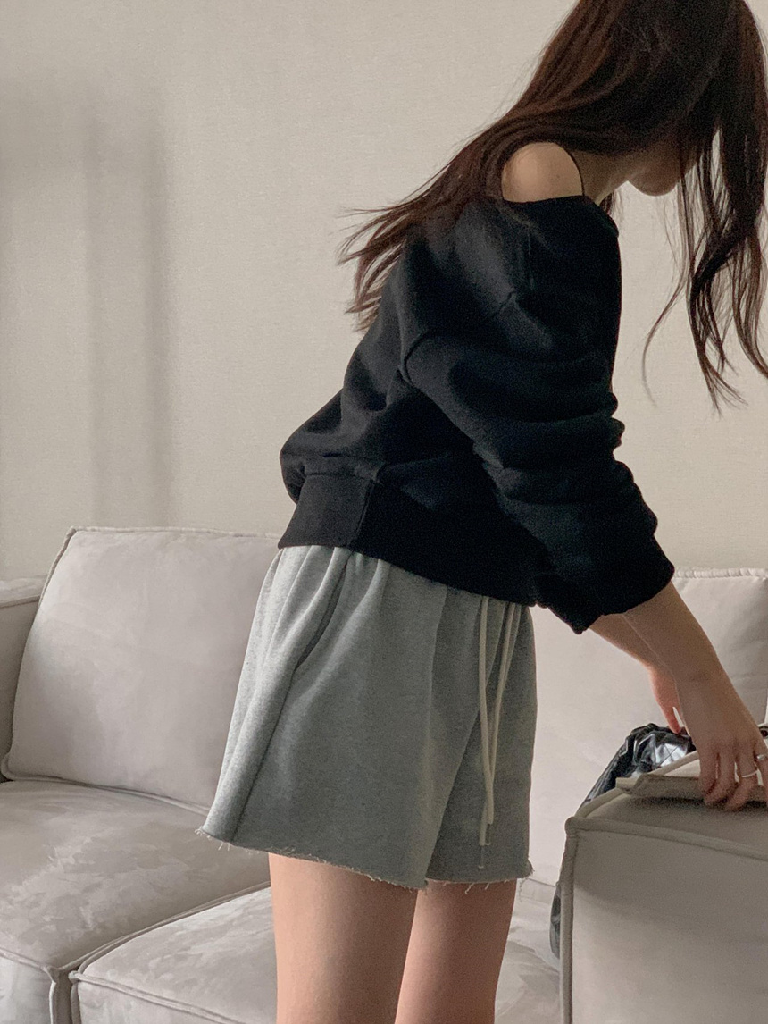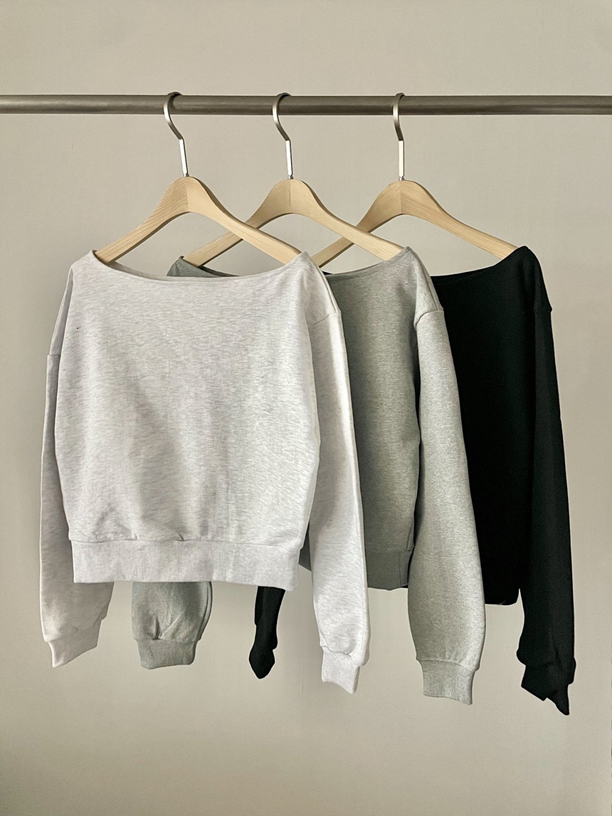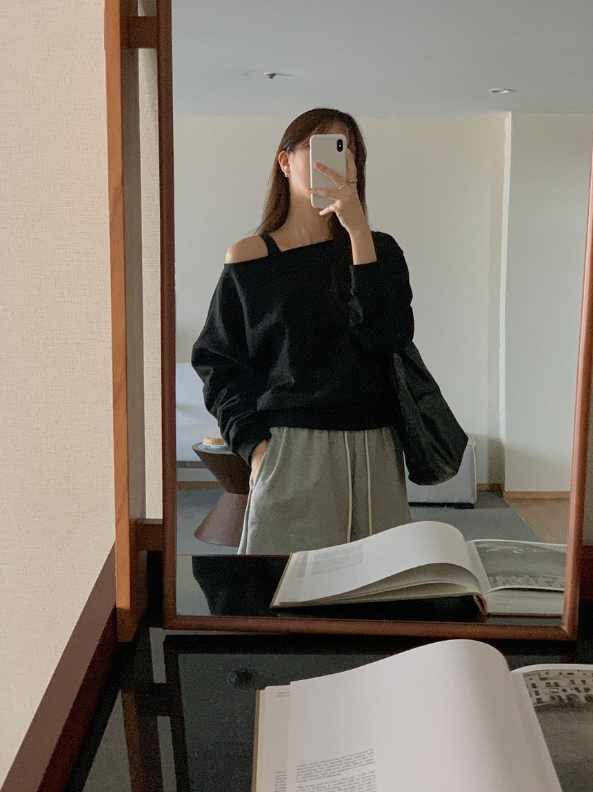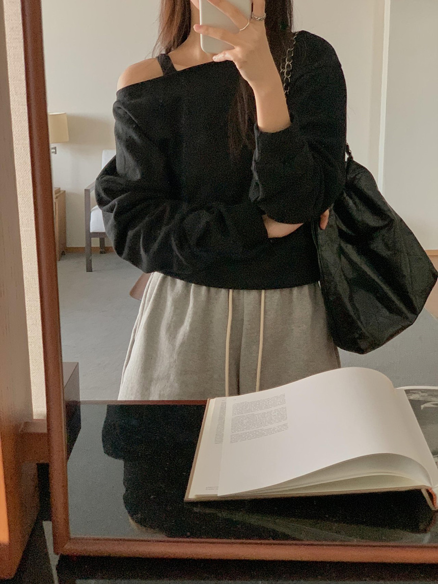 욜리 오프숄더 언발 세미크롭 맨투맨