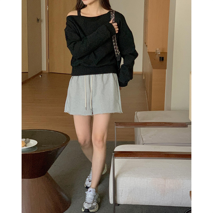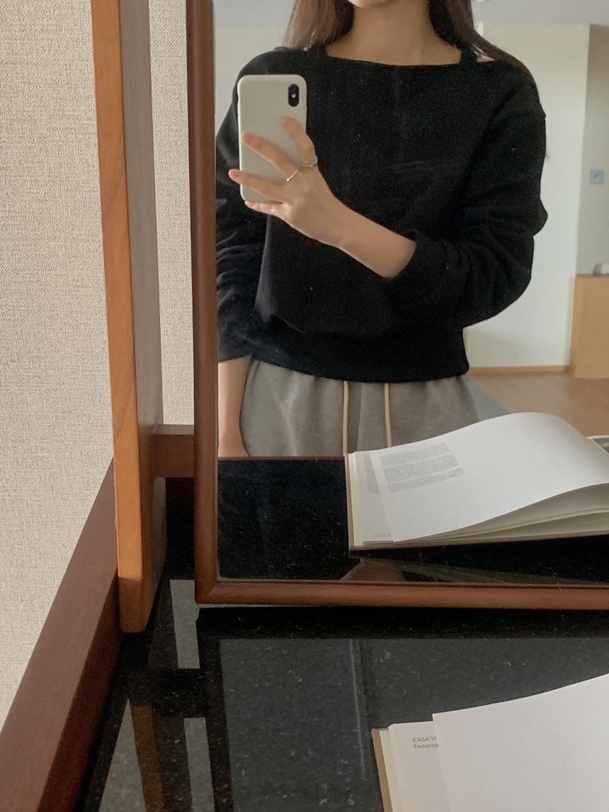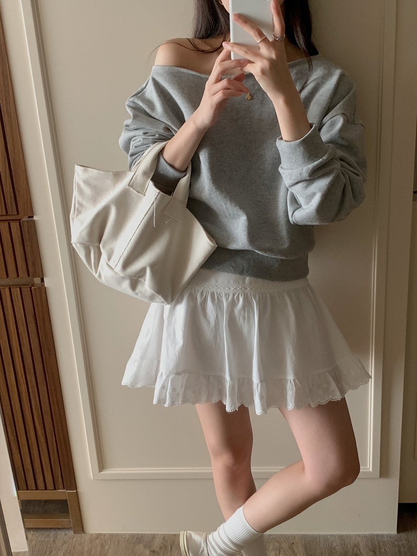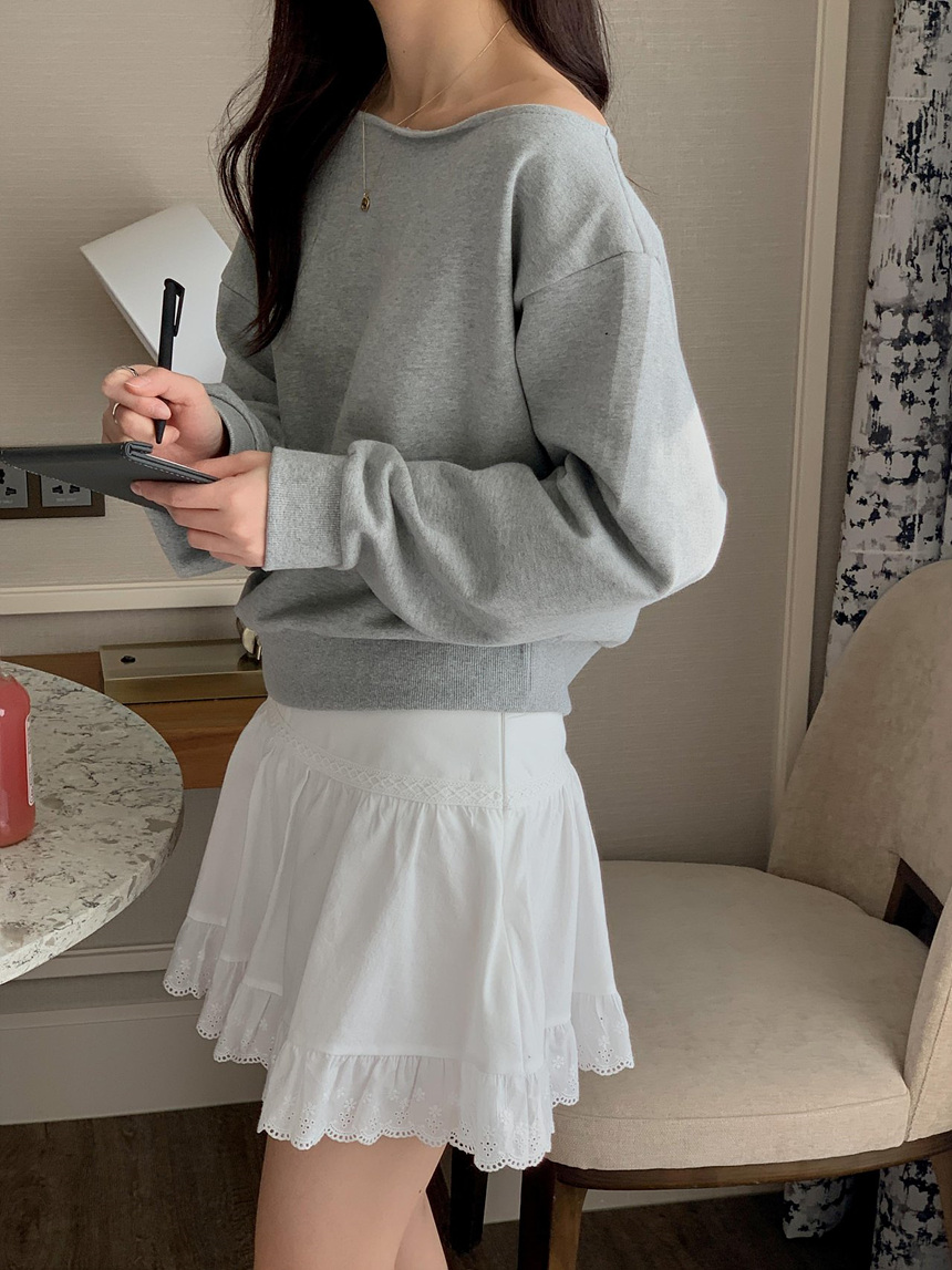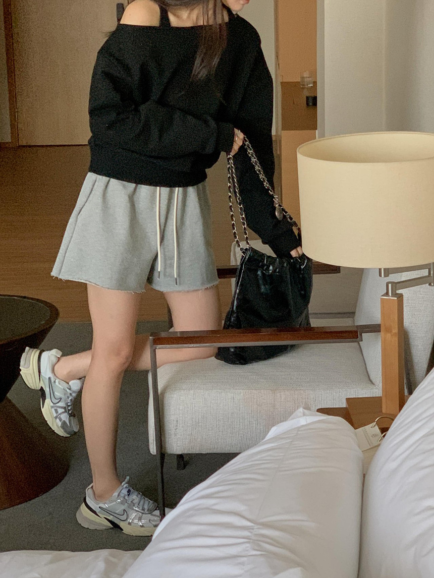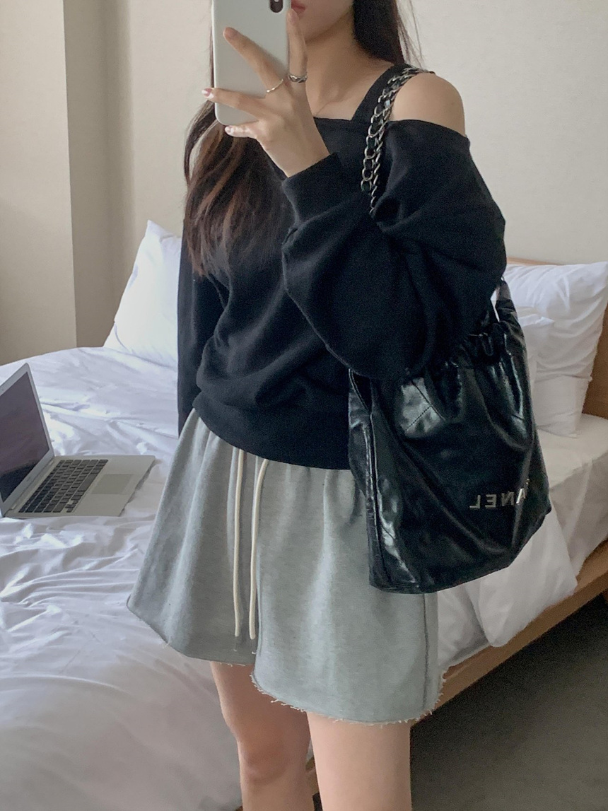 욜리 오프숄더 언발 세미크롭 맨투맨