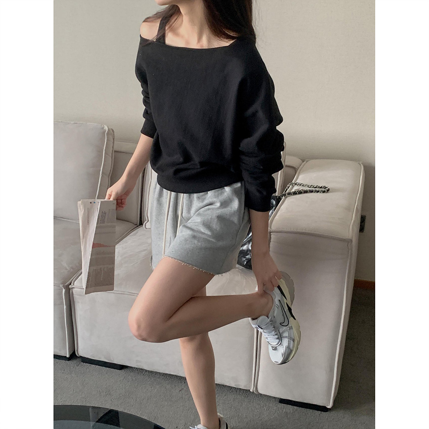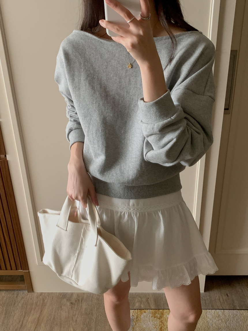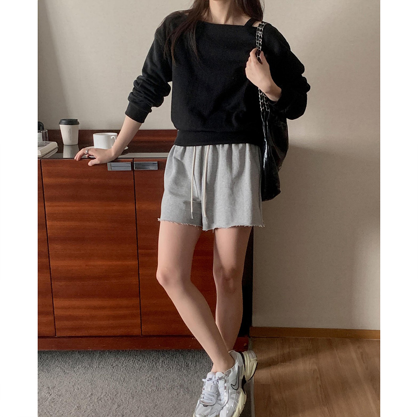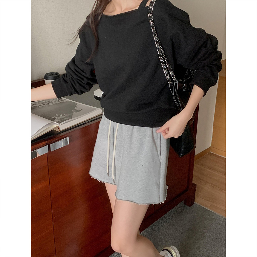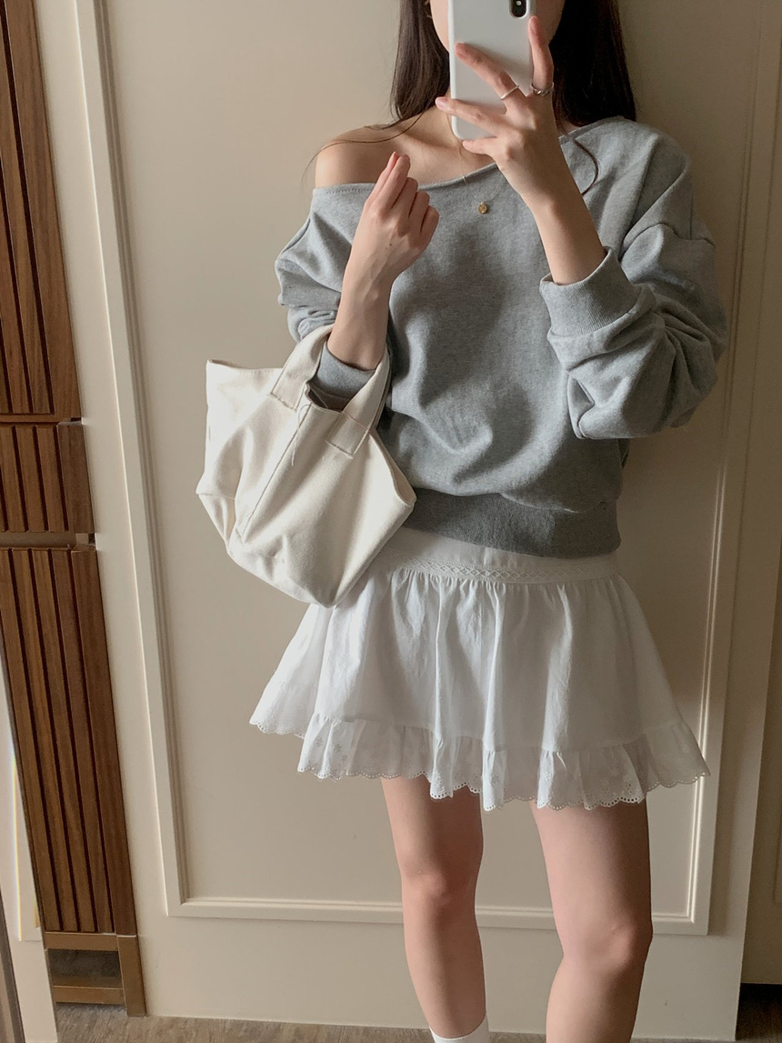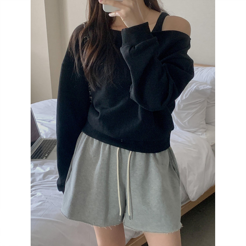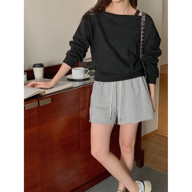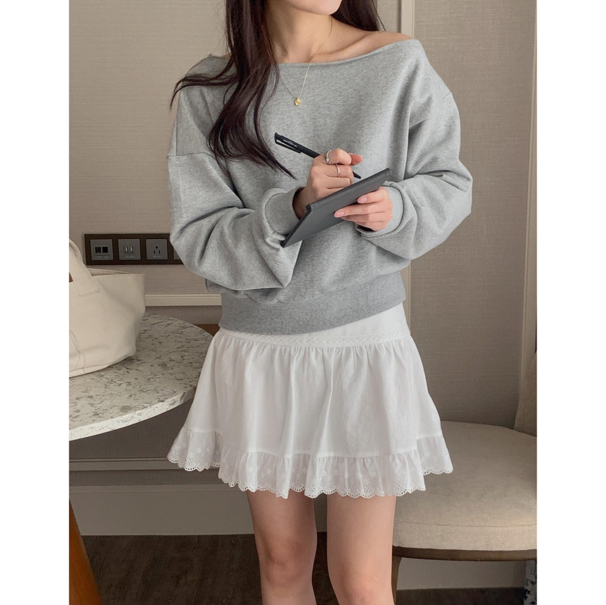 욜리 오프숄더 언발 세미크롭 맨투맨