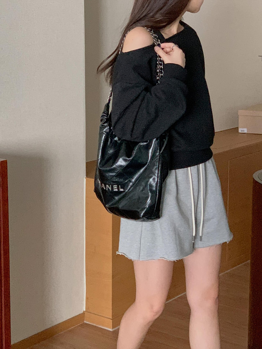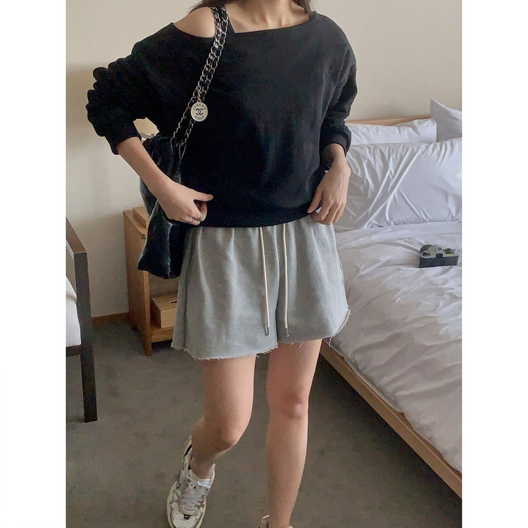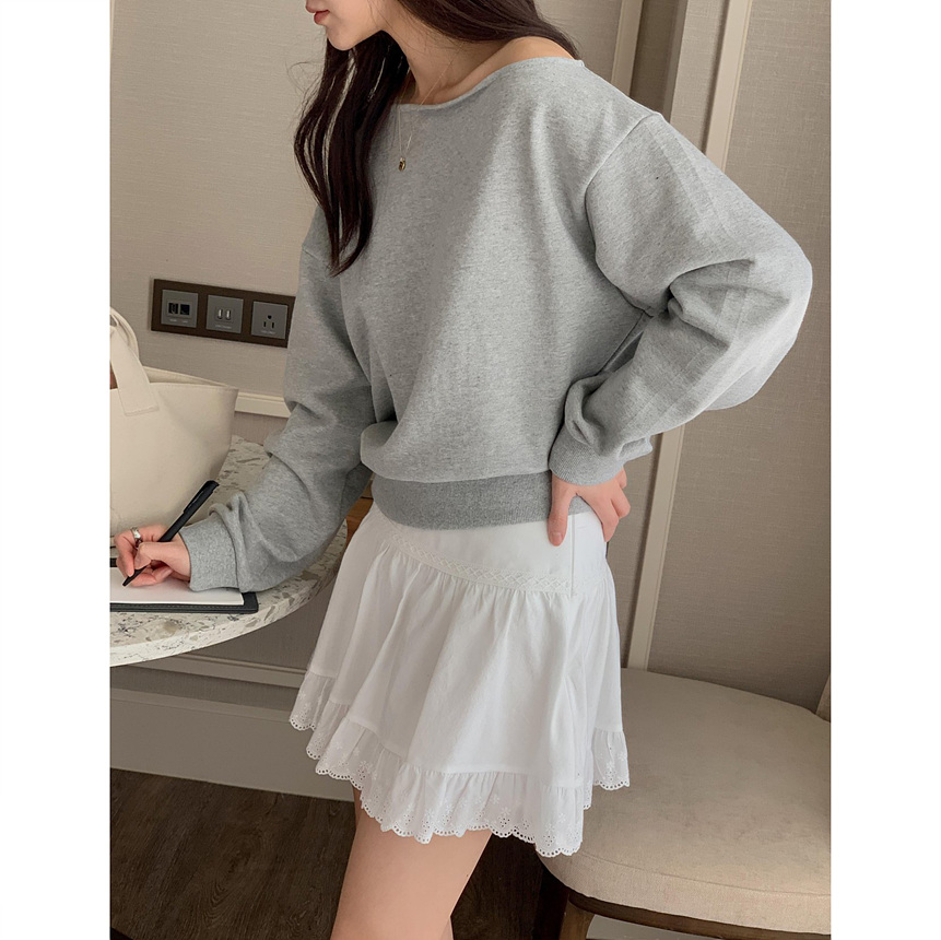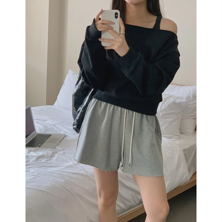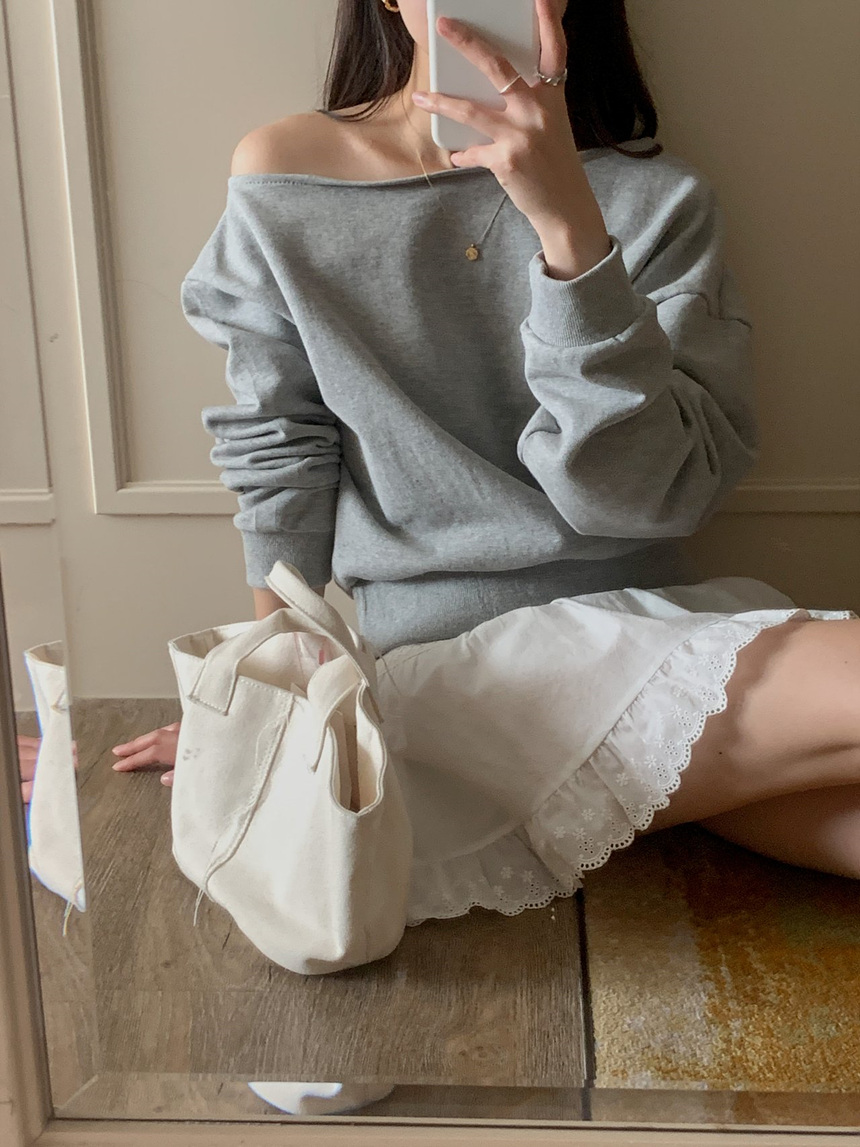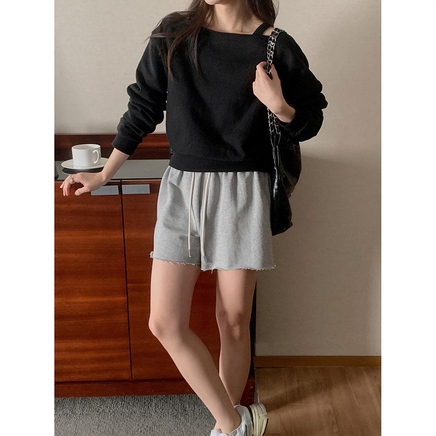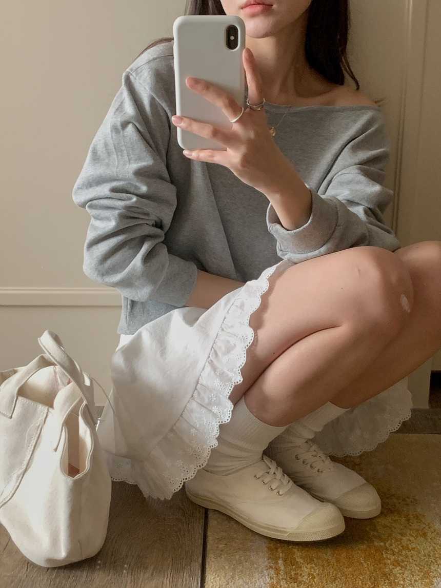 욜리 오프숄더 언발 세미크롭 맨투맨
