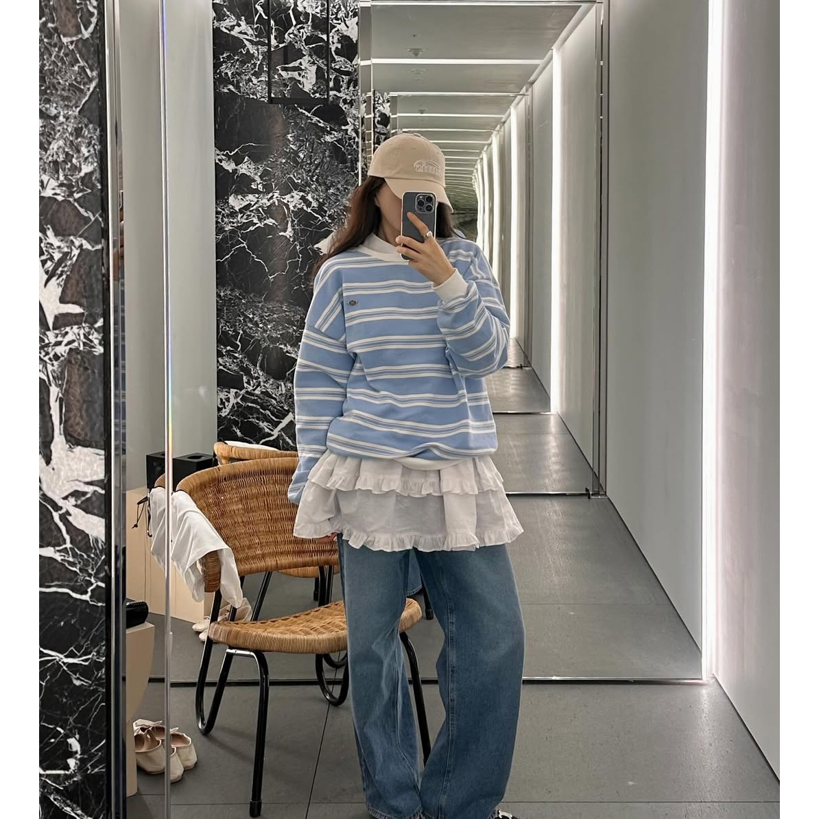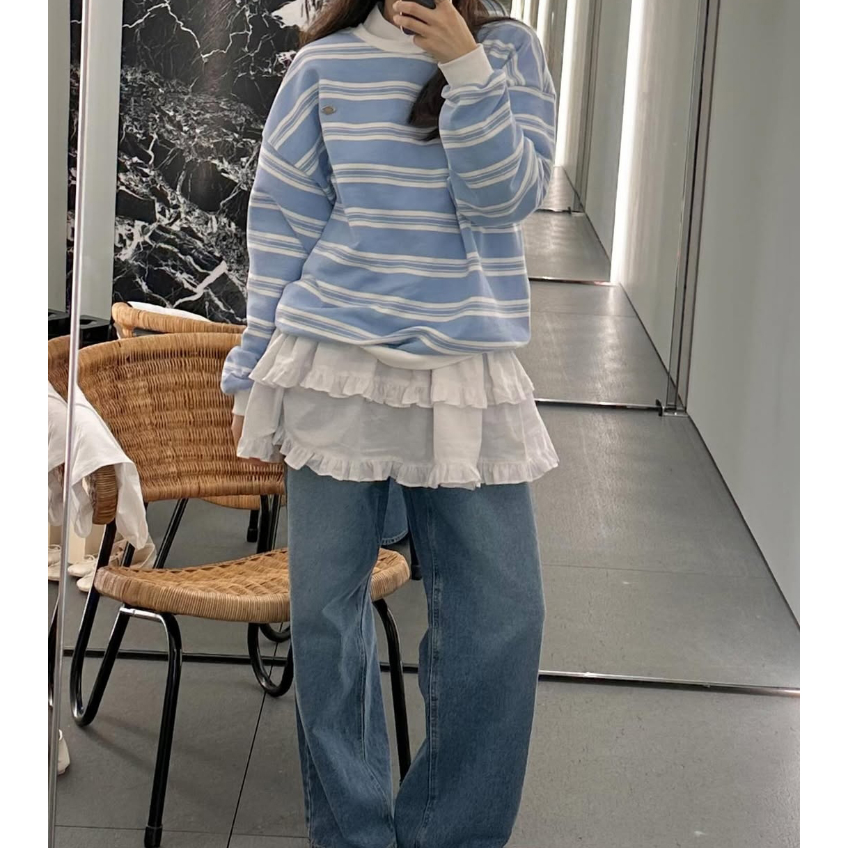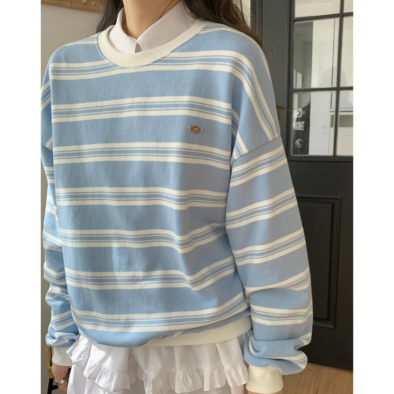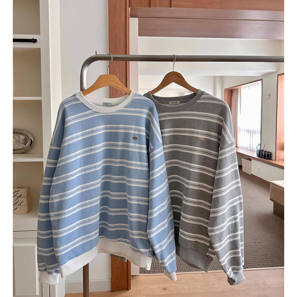 박시 스트라이프 루즈핏 단가라 맨투맨