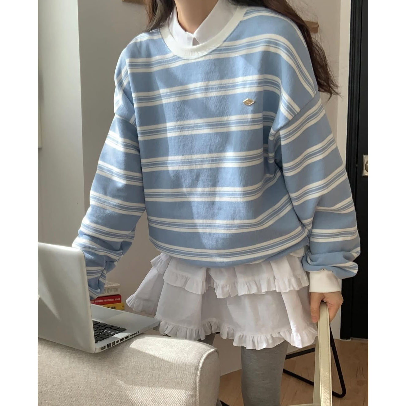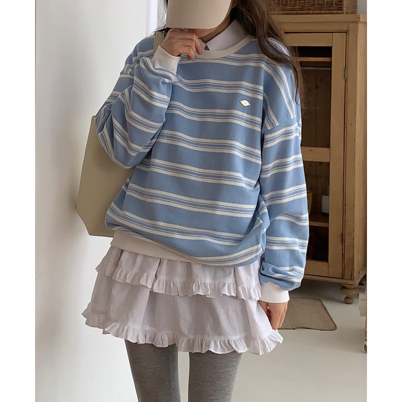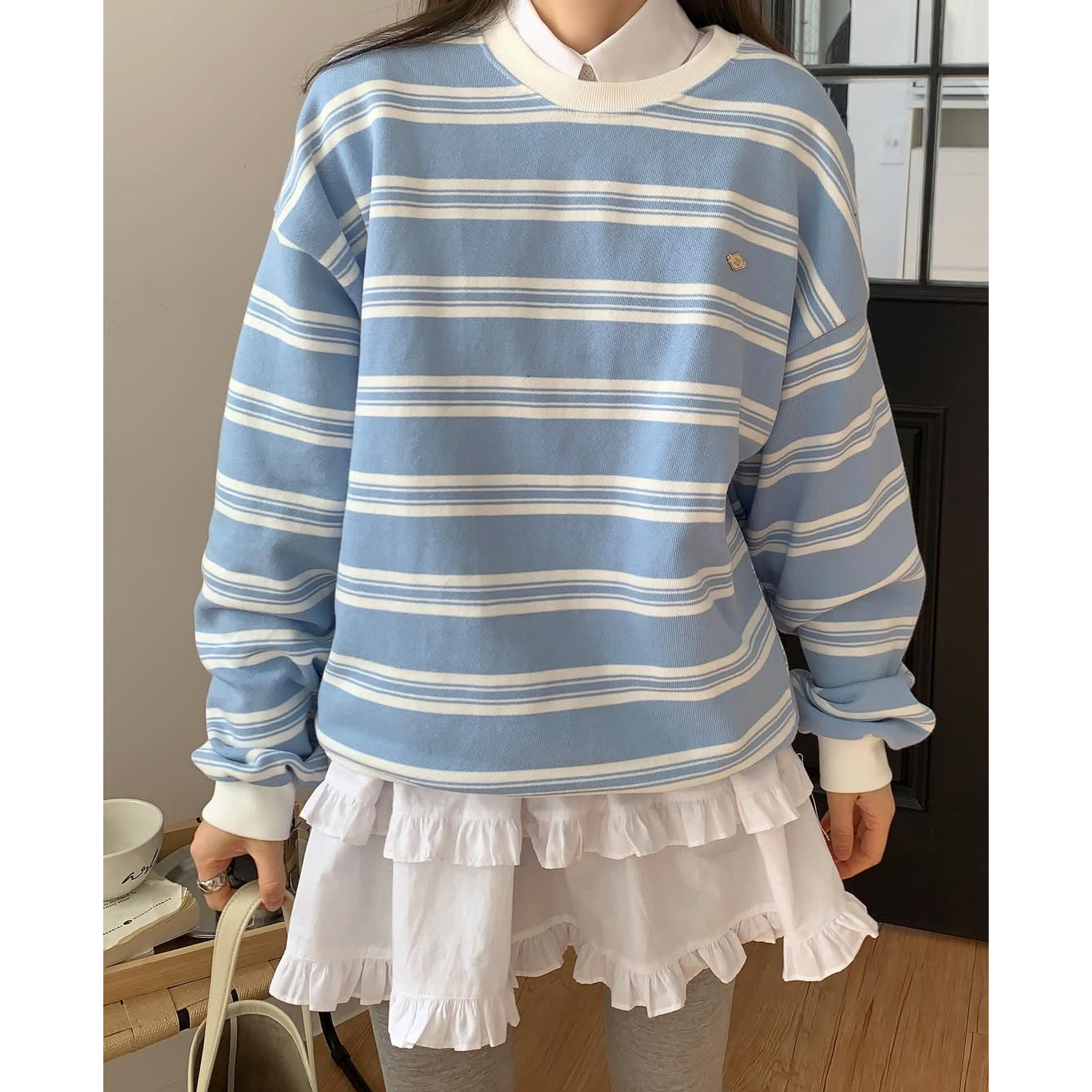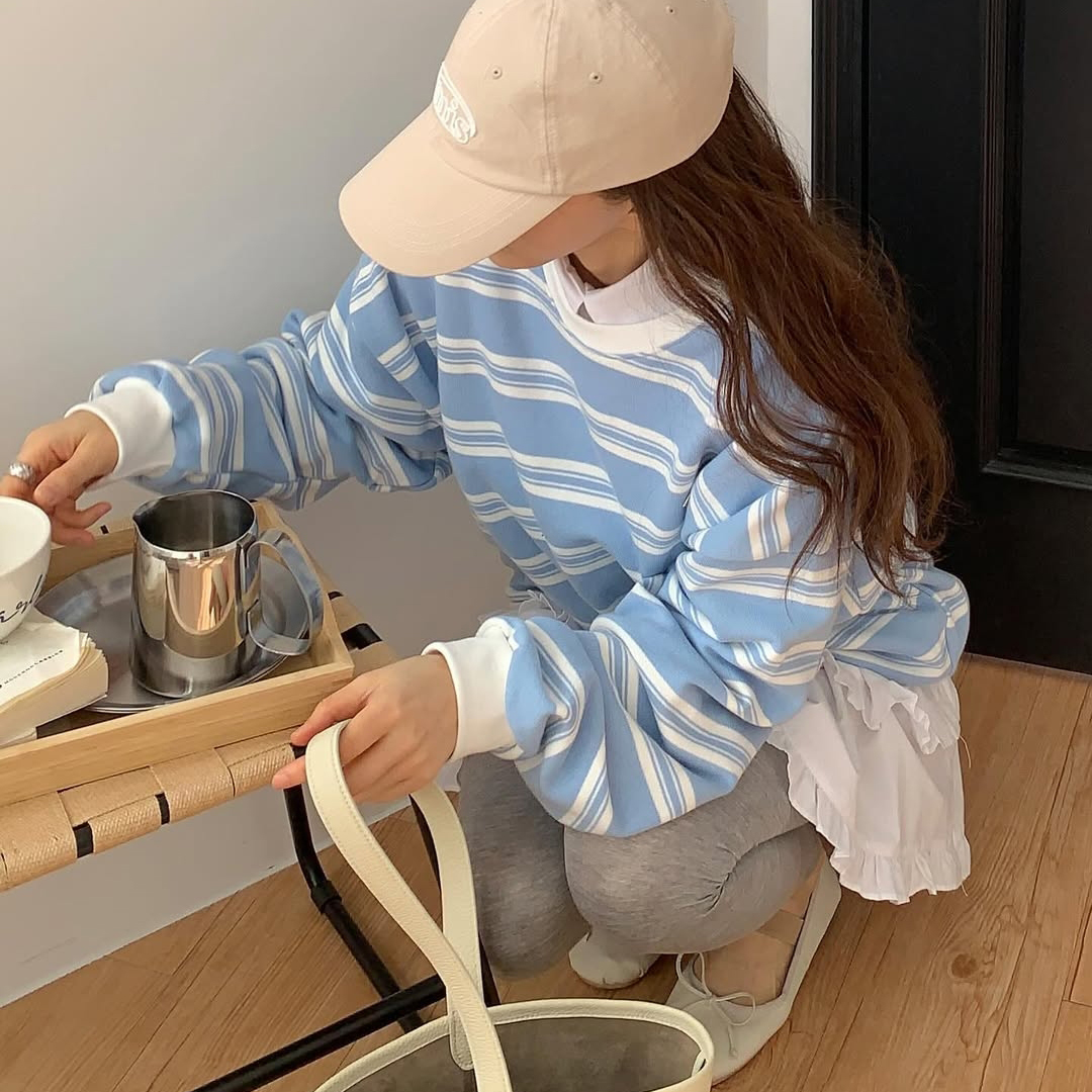 박시 스트라이프 루즈핏 단가라 맨투맨