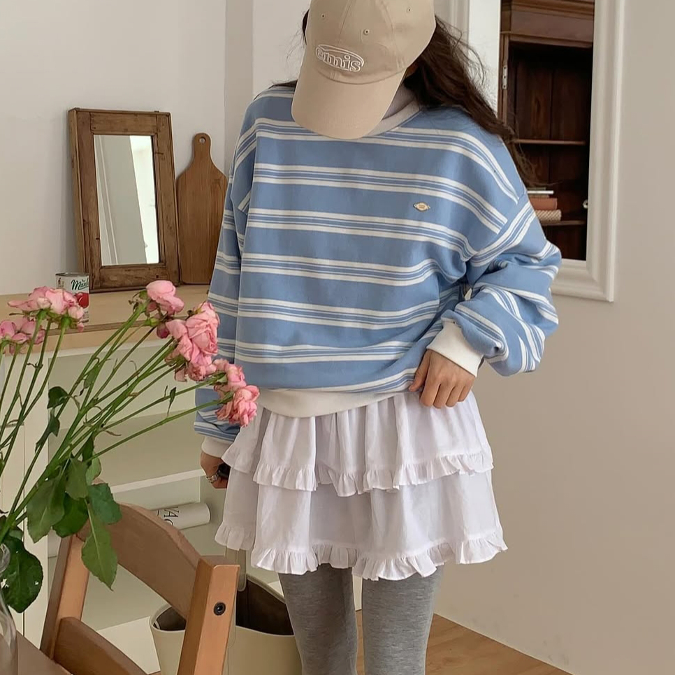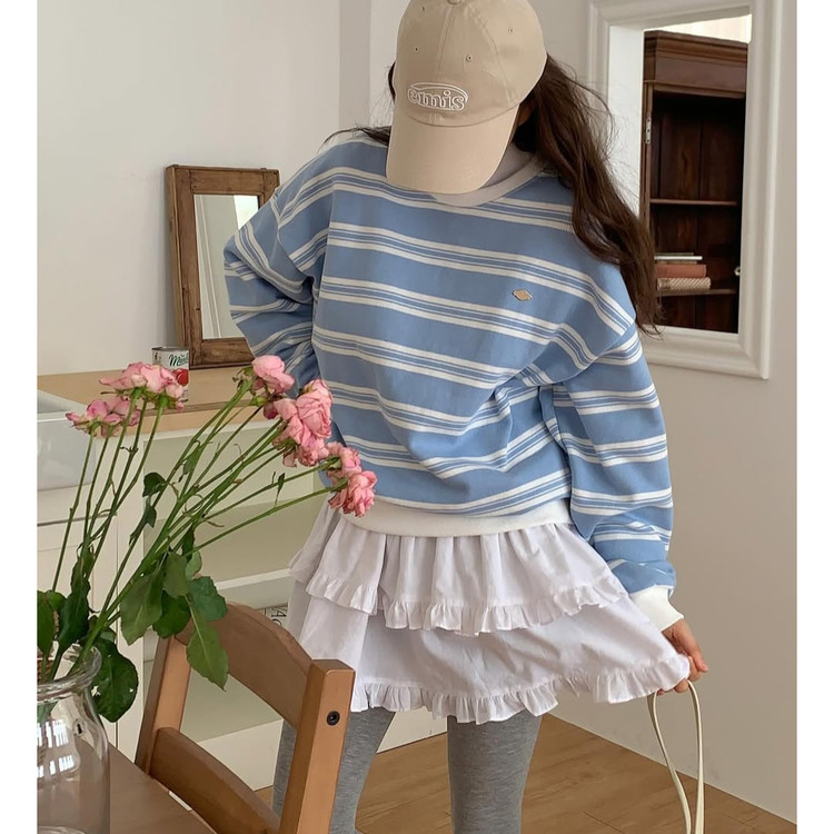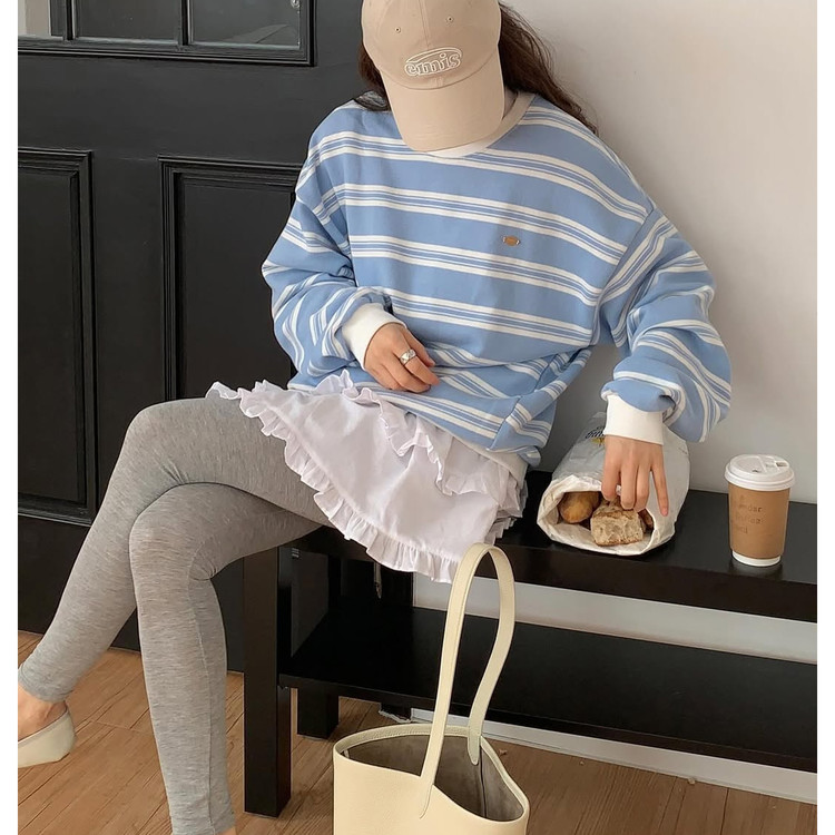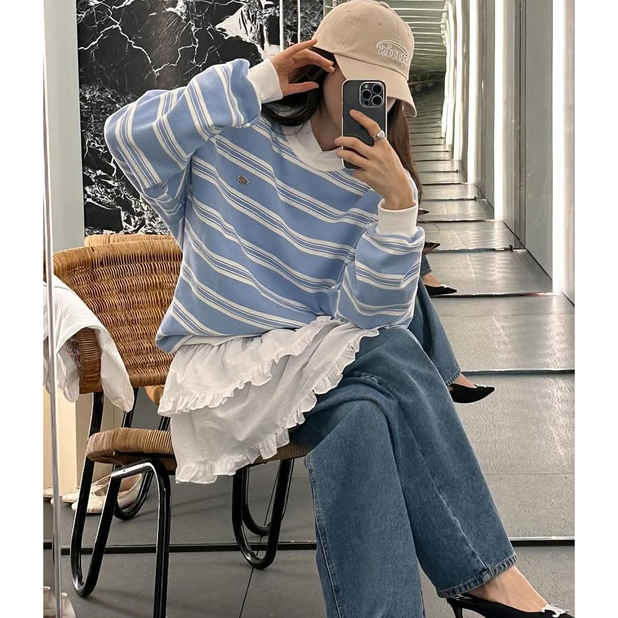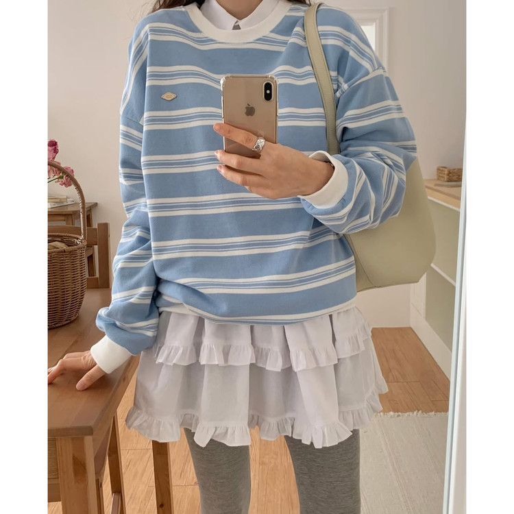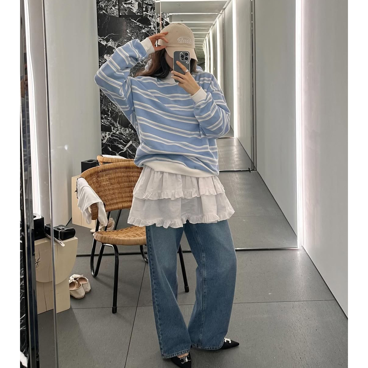 박시 스트라이프 루즈핏 단가라 맨투맨