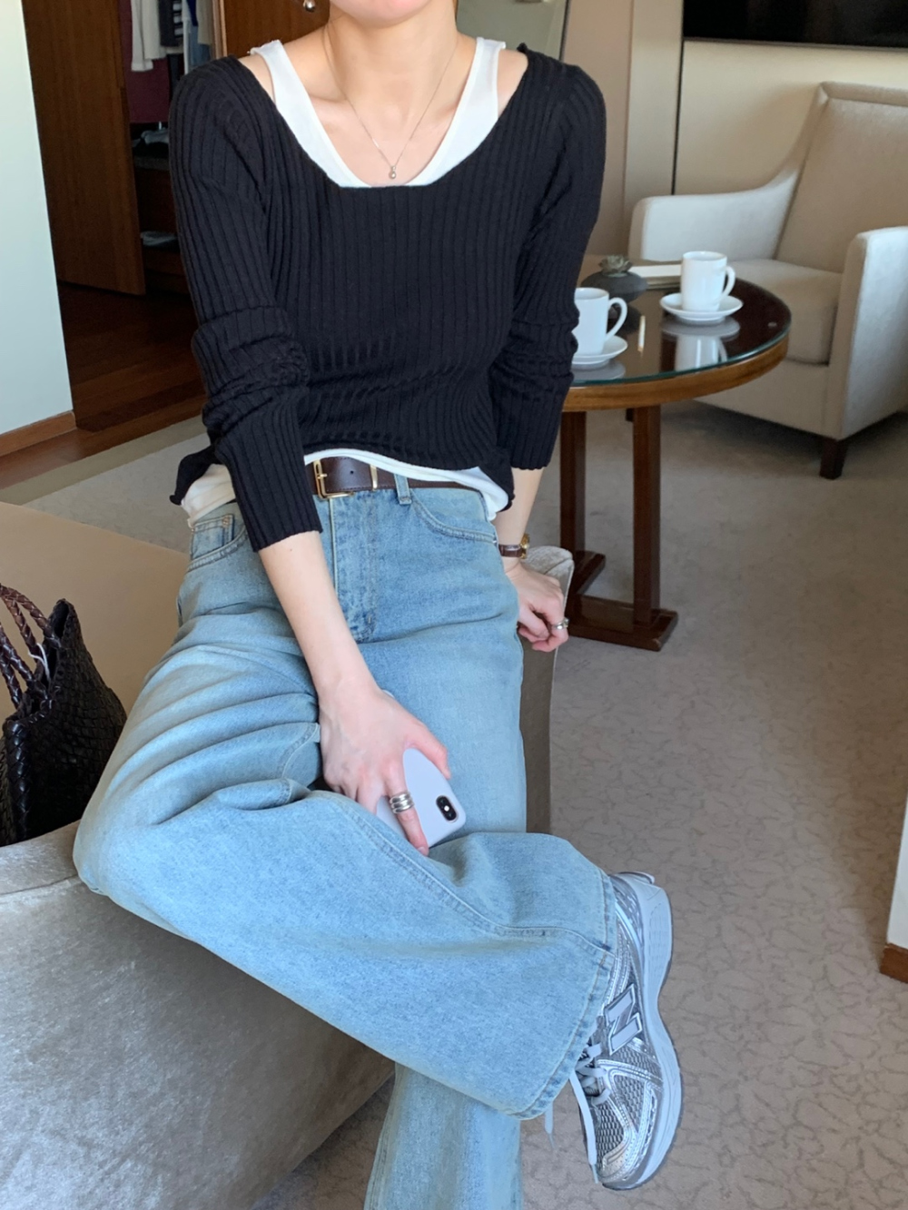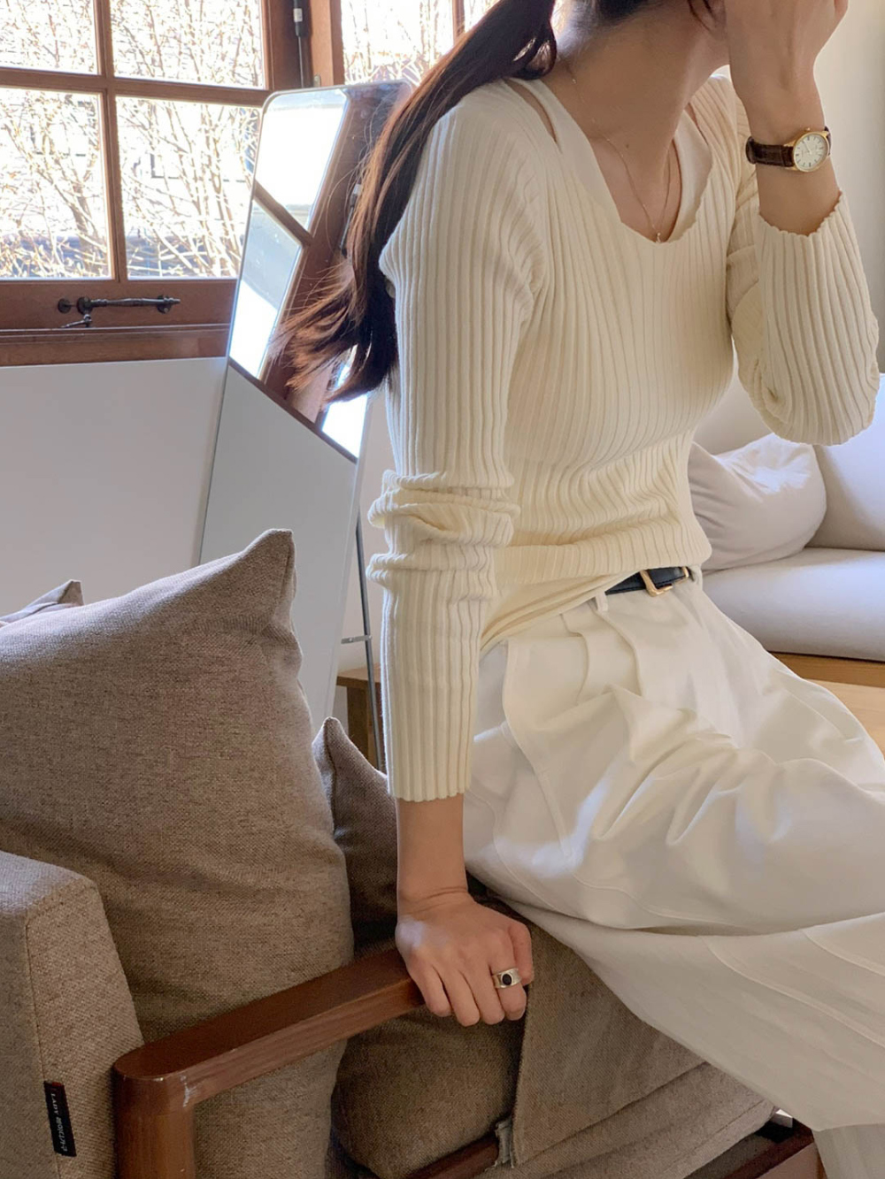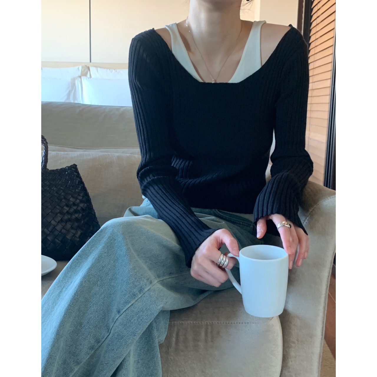 바로발송 미스 레이어드 골지 니트