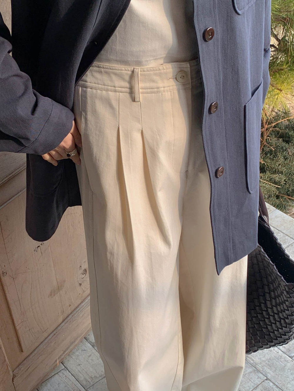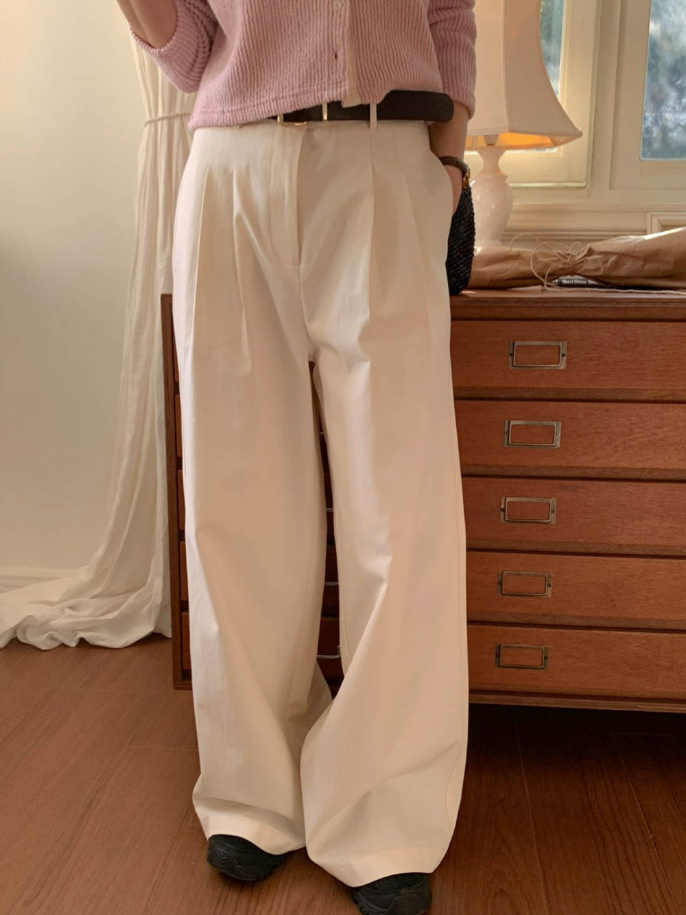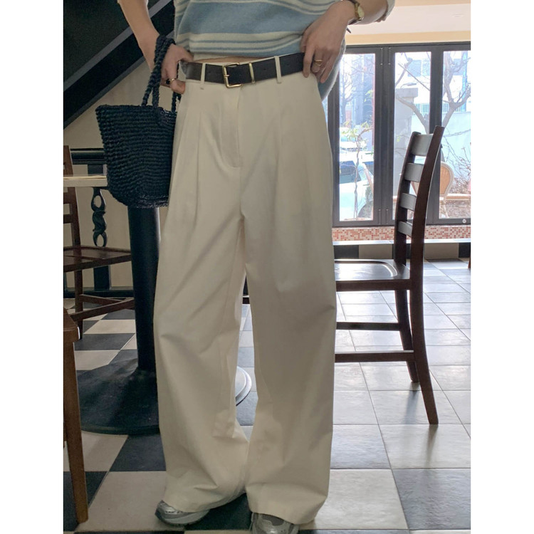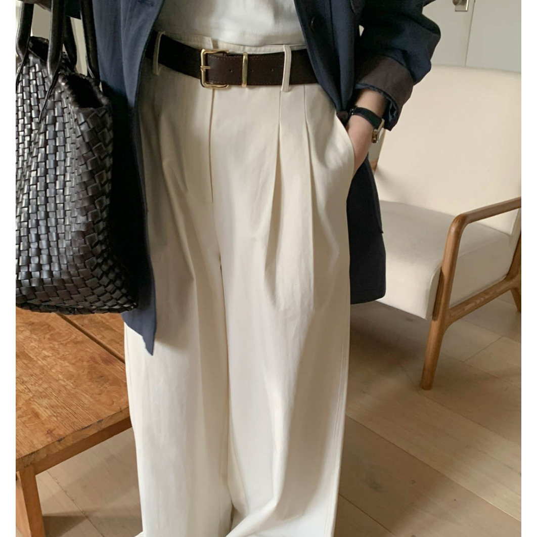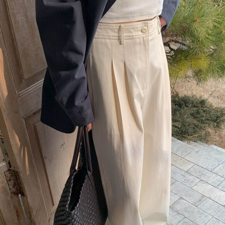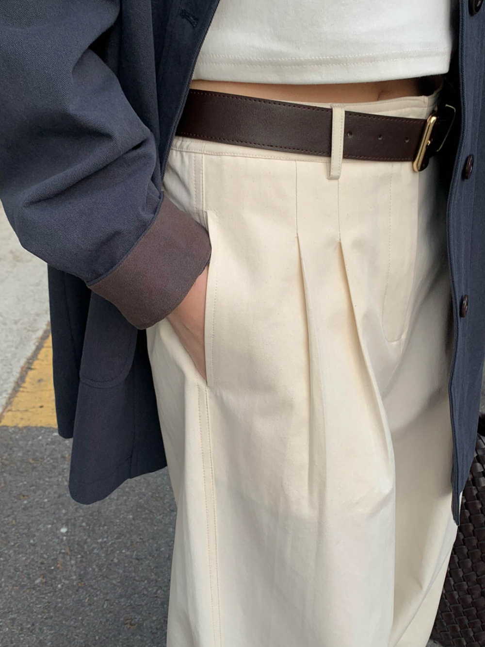 리블 핀턱 일자 코튼 슬랙스 팬츠