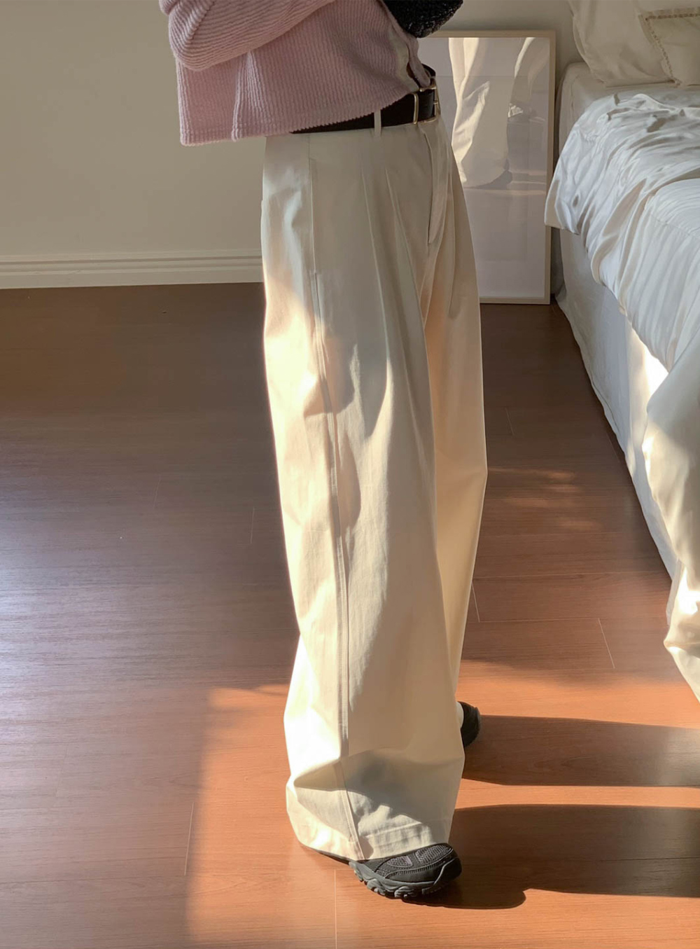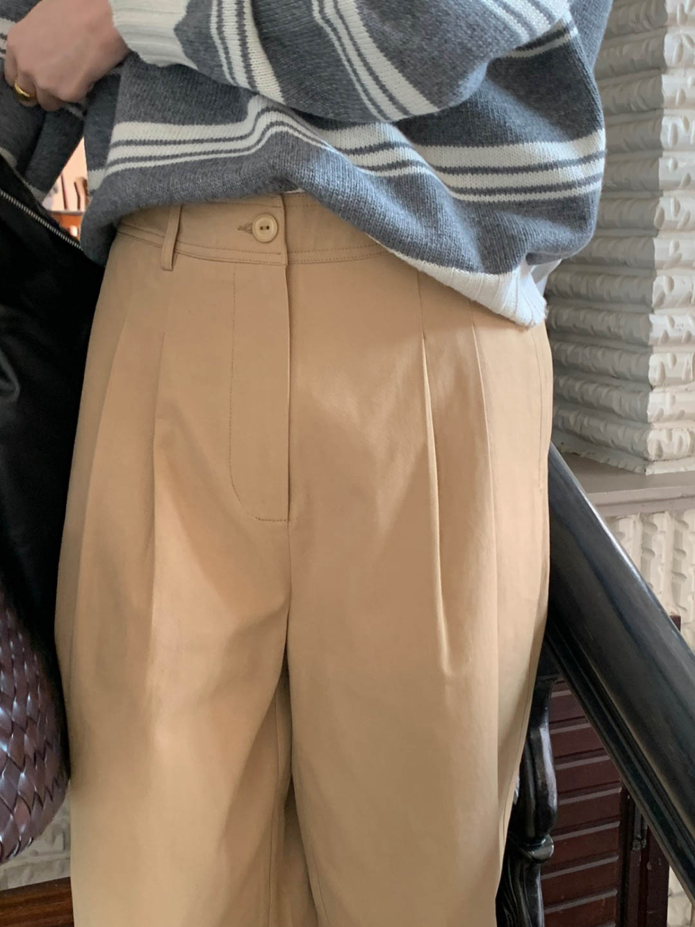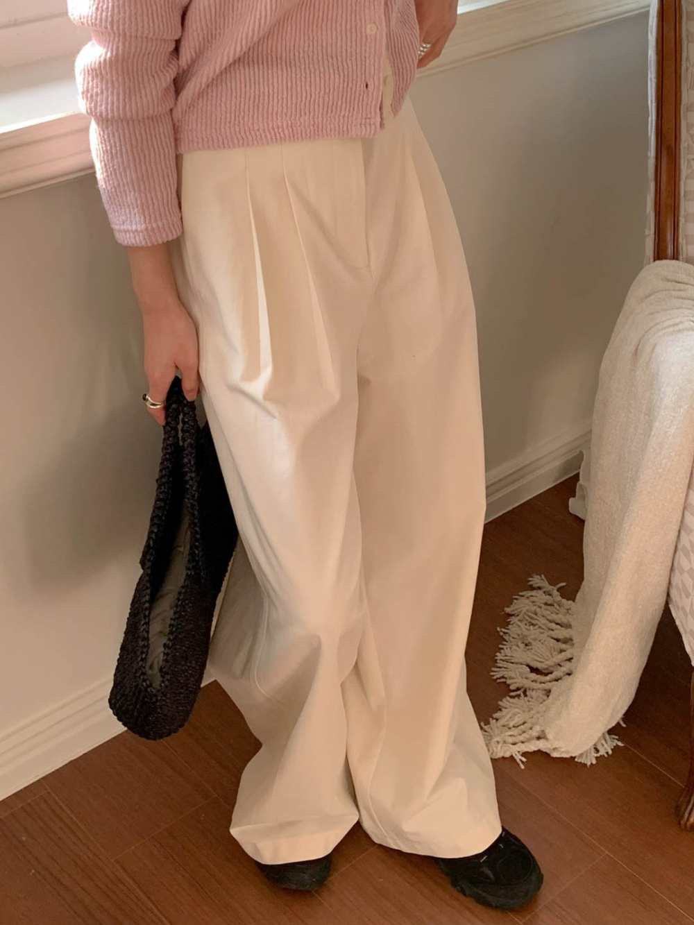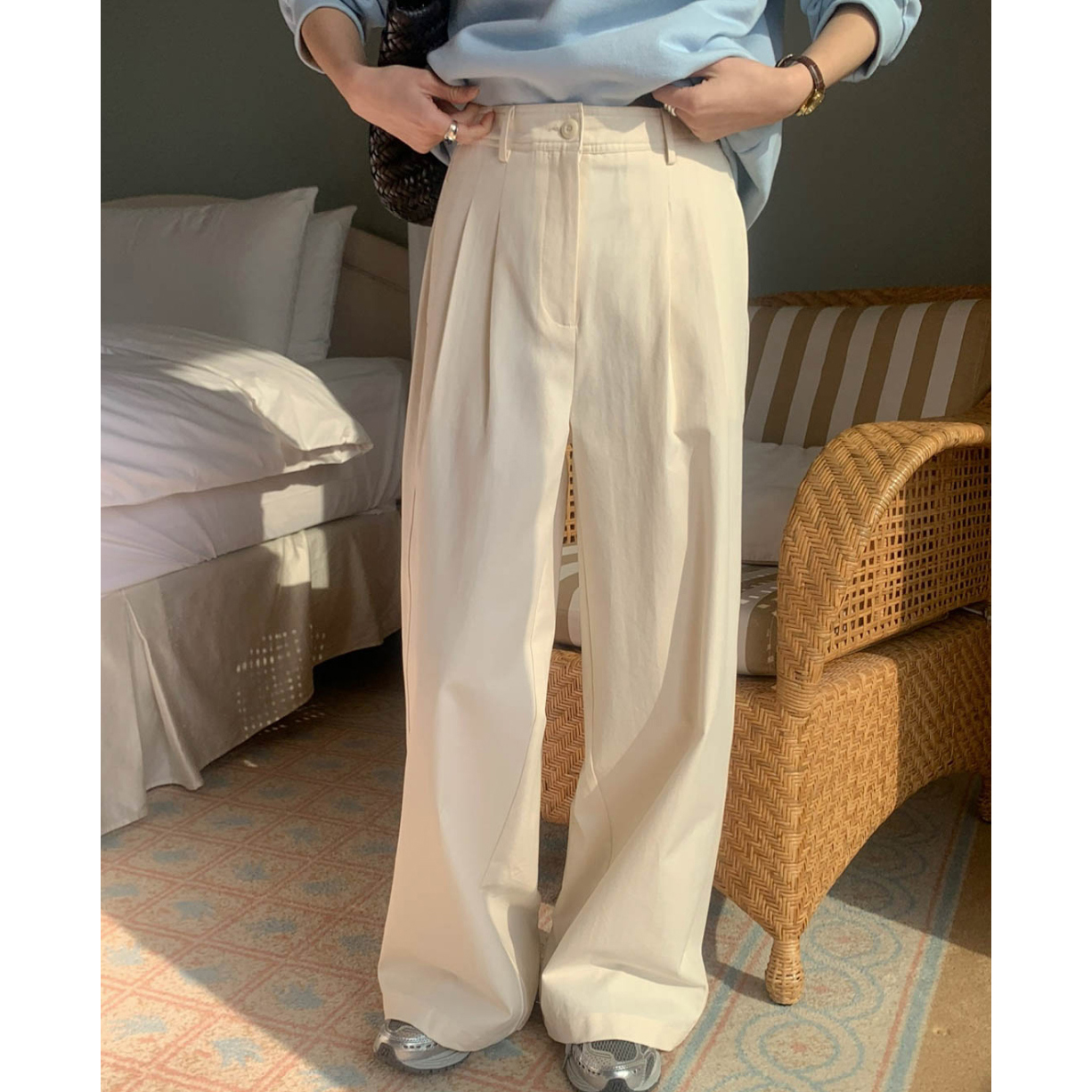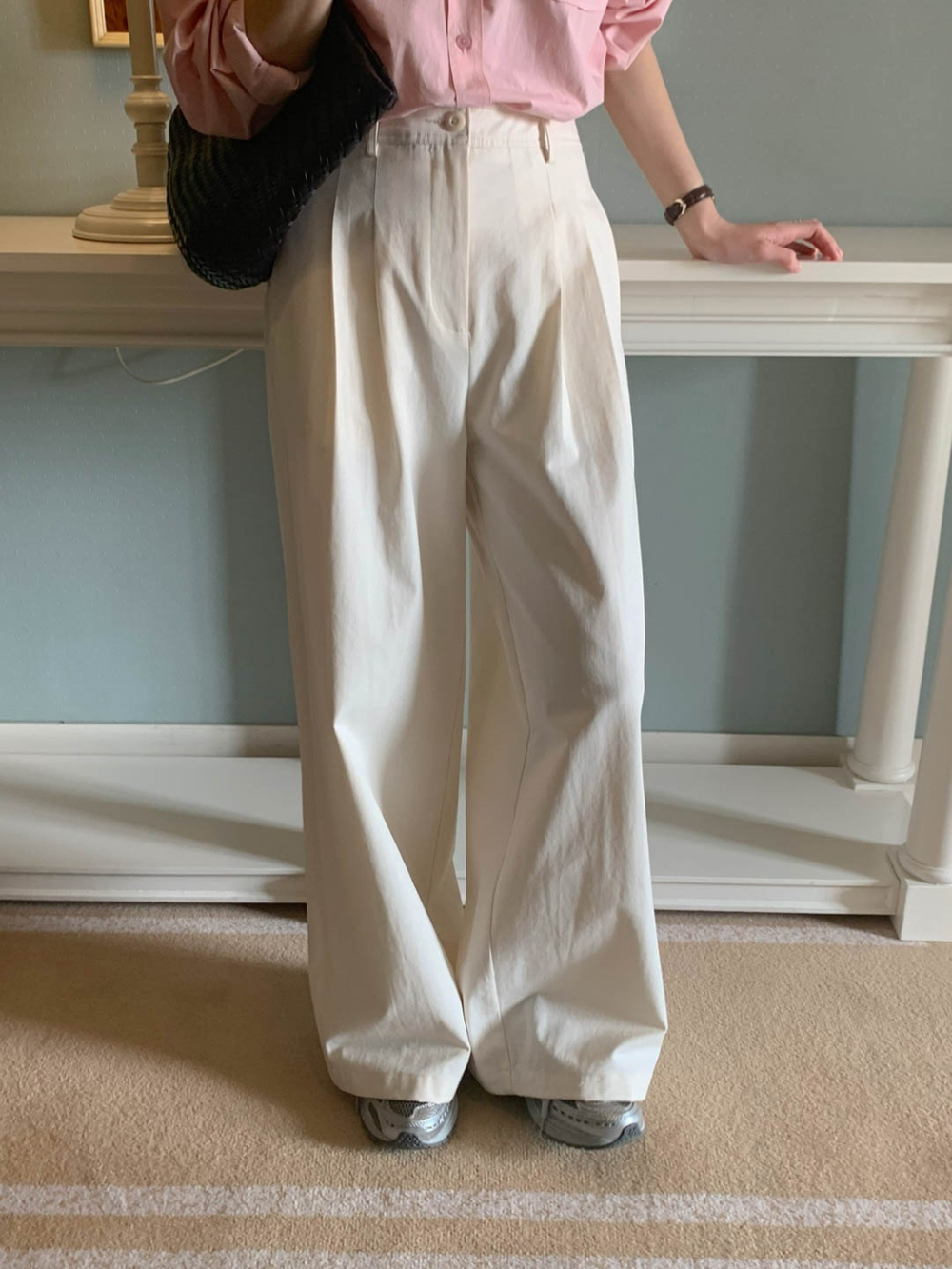 리블 핀턱 일자 코튼 슬랙스 팬츠
