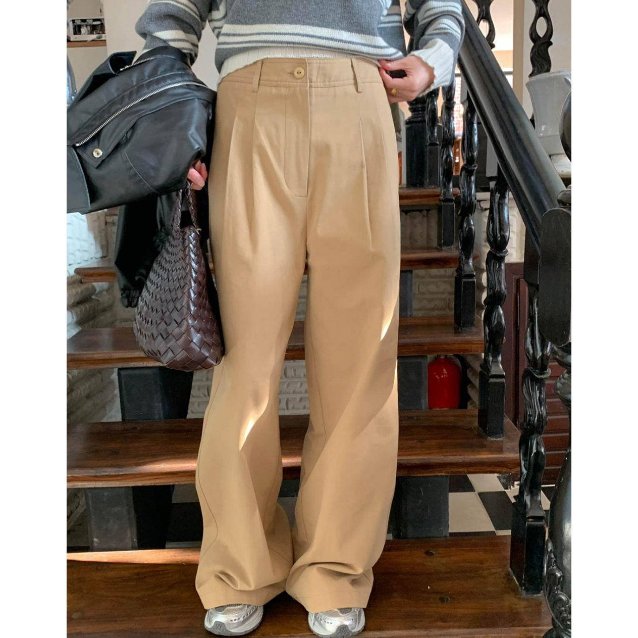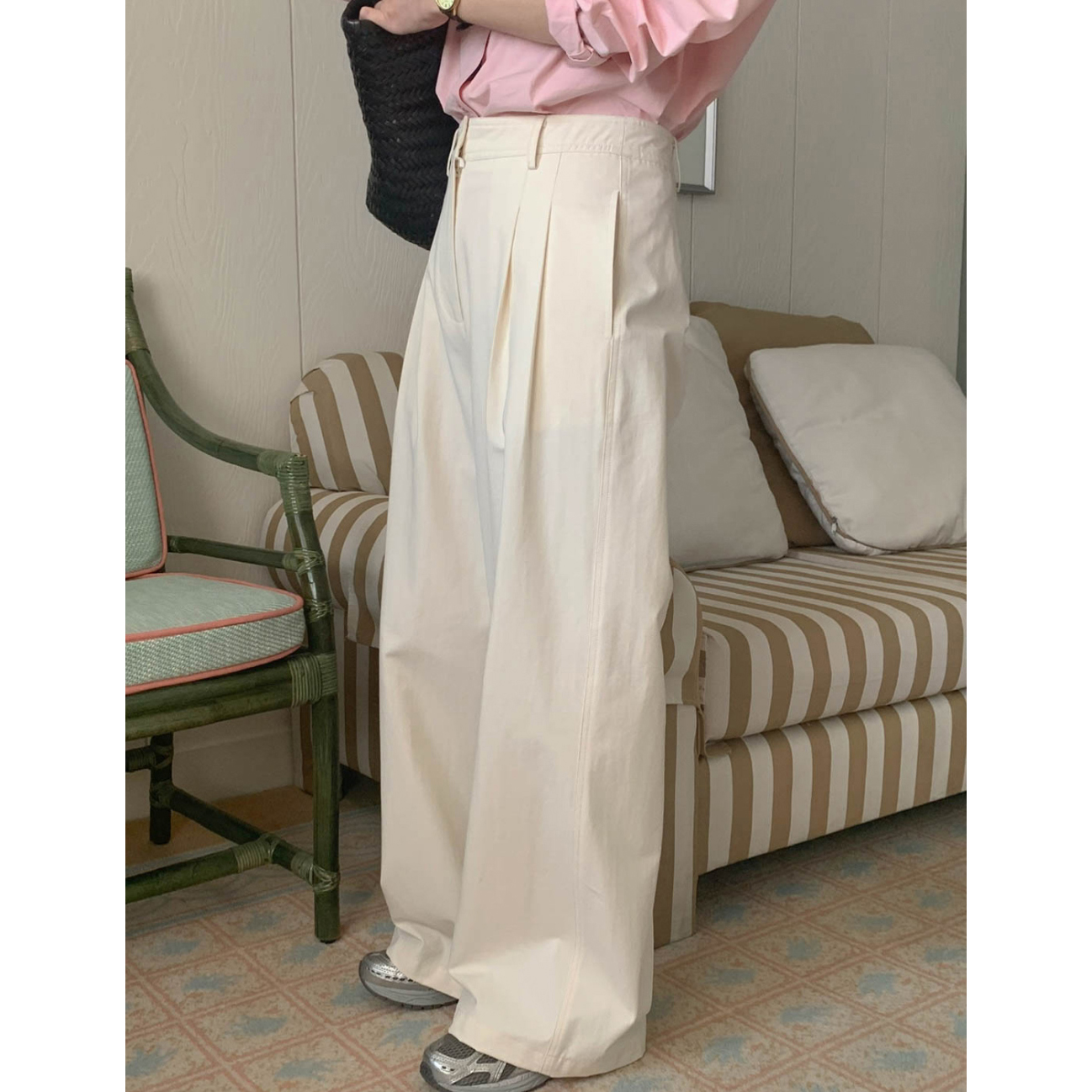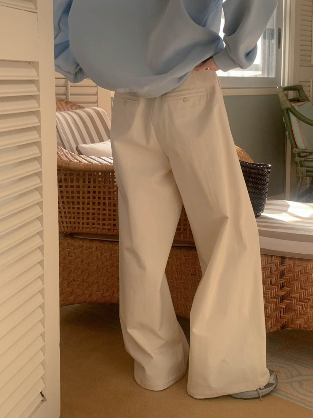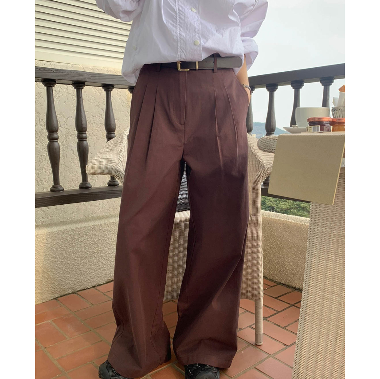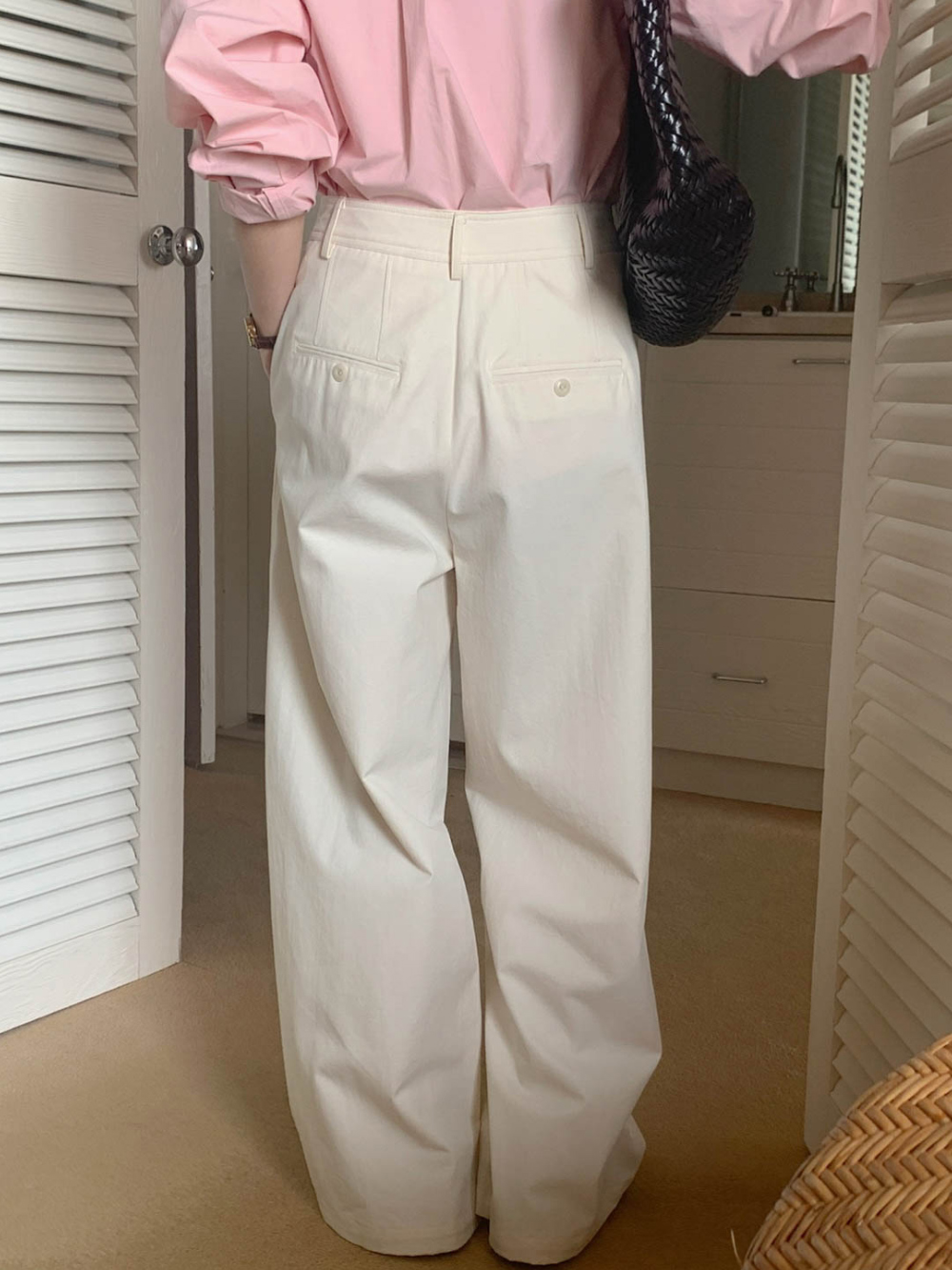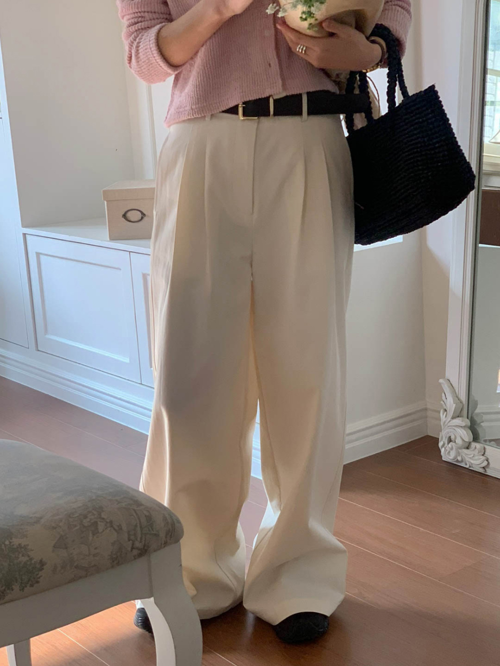 리블 핀턱 일자 코튼 슬랙스 팬츠