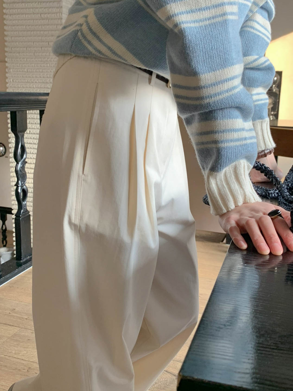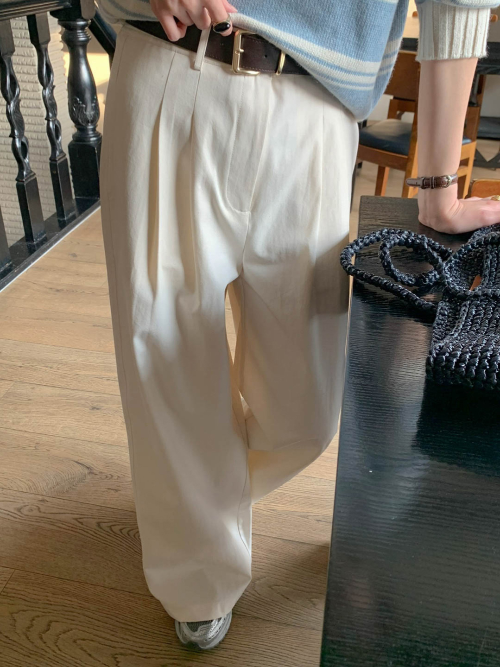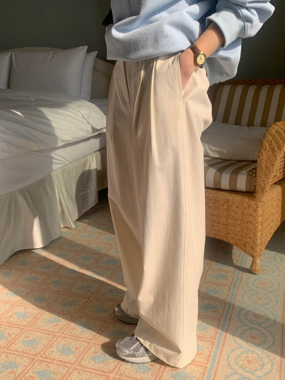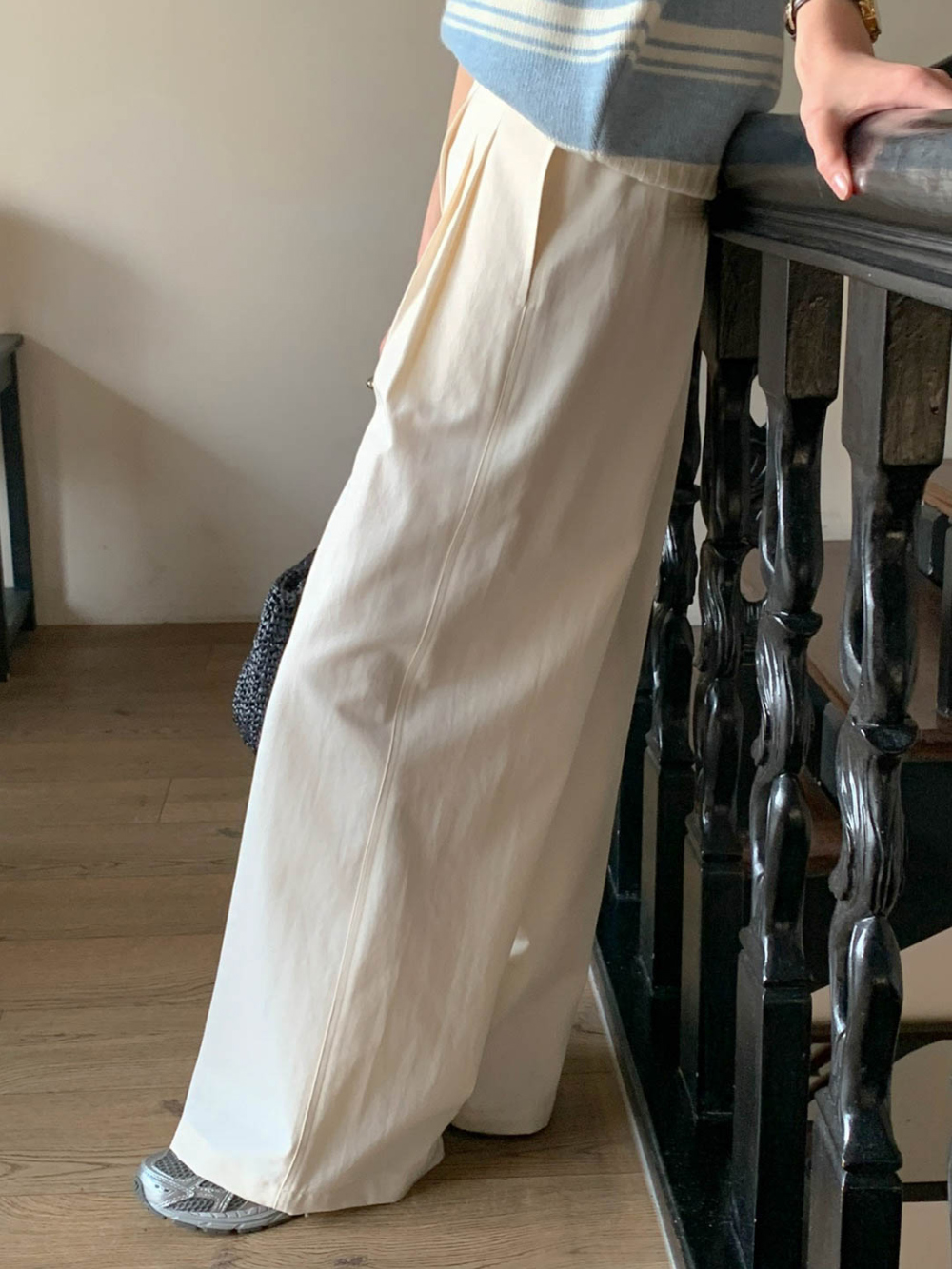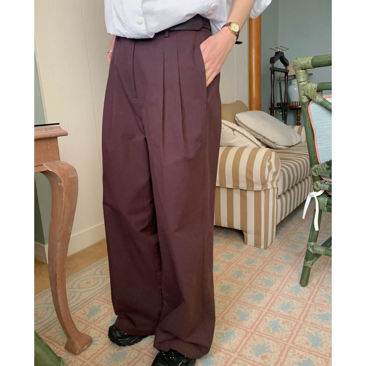 리블 핀턱 일자 코튼 슬랙스 팬츠