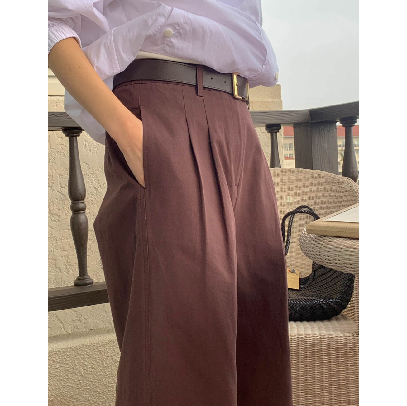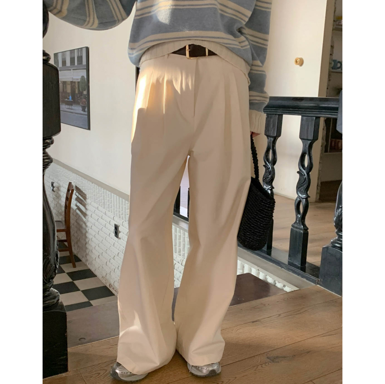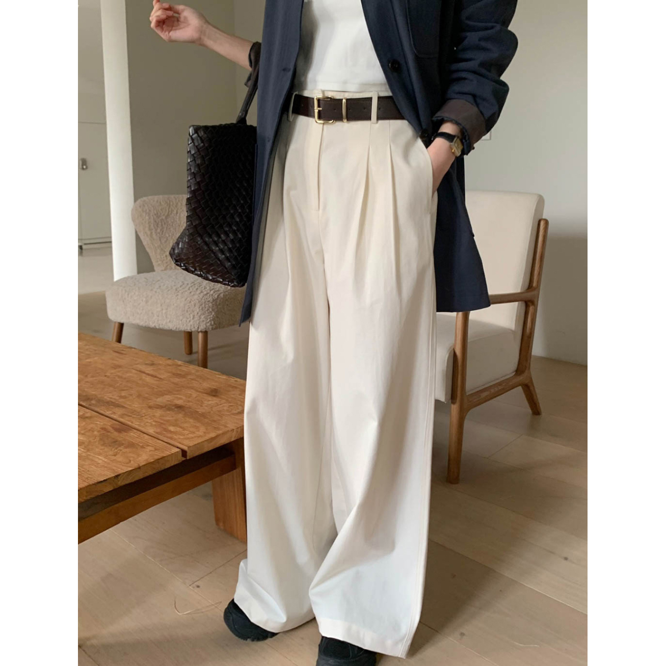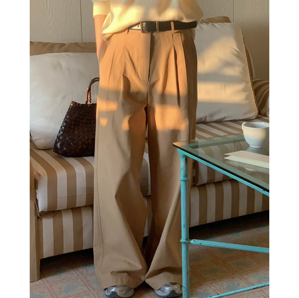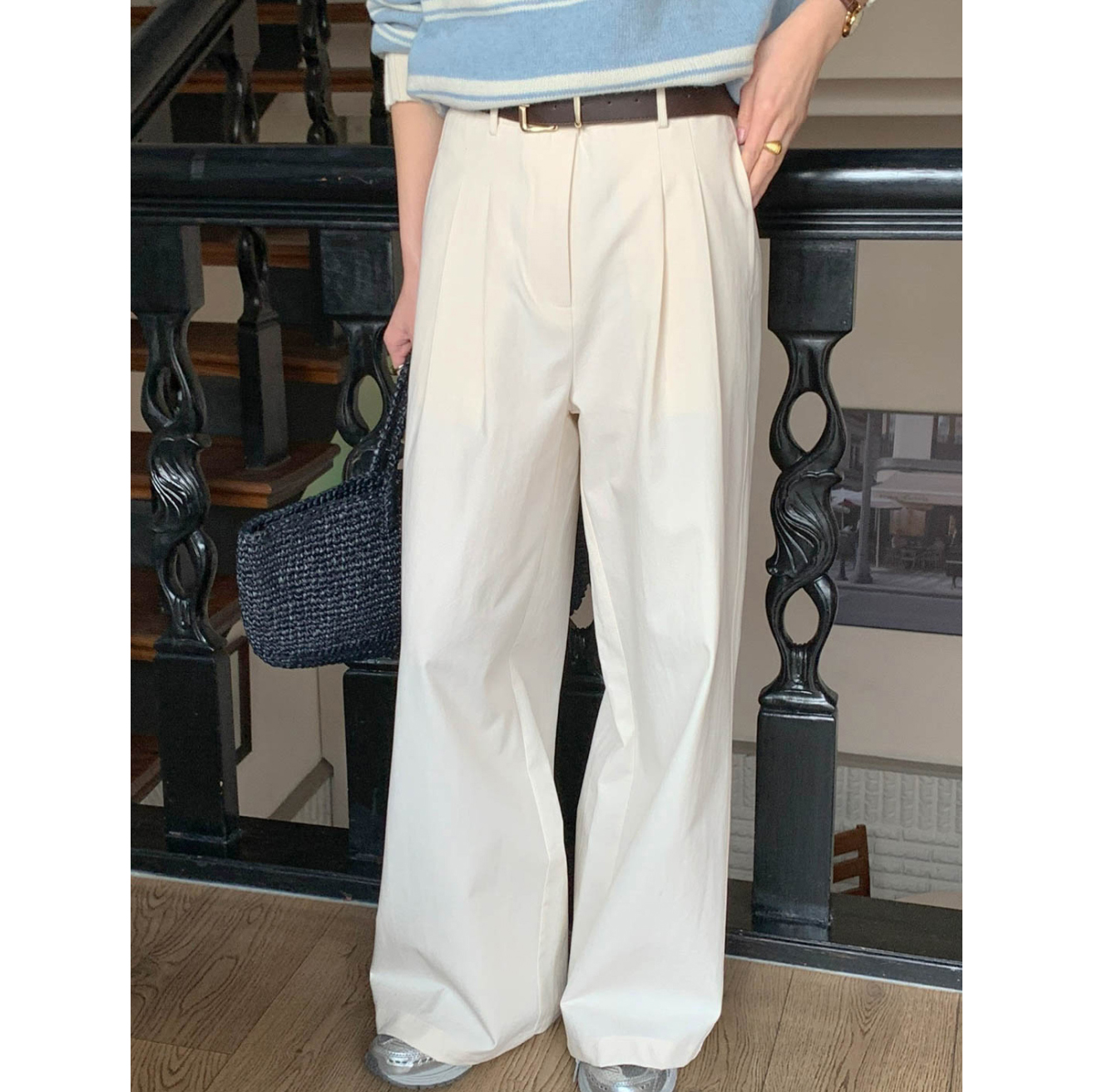 리블 핀턱 일자 코튼 슬랙스 팬츠