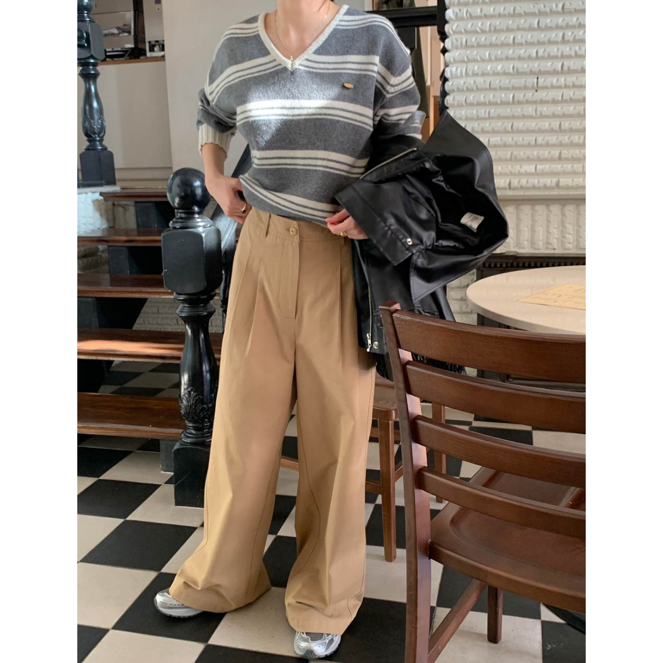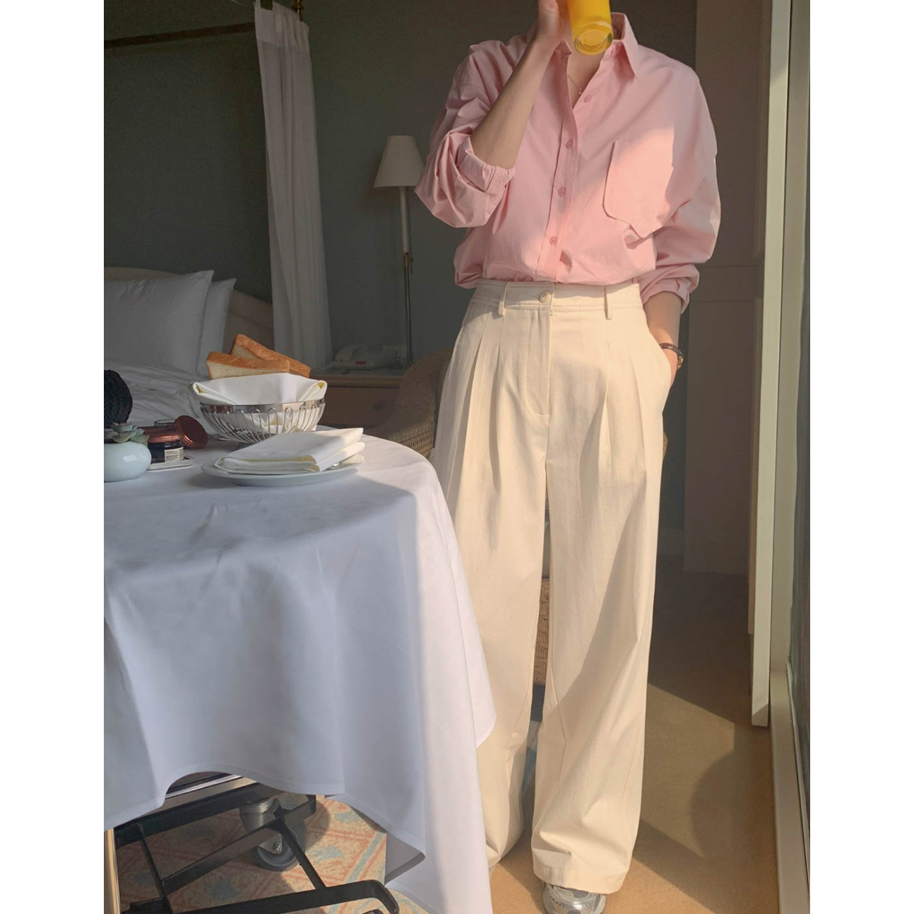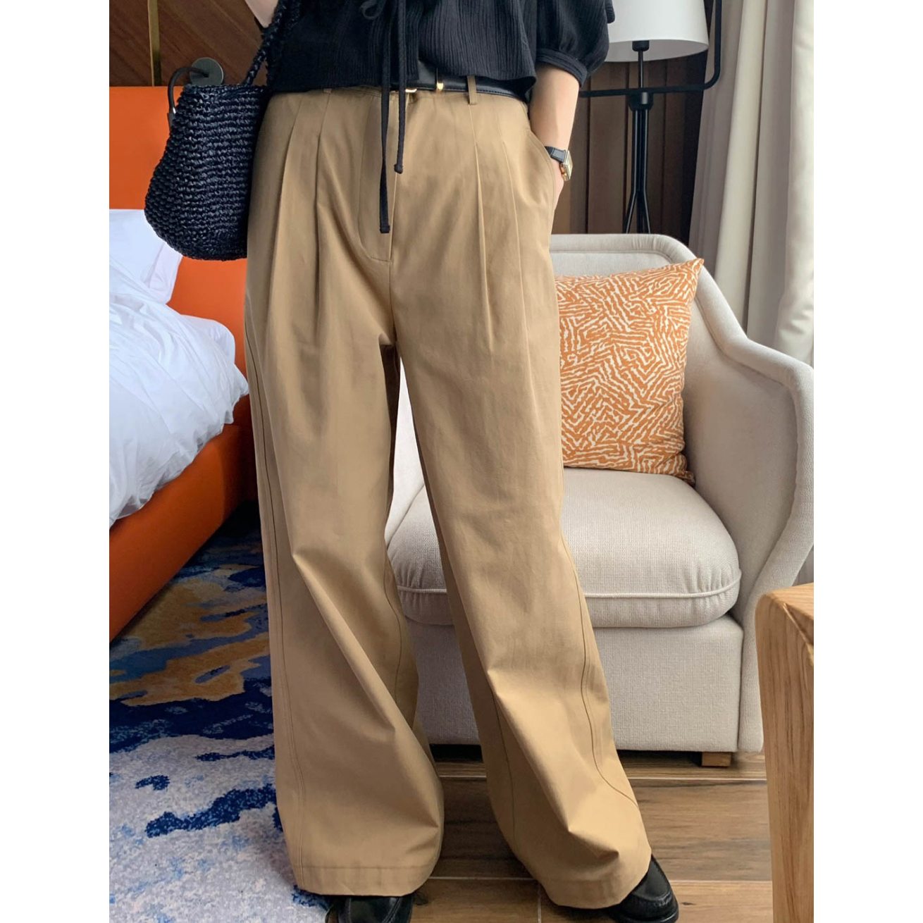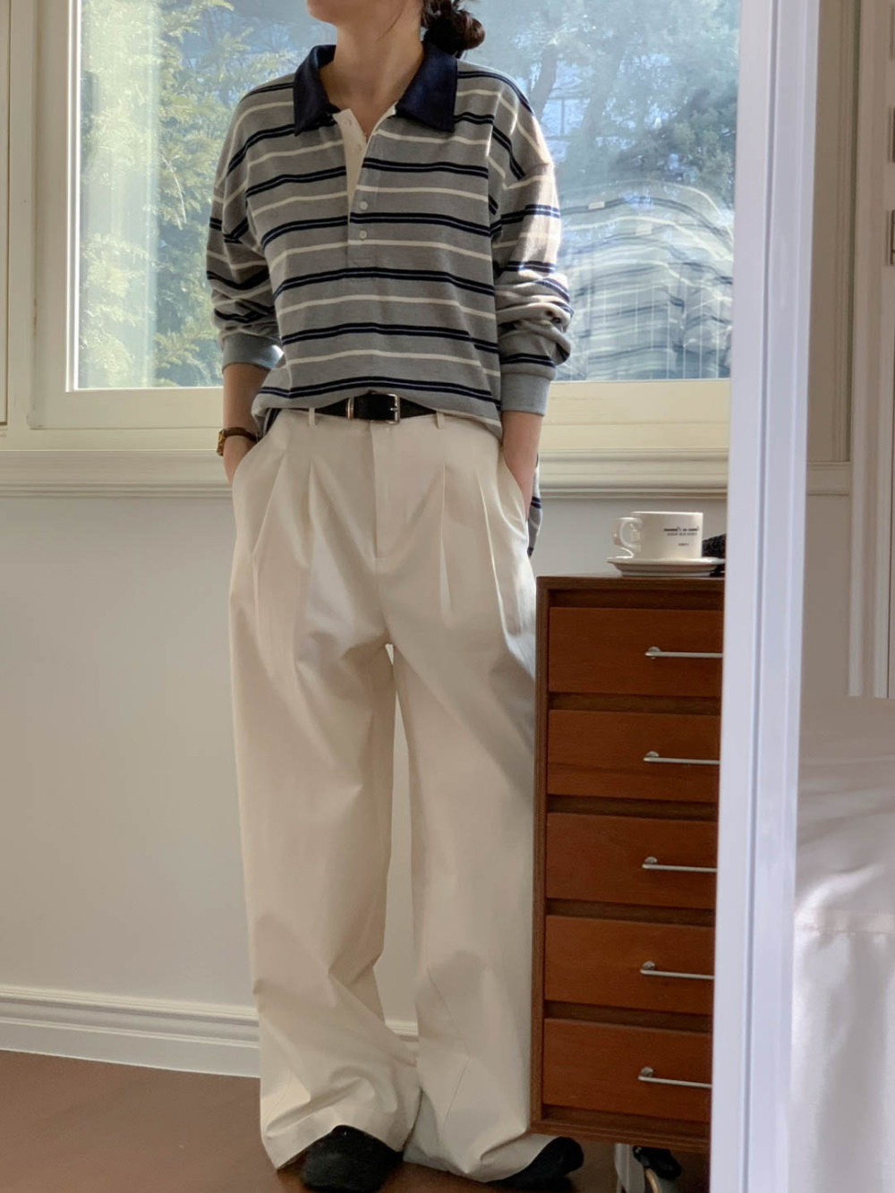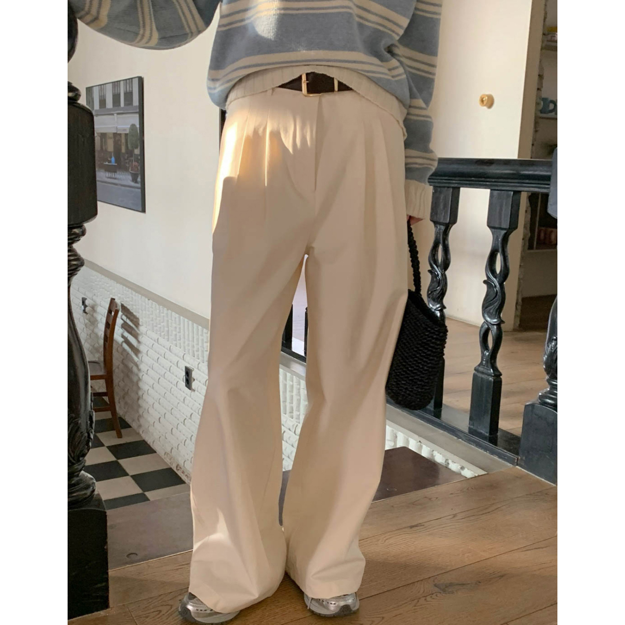 리블 핀턱 일자 코튼 슬랙스 팬츠